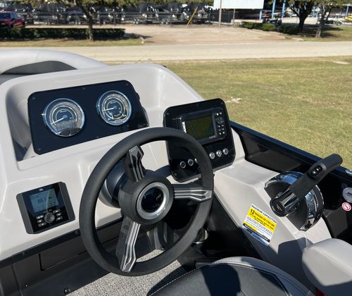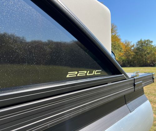 The Barletta Aria A22UC is packed with special features that elevate your boating experience. The Railskin Color Aria in Black Diamond and the Blackout Package Aria give the boat a bold, sophisticated look, while the Tempest Gray furniture and Amore Gray flooring create a modern, comfortable interior. The Triple Toon Package Aria adds an extra layer of stability and performance, making this pontoon ideal for larger groups and more active outings. The in-floor midship storage provides convenient space for stowing gear, water toys, and personal items, keeping the deck clutter-free and organized. A stainless steel flag pole with an American flag adds a patriotic touch, perfect for holiday weekends and special occasions.