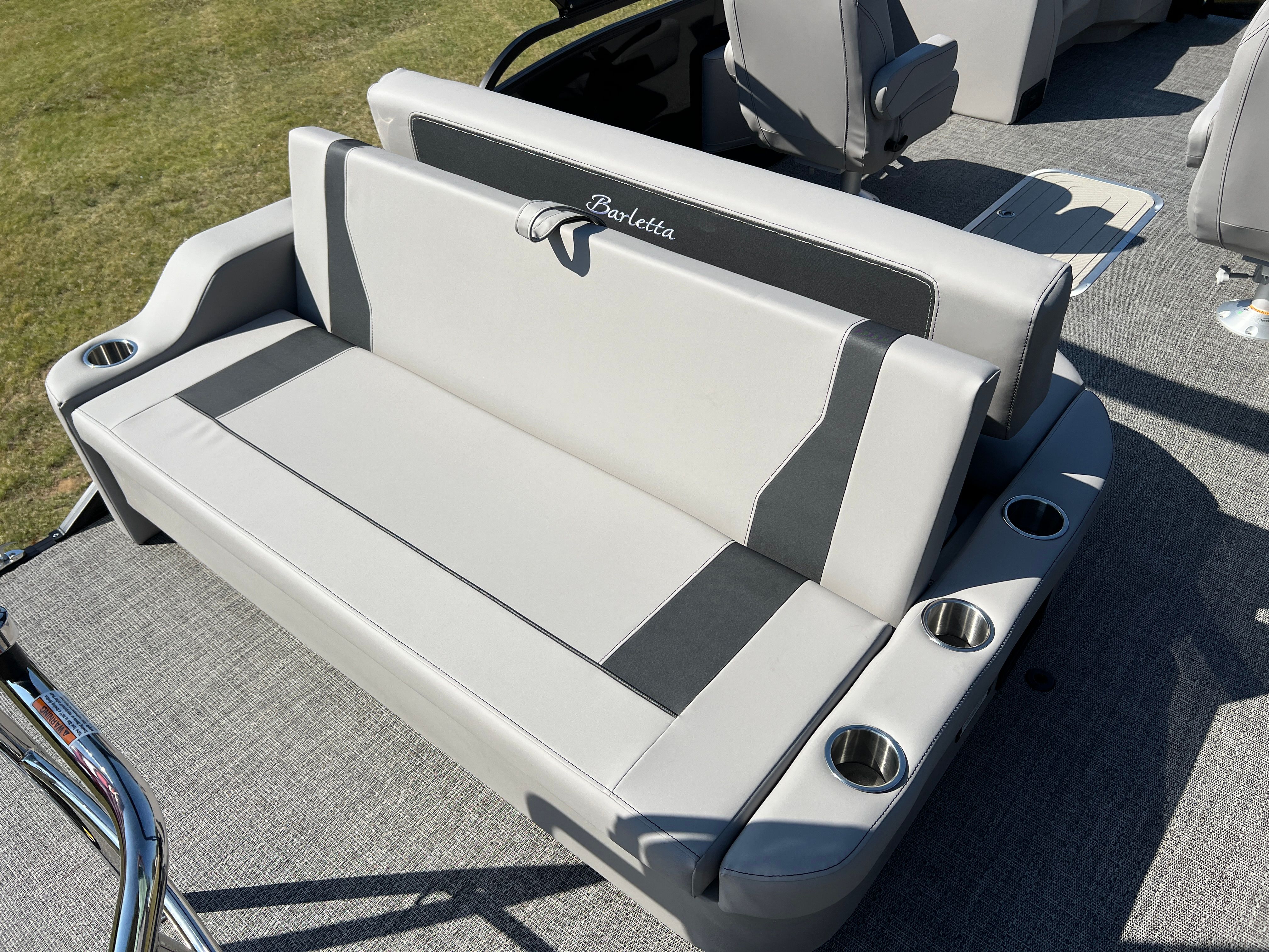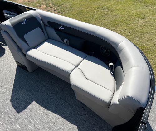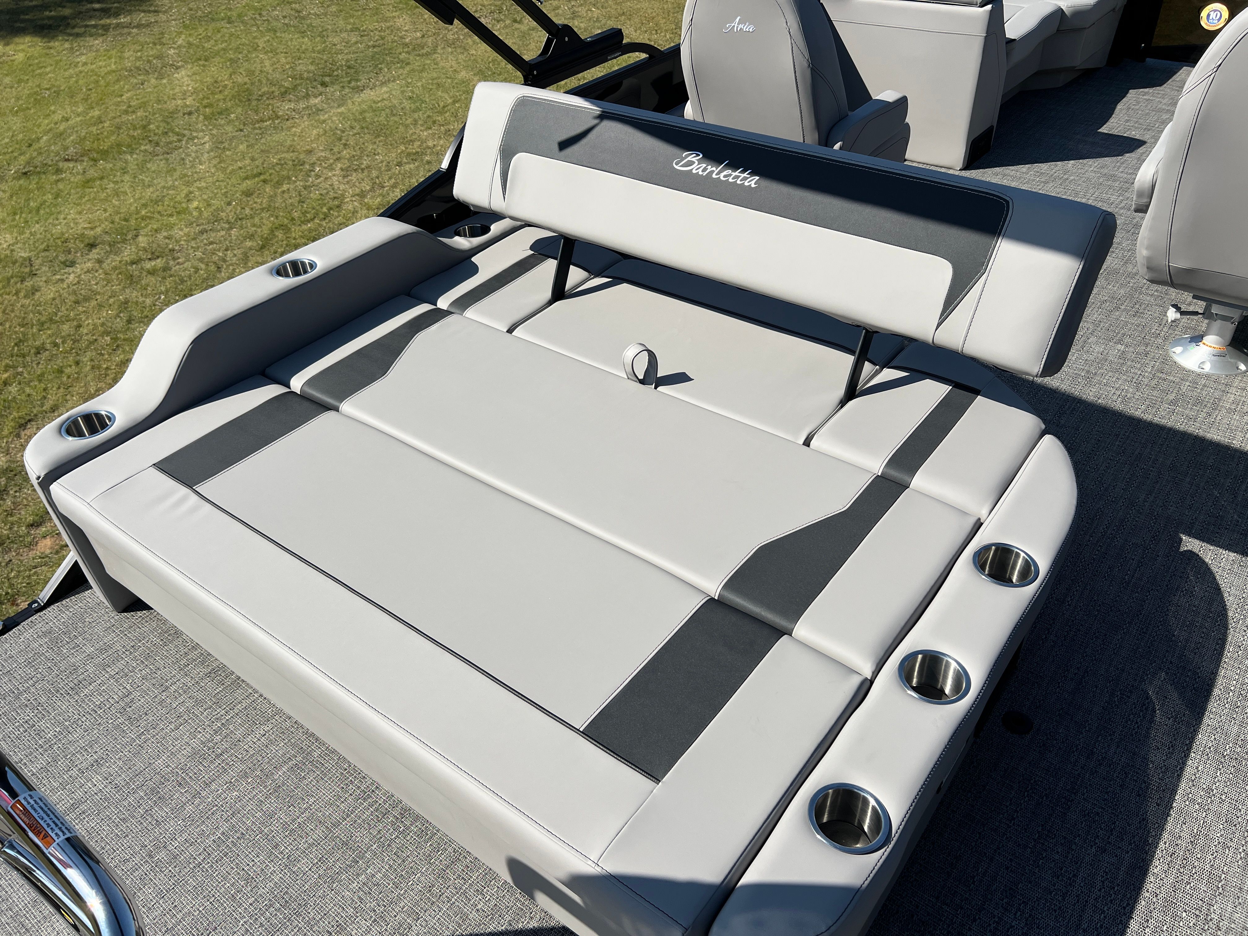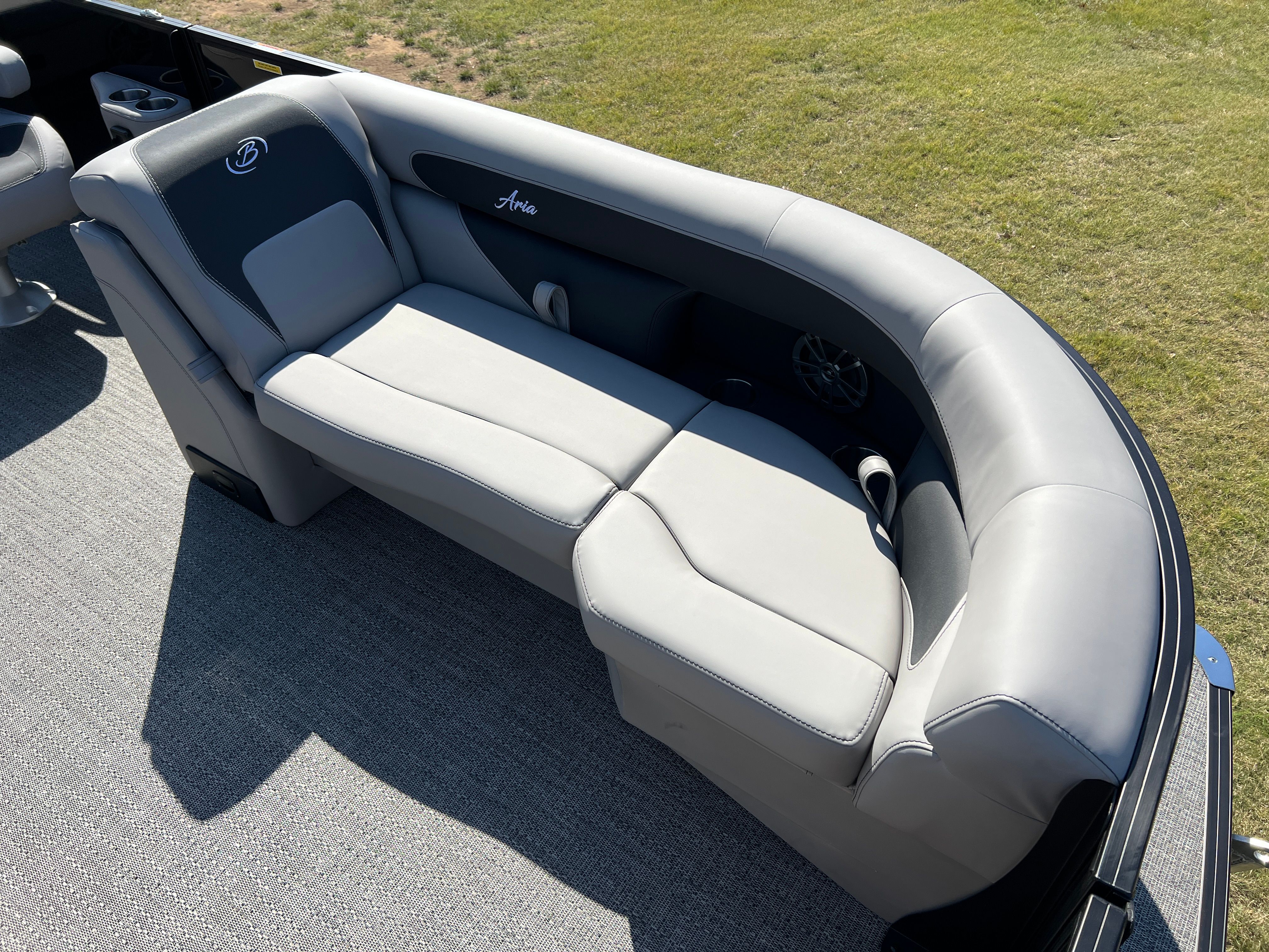 Owning the Barletta Aria A22UC pontoon boat means enjoying the ultimate in comfort, style, and versatility. The spacious layout is perfect for socializing, with plush Tempest Gray seating that invites you to relax and unwind. The Amore Gray flooring is both stylish and practical, offering a slip-resistant surface that’s easy to clean and maintain. The boat’s design encourages fun and togetherness, whether you’re hosting a lively party, enjoying a quiet sunset cruise, or spending quality time with loved ones. The powerful Mercury engine ensures you can explore new destinations with confidence, while the Triple Toon Package Aria provides a smooth, stable ride for everyone on board.