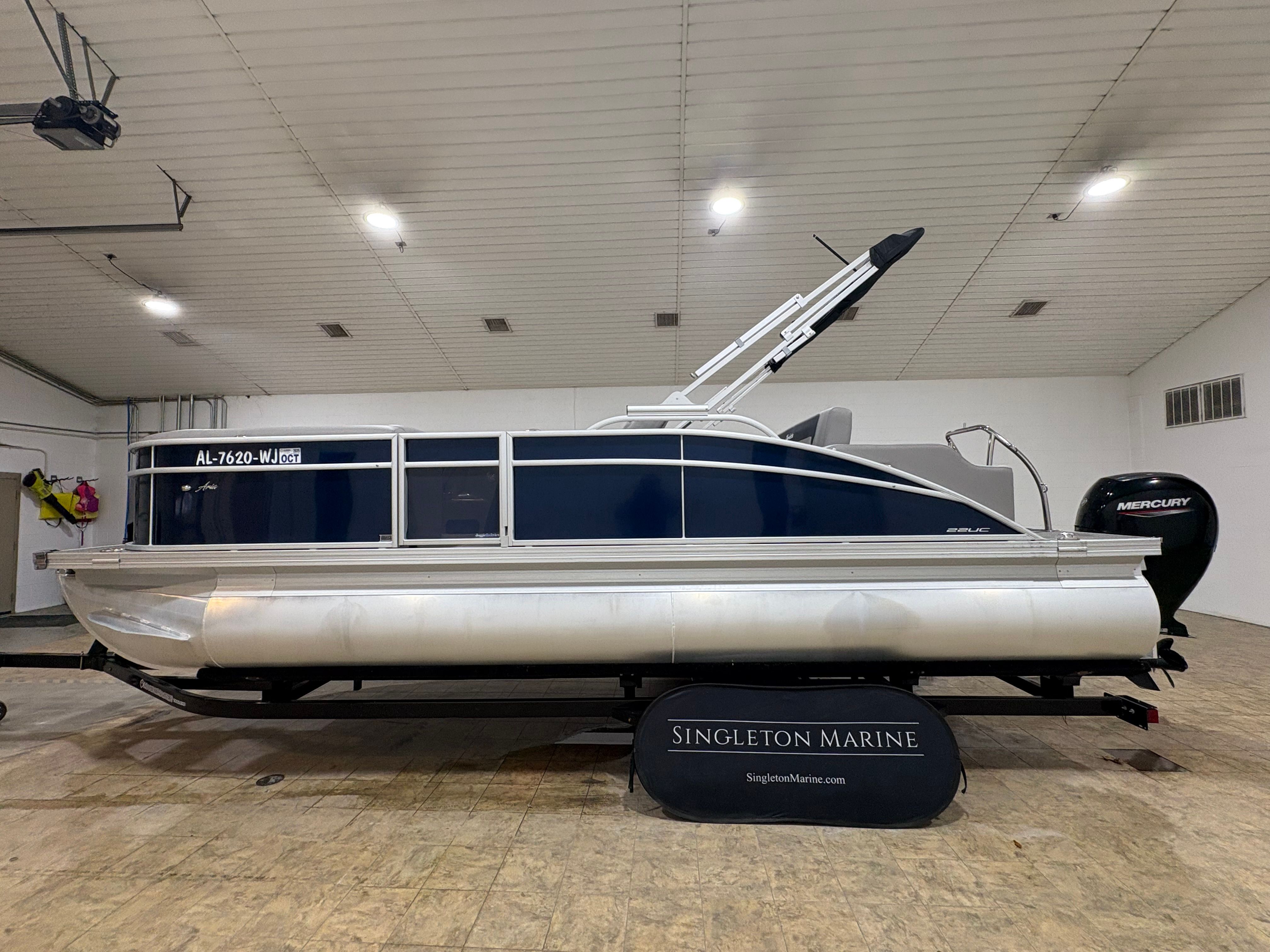 In summary, the 2025 Barletta Aria A22UC is a remarkable used pontoon boat that combines style, performance, and versatility in one impressive package. With its powerful Mercury 150L Four Stroke engine, Triple Toon Package, stunning Blue Sapphire Railskin, and thoughtful features like in-floor midship storage and Tempest Gray furniture, this Barletta boat for sale is ready to deliver unforgettable moments on the water. If you are searching for a pontoon boat for sale that offers comfort, reliability, and endless opportunities for fun, the Barletta Aria A22UC deserves your attention. Take the next step toward making lasting memories—contact your local dealer today to learn more about this exceptional pontoon boat and schedule a viewing.