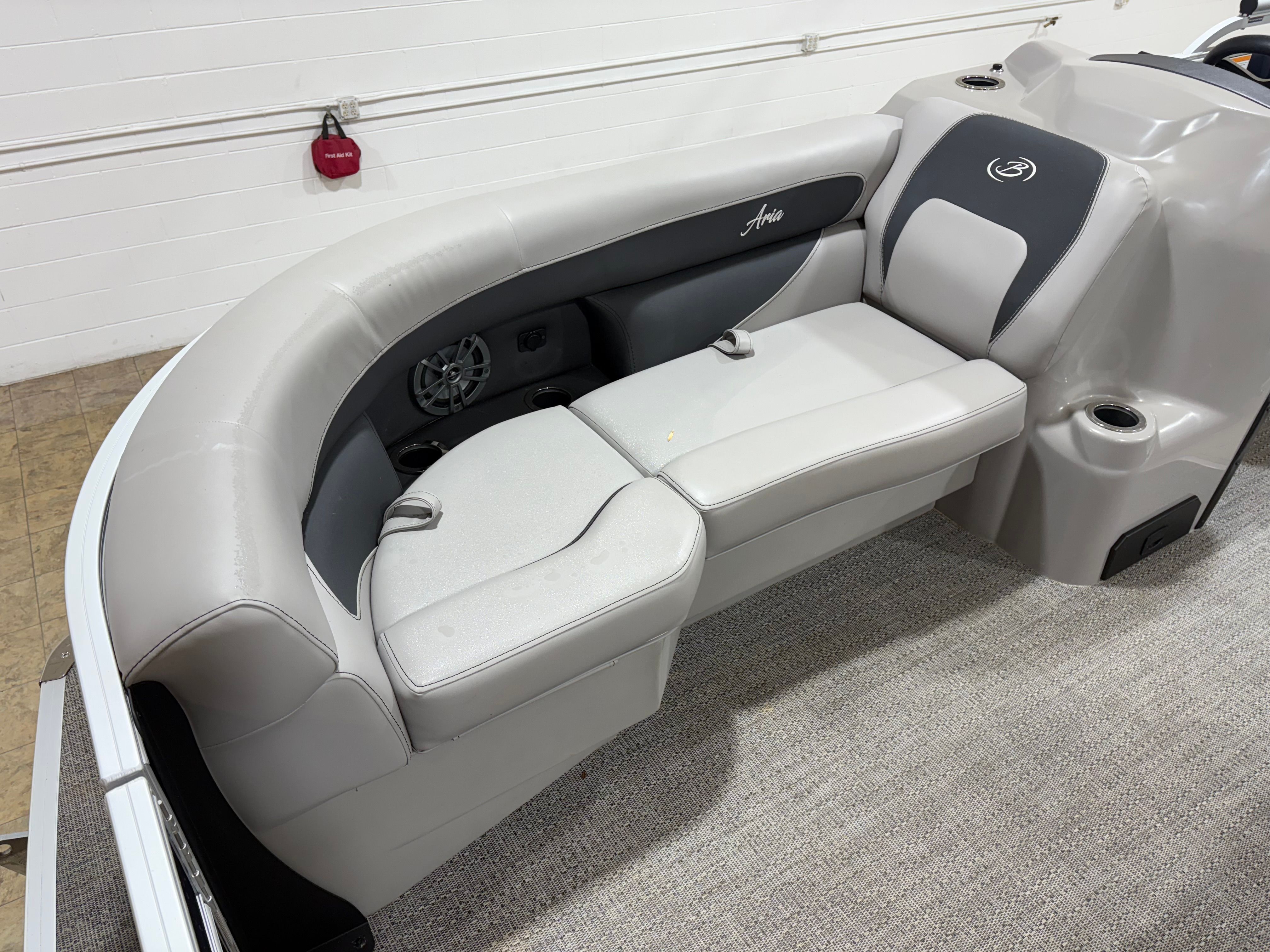 The 2025 Barletta Aria A22UC is a 21-foot pontoon boat that captures attention with its sleek lines and modern design. As a used pontoon boat, it offers the unique advantage of premium features at a more accessible price point, making it an attractive option for boating enthusiasts seeking quality and value. The Aria A22UC’s generous length provides ample space for passengers to move about comfortably, ensuring that every outing is both enjoyable and memorable. The combination of the Triple Toon Package and the striking Blue Sapphire Railskin creates a visual statement that is sure to turn heads at any marina or lake.