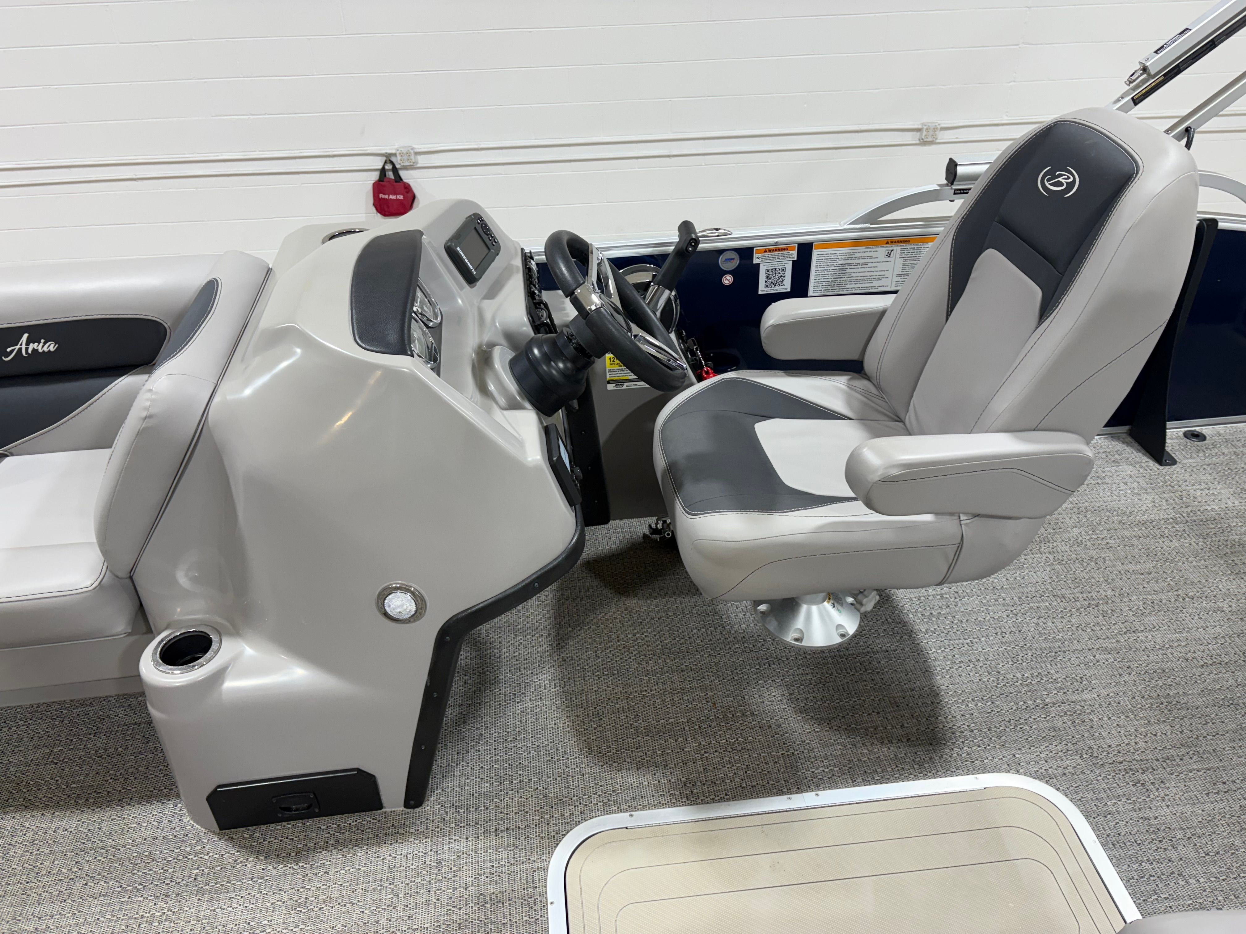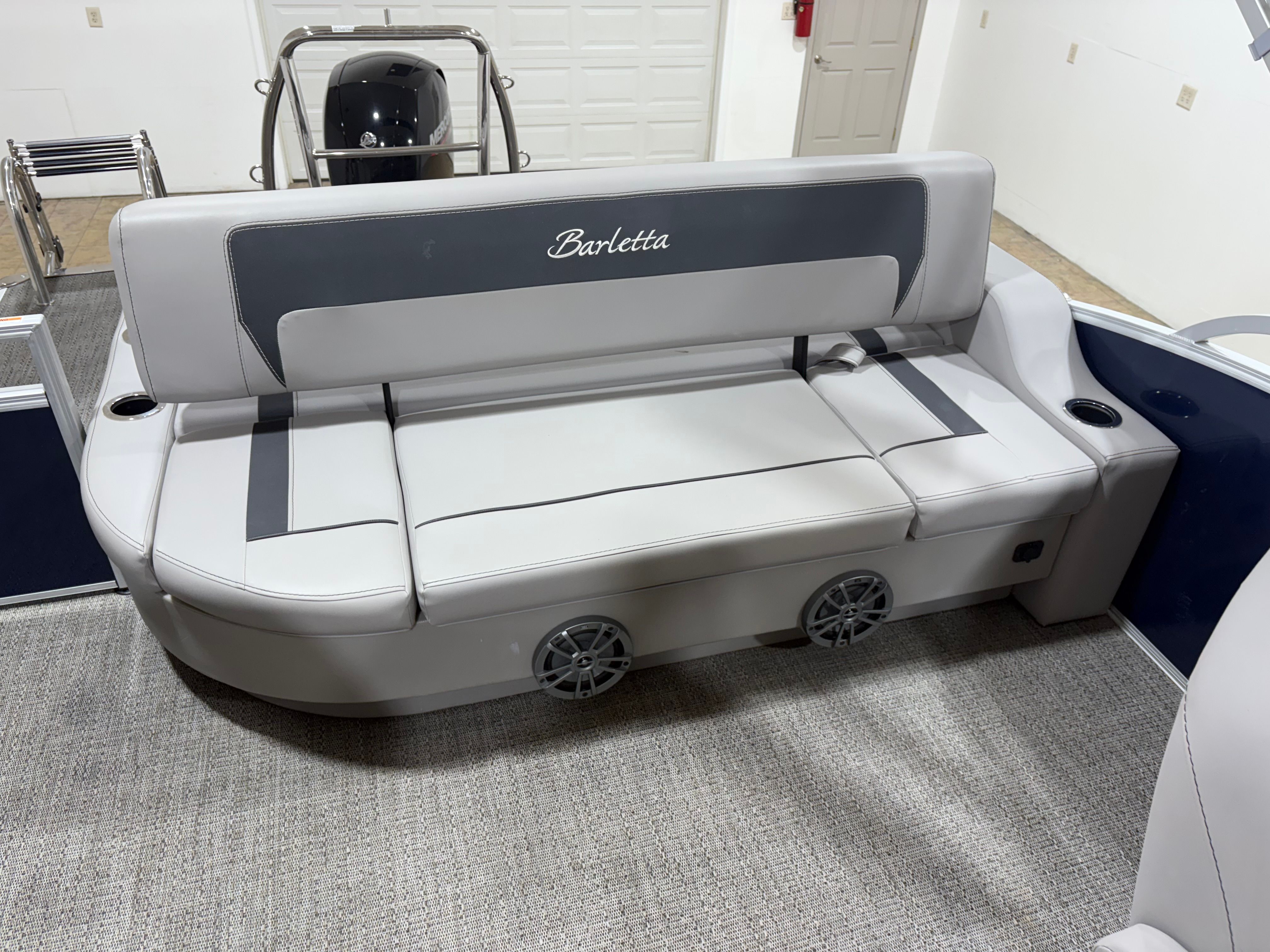 The Barletta Aria A22UC is thoughtfully equipped with a range of features designed to enhance comfort, convenience, and enjoyment on the water. The Triple Toon Package Aria provides added stability and buoyancy, ensuring a smooth and steady ride even in choppier conditions. The in-floor midship storage offers a practical solution for stowing gear, water toys, and personal items, keeping the deck clutter-free and organized. The furniture, finished in Tempest Gray, exudes sophistication and comfort, inviting you and your guests to relax in style. The flooring, crafted from Amore Gray material, is both durable and visually appealing, complementing the overall aesthetic of the boat. The rig engine with standard prop ensures reliable propulsion and efficient performance, making every journey effortless and enjoyable.