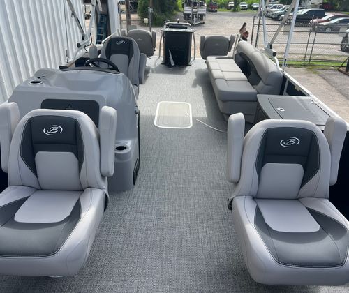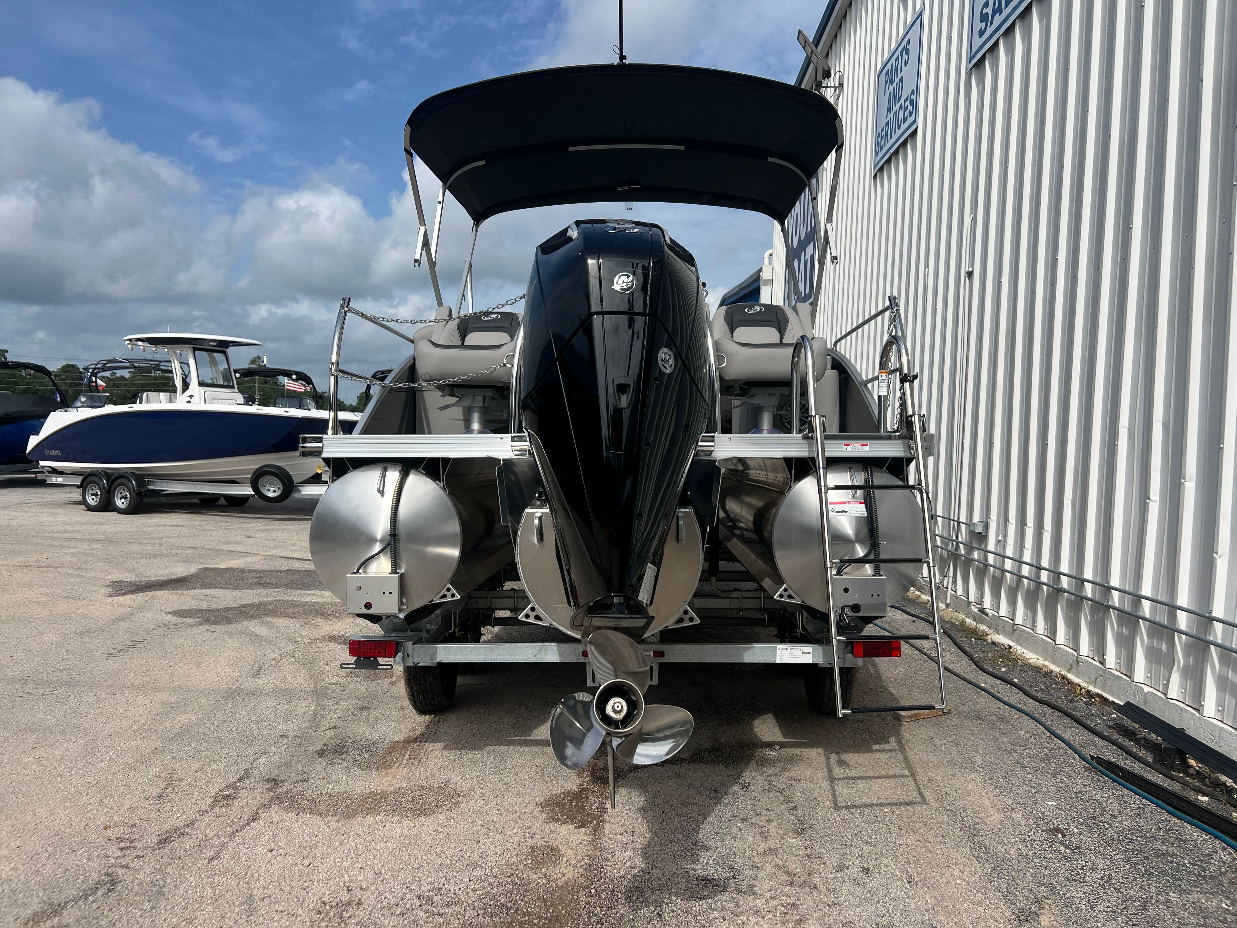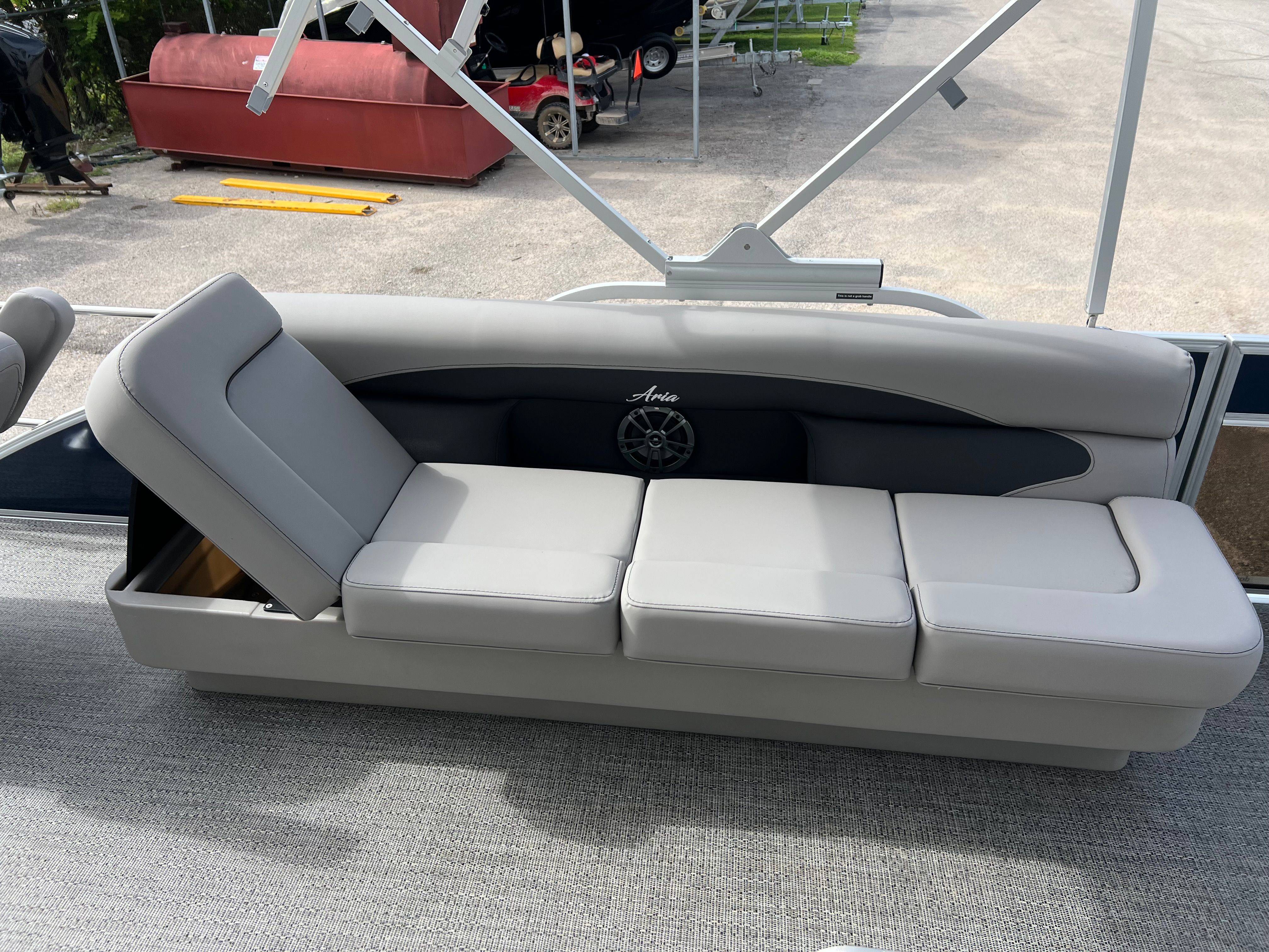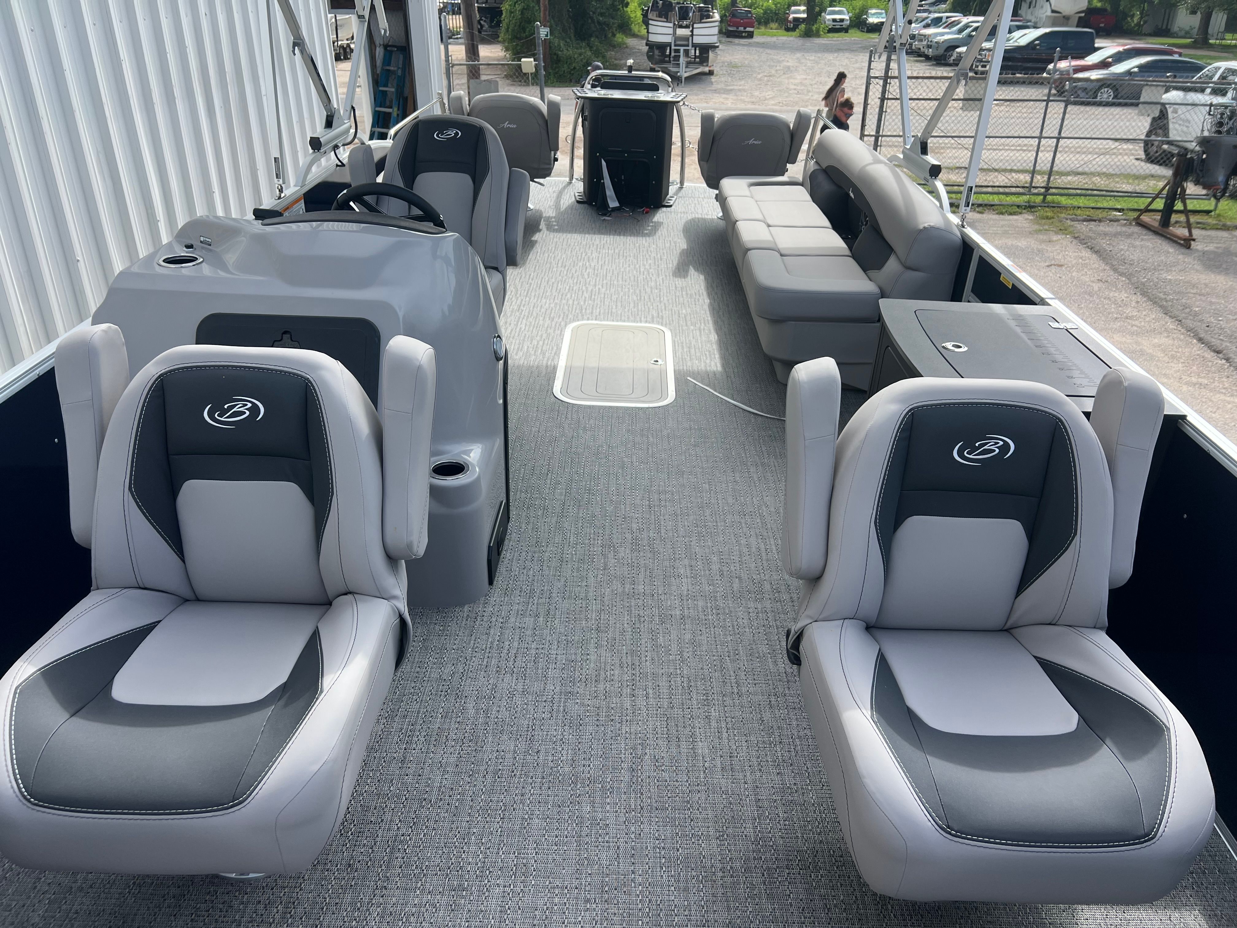 The 2025 Barletta Aria A24F is a new pontoon boat that measures just over 23 feet in length, providing ample space for relaxation and recreation. This model is crafted with attention to detail, ensuring every inch is optimized for comfort and convenience. The Aria A24F’s triple toon package enhances stability and ride quality, making it an ideal choice for those who value smooth cruising and reliable handling. Its modern design and premium finishes make it a standout option among pontoon boats for sale, appealing to buyers who appreciate both aesthetics and functionality.