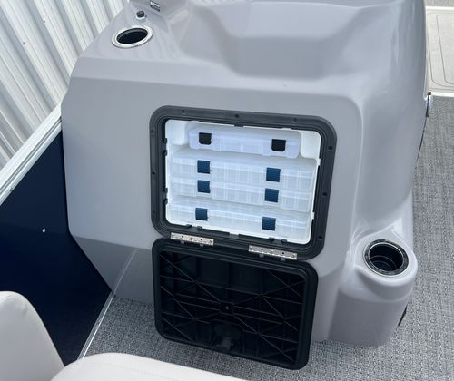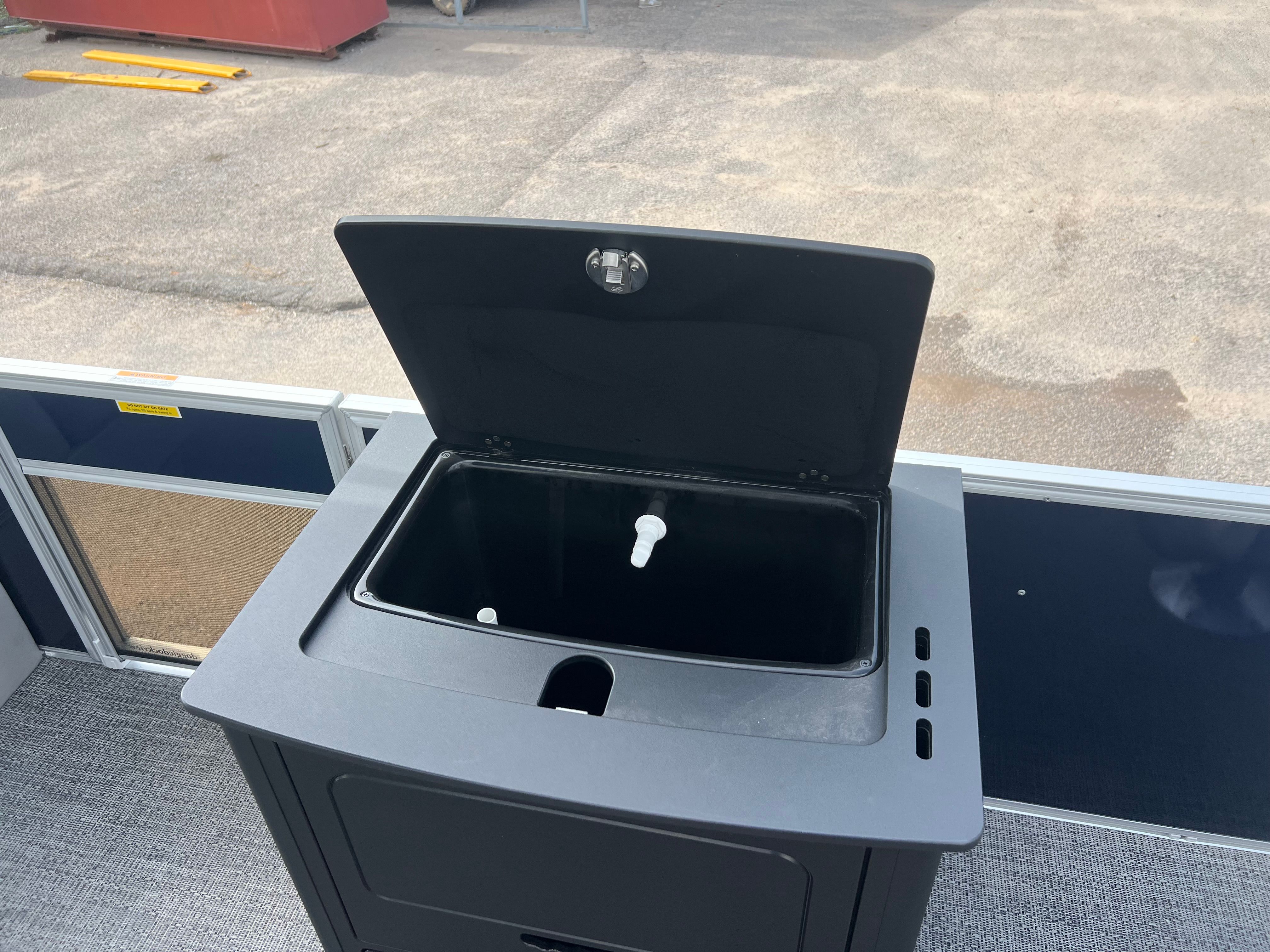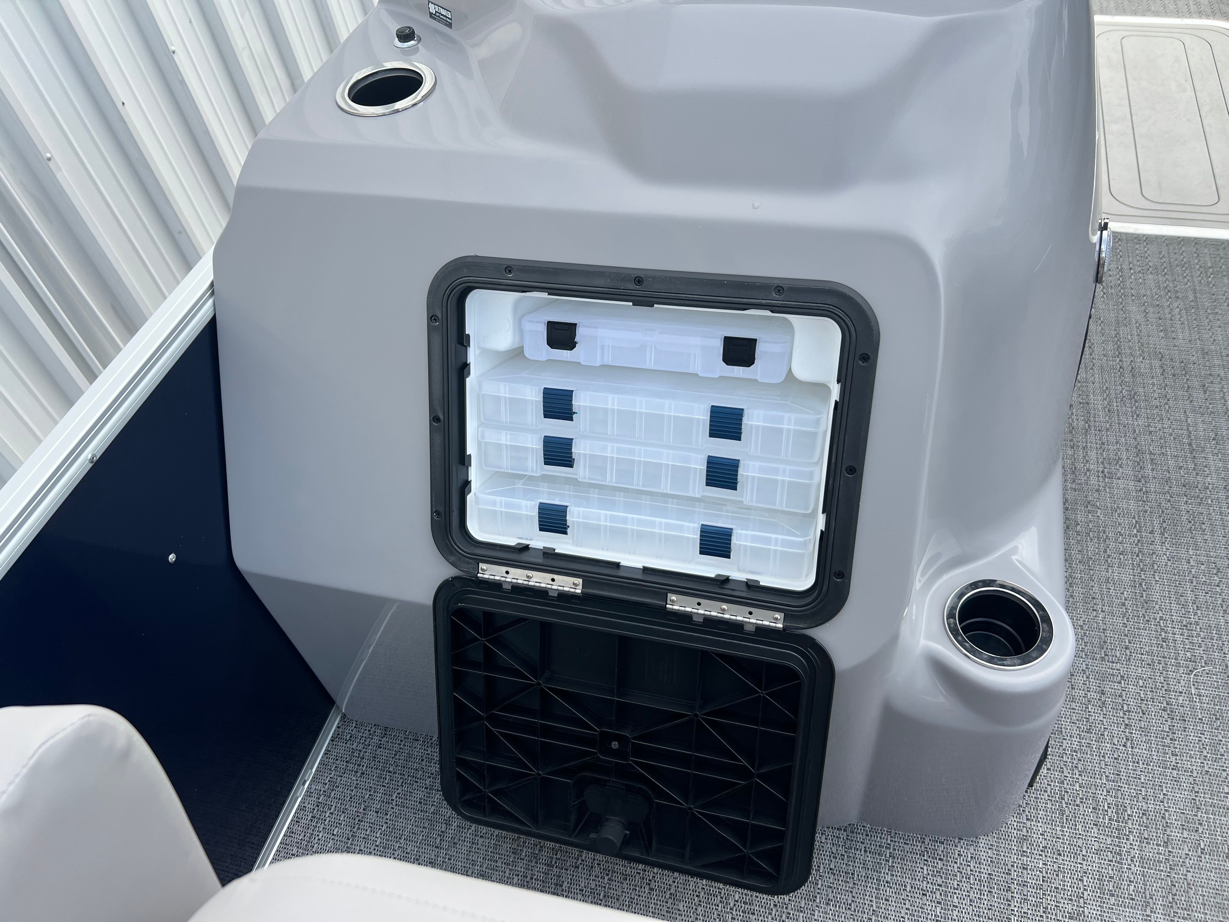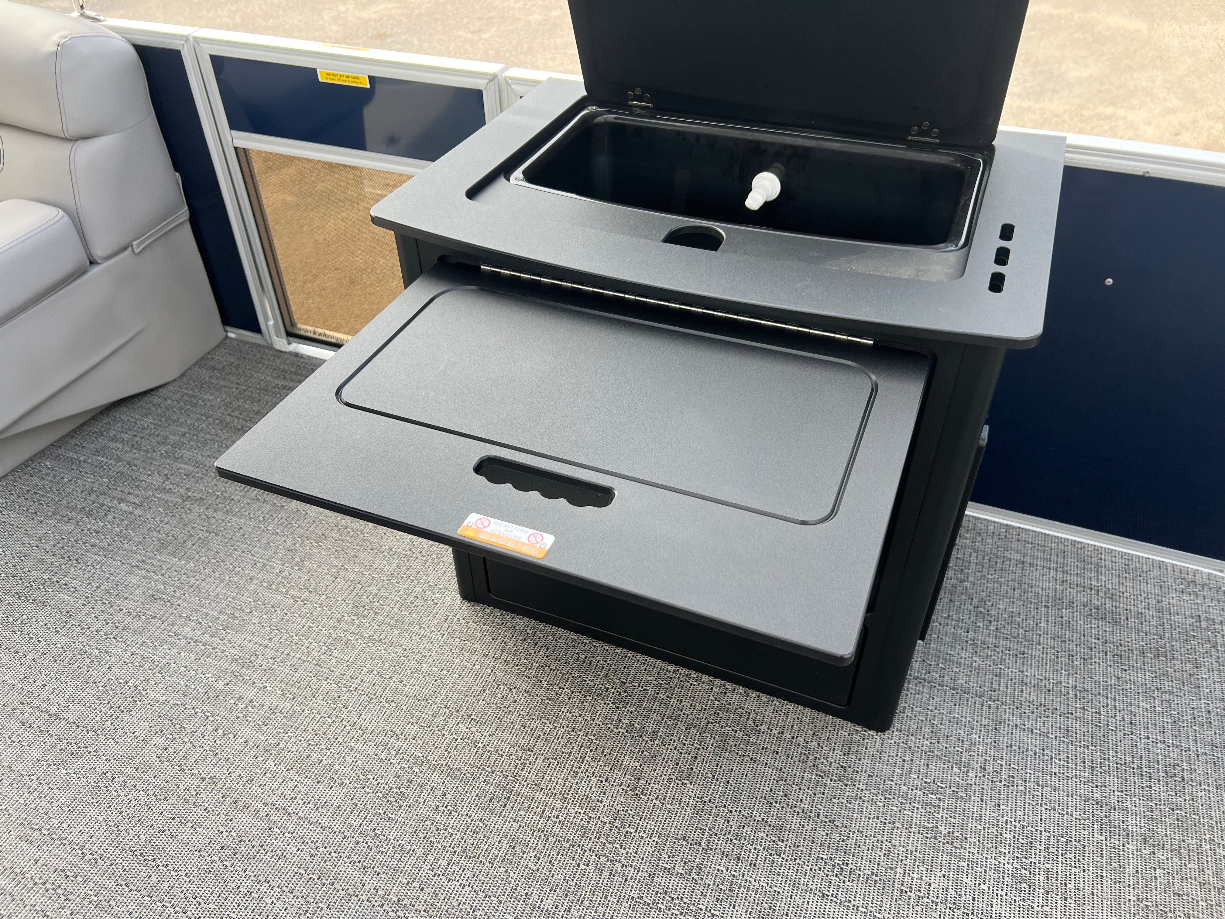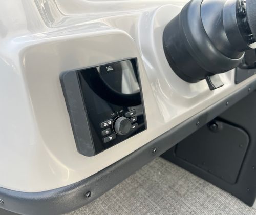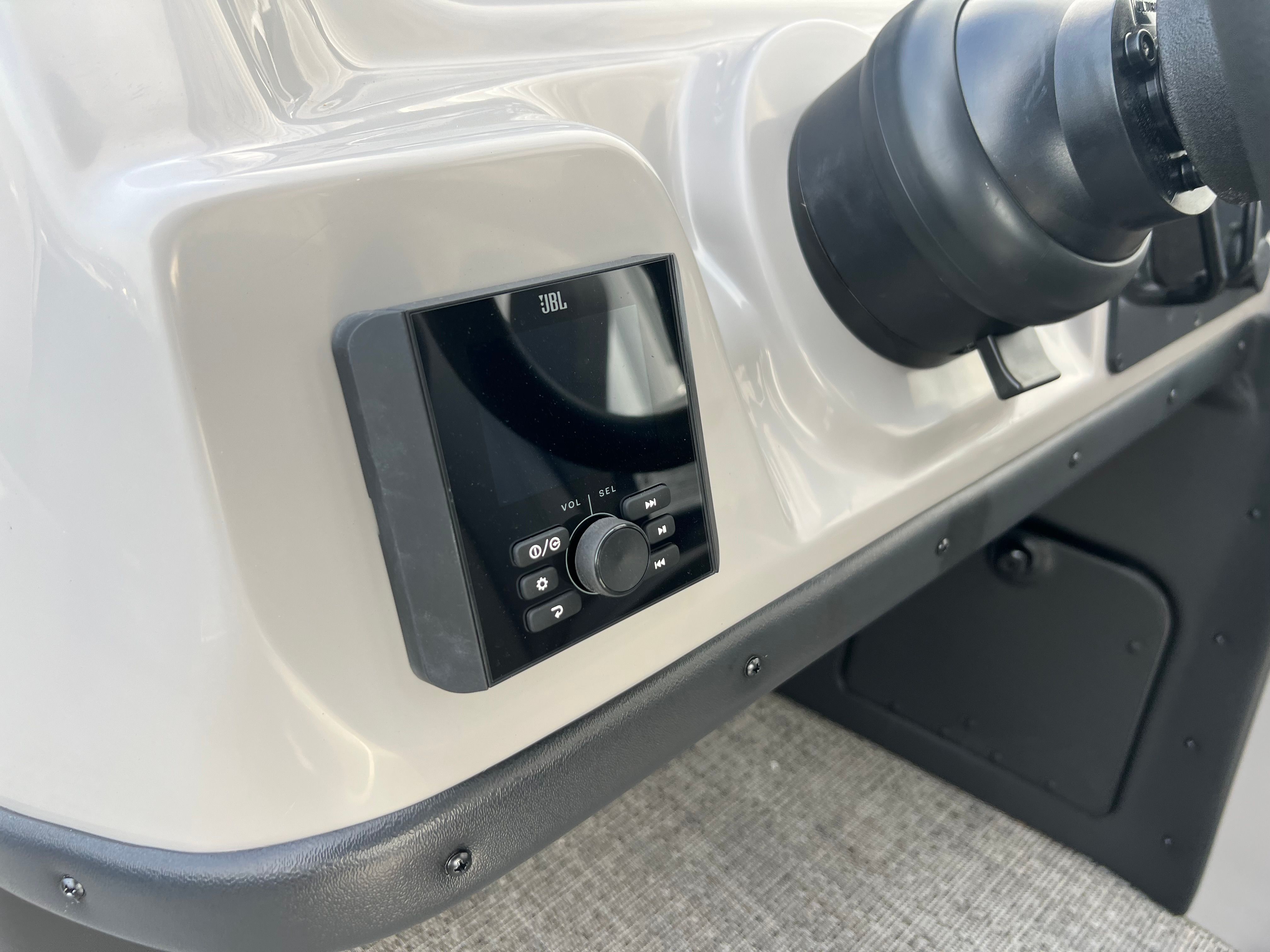 The Barletta Aria A24F is packed with special features that elevate the boating experience. The striking Blue Sapphire Railskin gives the exterior a sophisticated look, complemented by the Tempest Gray furniture and Amore Gray flooring for a modern, inviting interior. The triple toon package ensures superior stability and a smoother ride, making every journey comfortable and enjoyable. The Mercury 200L FourStroke engine is paired with a stainless steel prop for optimal performance, while the Mercury mechanical pre-rig system streamlines engine operation.Onboard, you’ll find thoughtful touches like the stainless steel flag pole with an American flag, adding a patriotic flair to your outings. The in-floor midship storage provides convenient space for stowing gear, keeping the deck uncluttered and organized. At the helm, the Simrad 7 G07 XSE offers advanced navigation and control, empowering you to explore with confidence. These features make the Aria A24F a standout among pontoon boats for sale, offering both luxury and practicality.