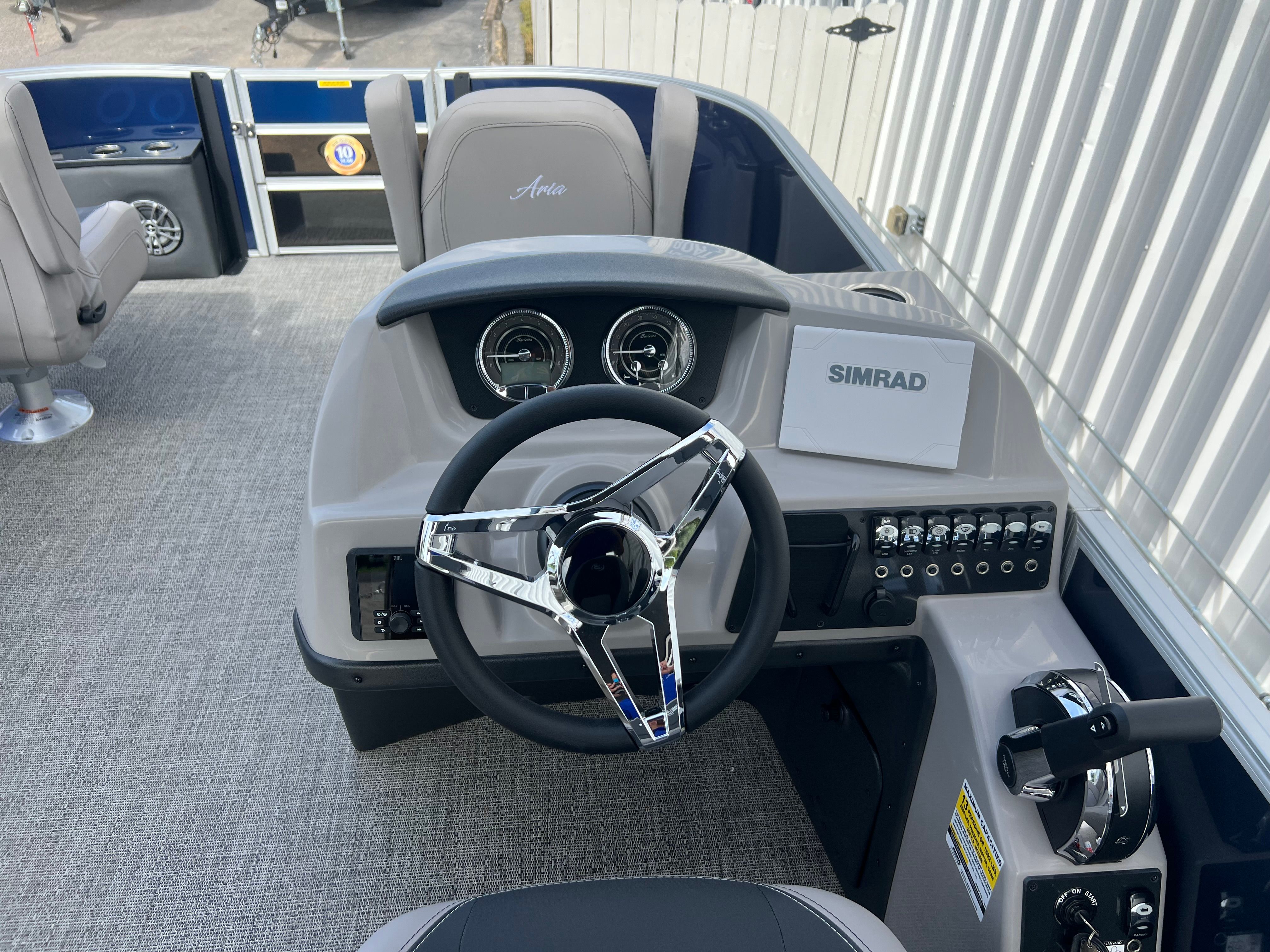 The 2025 Barletta Aria A24F is a new pontoon boat that redefines what it means to enjoy life on the water. With its striking Blue Sapphire Railskin, luxurious Tempest Gray furniture, and advanced features like the triple toon package, Mercury 200L FourStroke engine, and Simrad 7 G07 XSE helm, this boat offers unparalleled comfort, performance, and versatility. The in-floor midship storage and stainless steel flag pole add practical and aesthetic value, making every outing more enjoyable.If you’re searching for a Barletta boat for sale that combines style, power, and convenience, the Aria A24F is the ultimate choice. Experience the joy of boating with a pontoon that’s built for fun, relaxation, and adventure. Contact your local dealer today to learn more about the Barletta Aria A24F and start planning your next unforgettable journey on the water.