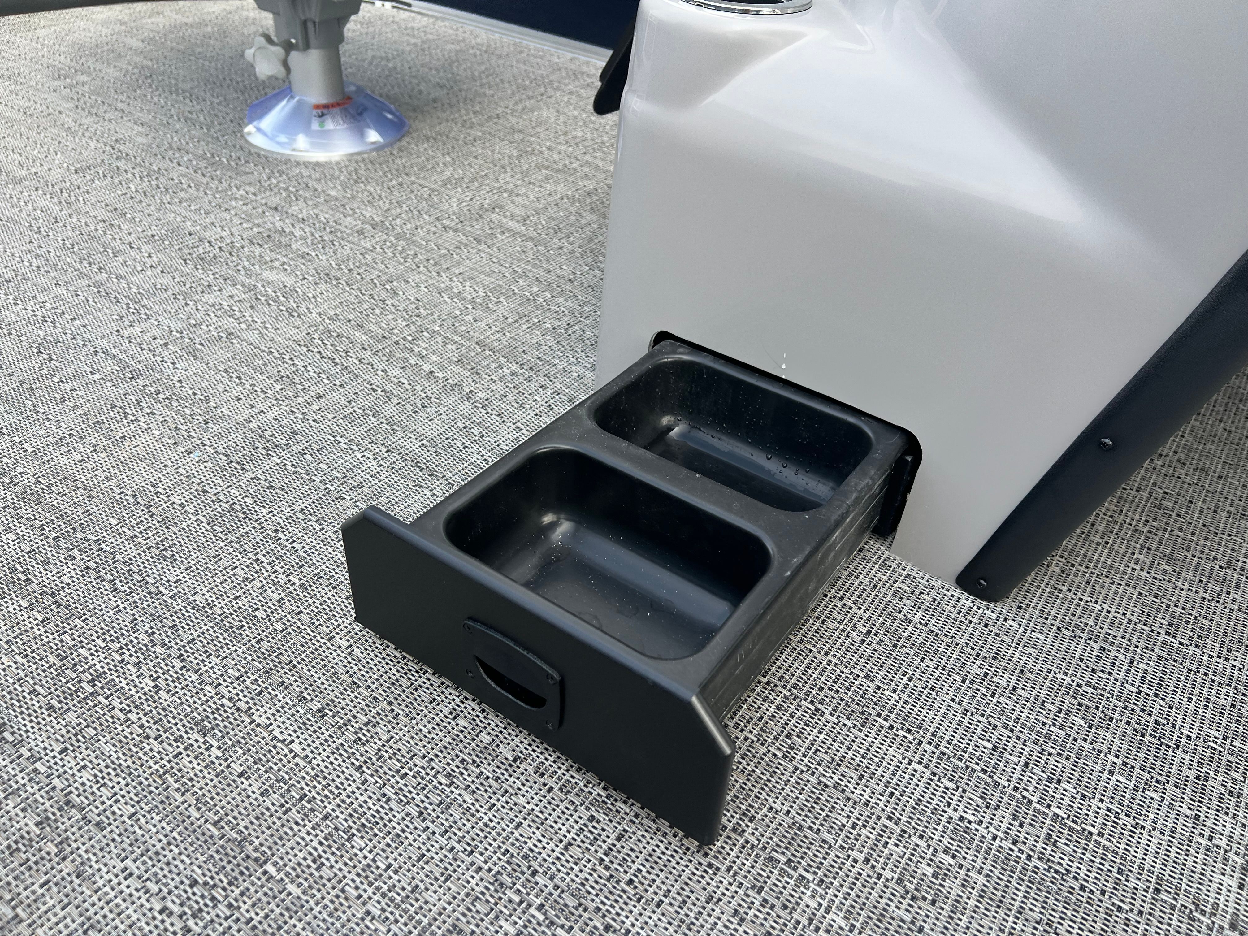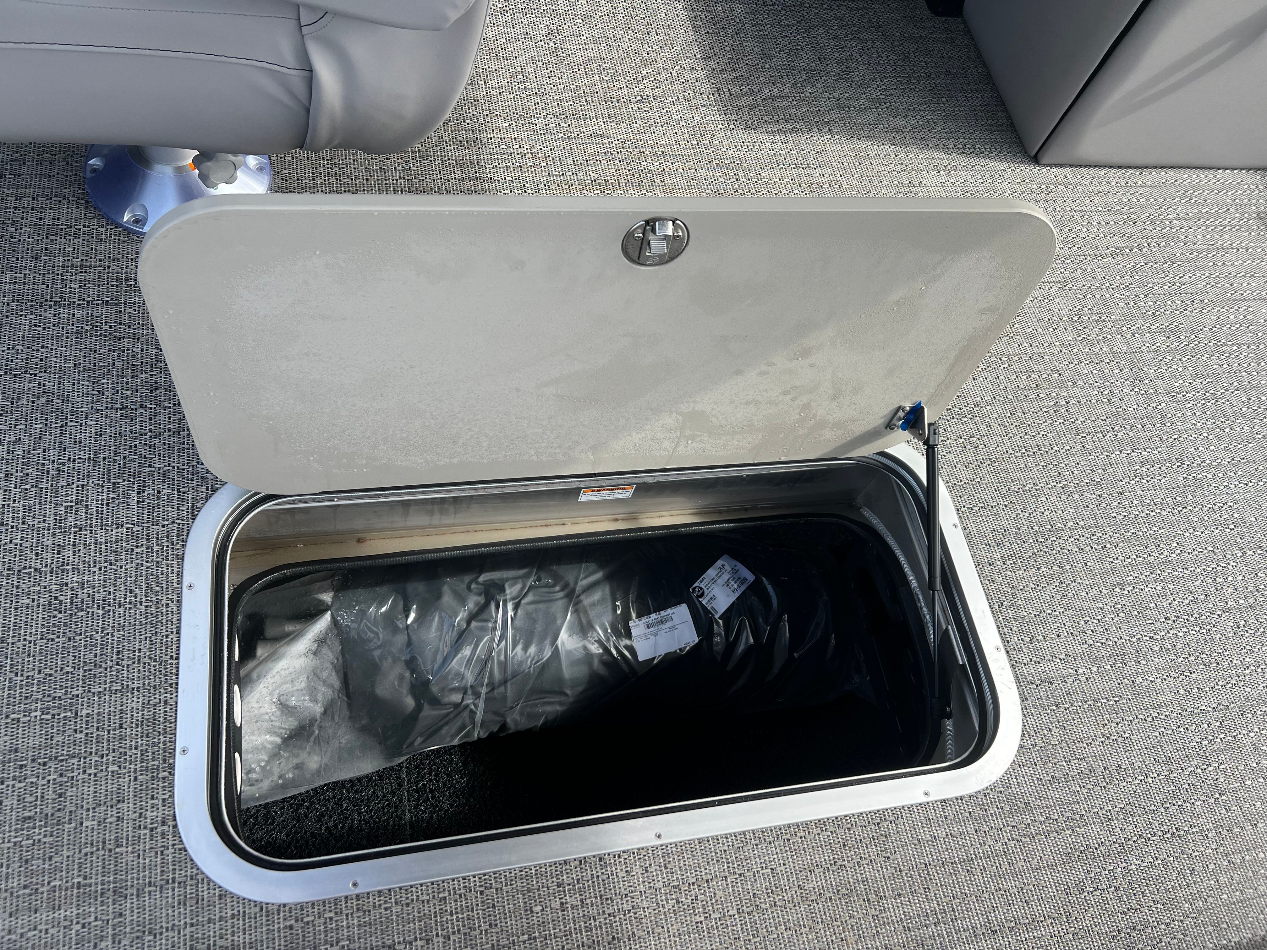 The Barletta Aria A24F is engineered for convenience and ease of ownership. The in-floor midship storage keeps your gear organized and accessible, reducing clutter and enhancing safety. The triple toon package simplifies docking and maneuvering, providing stability even in challenging conditions. Fuel efficiency is optimized by the Mercury 200L FourStroke engine, allowing you to spend more time on the water and less at the pump.The sturdy construction and premium materials ensure durability, so you can enjoy your pontoon for years to come. The stainless steel flag pole adds a touch of elegance and pride, while the advanced helm system makes piloting the boat intuitive and stress-free. Whether you’re a seasoned boater or new to the lifestyle, the Aria A24F offers practical benefits that make every outing more enjoyable and hassle-free.