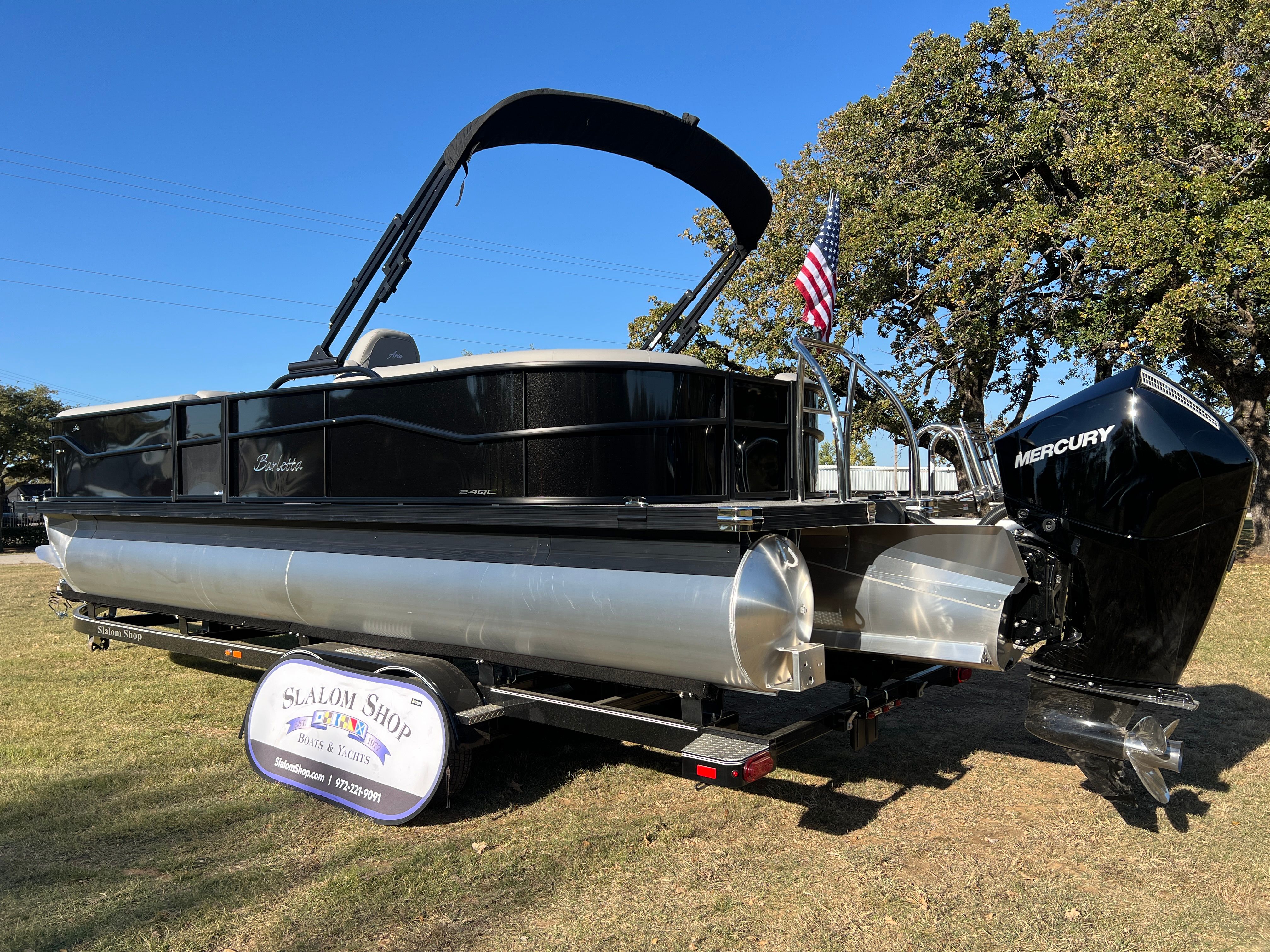 The 2026 Barletta Aria A24QC is a standout pontoon boat for sale that combines performance, luxury, and practicality in one stunning package. With its powerful Mercury engine, stylish Black Diamond Railskin, Blackout Package, Tempest Gray furniture, Amore Gray flooring, Triple Toon Package, stainless steel flag pole with American flag, and in-floor midship storage, this Barletta boat for sale is ready to elevate your boating adventures. If you are looking for a new pontoon boat that offers comfort, style, and unforgettable experiences on the water, the Barletta Aria A24QC is the perfect choice. Contact your local dealer today to learn more and make this exceptional boat yours.