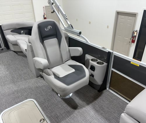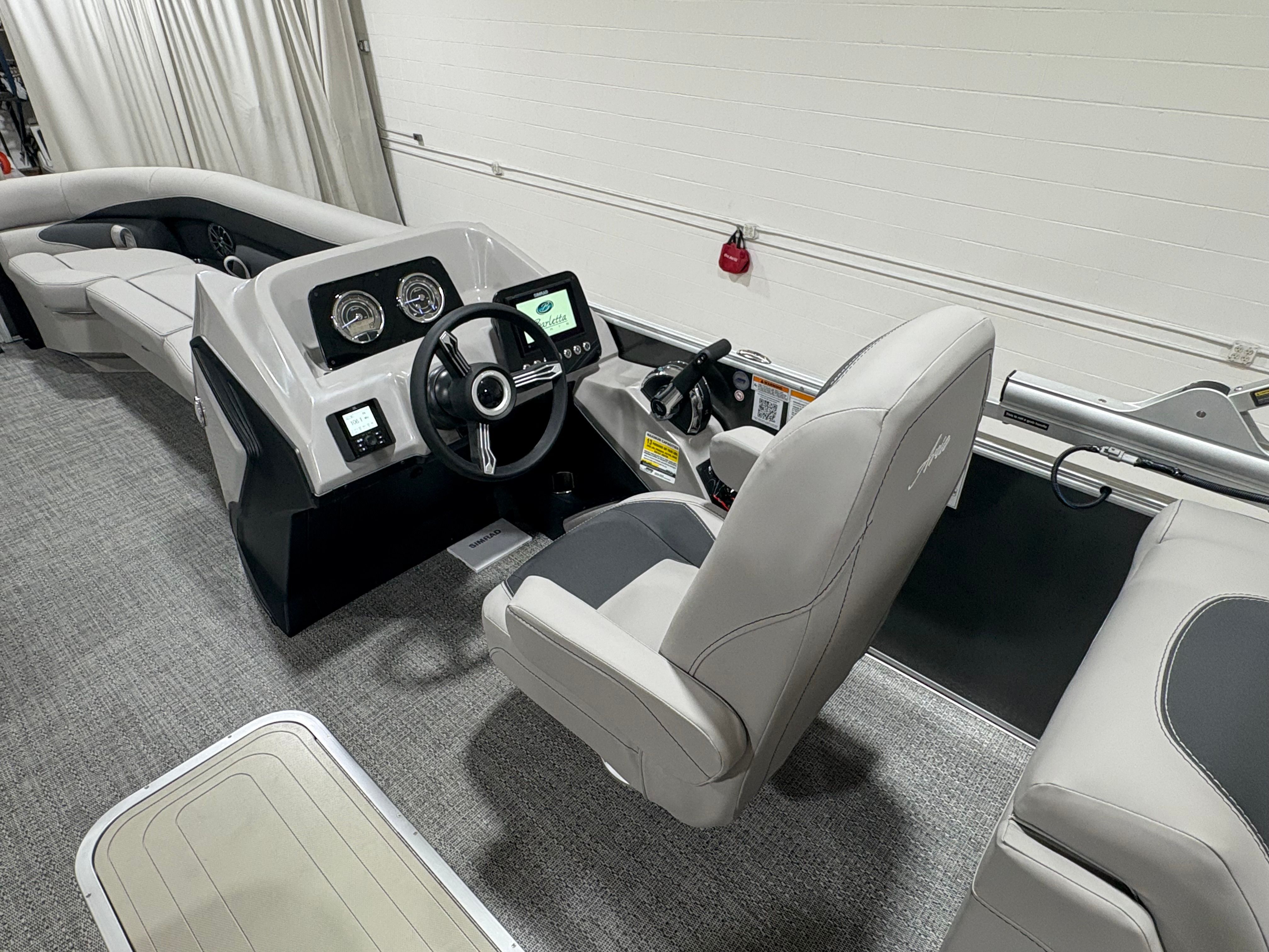 The Barletta Aria A24QC is designed with practicality in mind, making ownership as enjoyable as the time spent on the water. The efficient Mercury 250L FourStroke engine offers a balance of power and fuel economy, reducing the frequency of refueling stops and maximizing your time on the water. The power assist steering system ensures easy maneuvering, whether you are docking in tight spaces or navigating busy waterways.The in-floor midship storage is perfect for keeping life jackets, fishing gear, or water sports equipment neatly stowed yet easily accessible. The durable flooring and high-quality furniture materials are built to withstand the elements, ensuring your pontoon remains in top condition season after season. The stainless steel flag pole and American flag not only add visual appeal but also make your boat easy to spot from a distance.