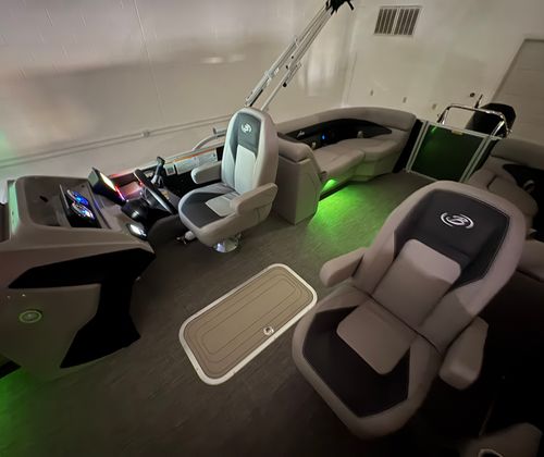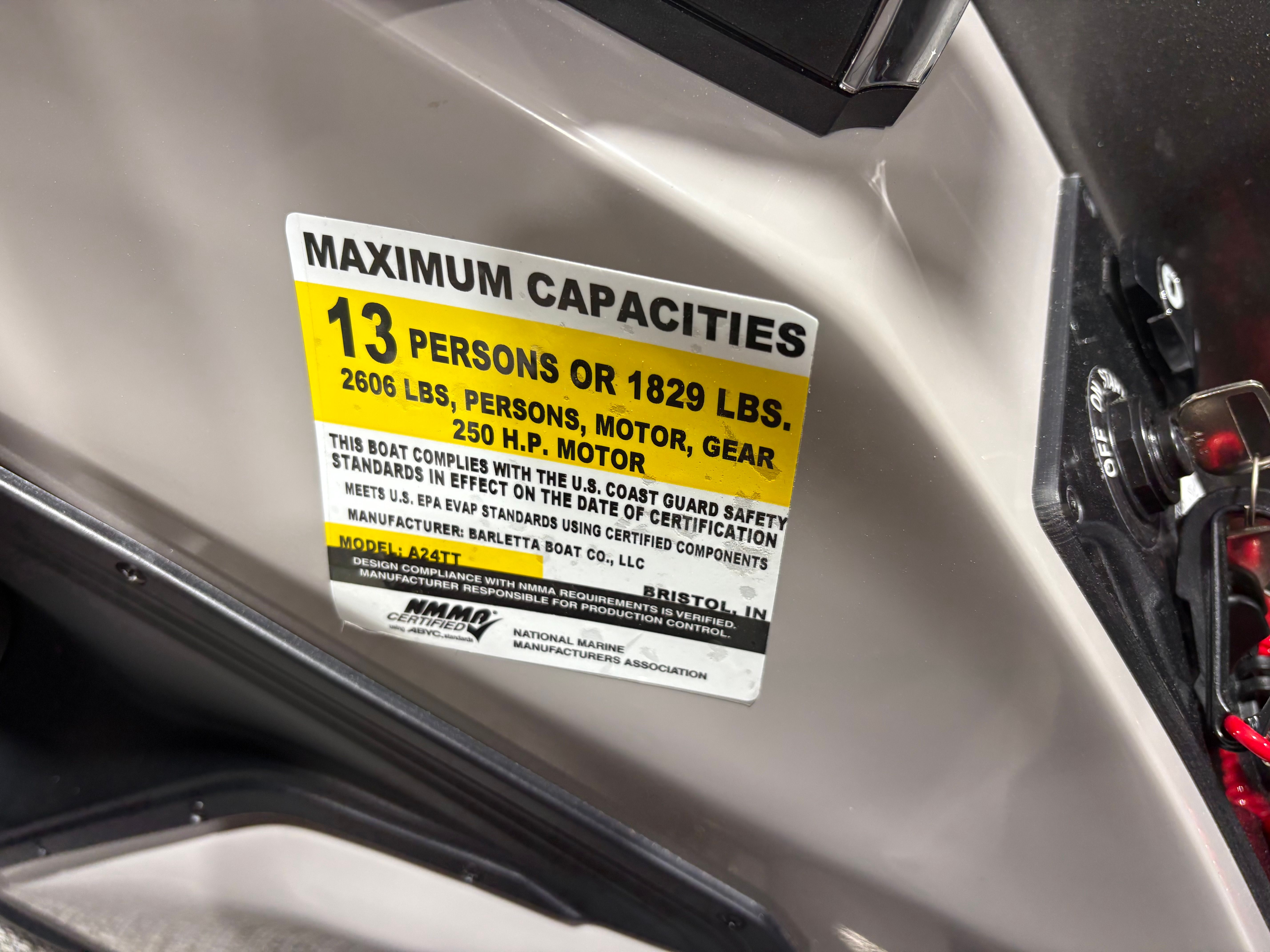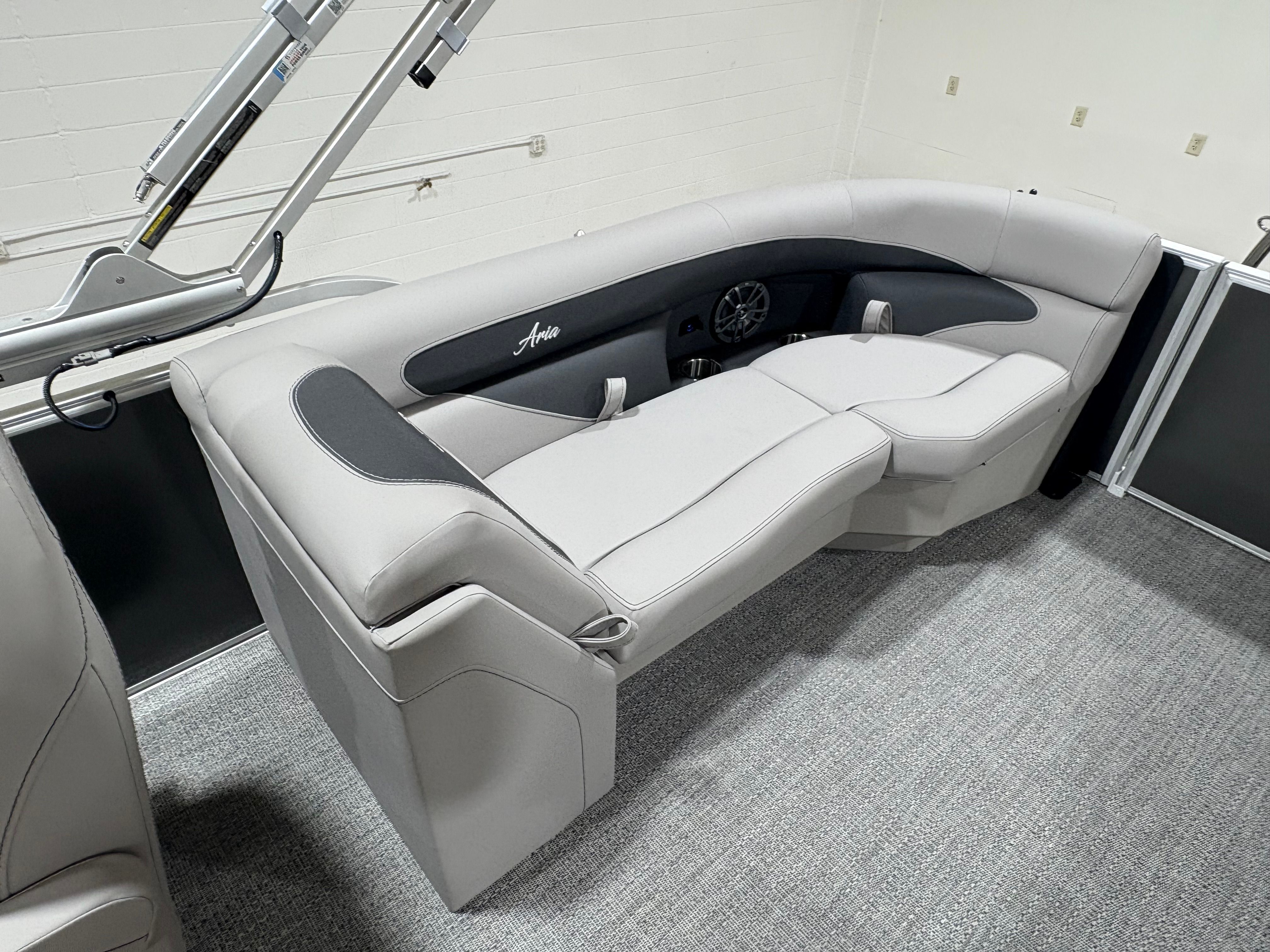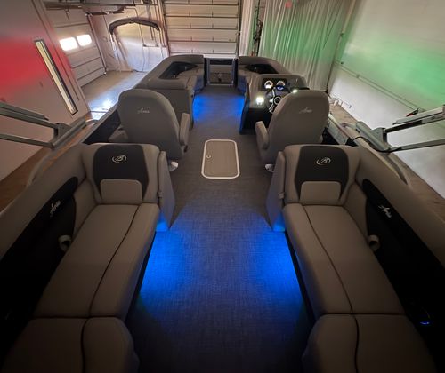 Owning the Barletta Aria A24QC means embracing a lifestyle of fun, relaxation, and connection. The spacious deck layout encourages socializing, whether you are hosting a lively gathering or enjoying a quiet sunset cruise. The plush Tempest Gray furniture provides ample seating for family and friends, ensuring everyone can relax in comfort. The customizable RGB lighting transforms the ambiance to suit any mood, from festive parties to tranquil evenings under the stars.The Triple Toon Package not only enhances performance but also contributes to a more stable and secure ride, making it ideal for families with children or anyone who values peace of mind on the water. The in-floor storage keeps essentials within easy reach, so you can focus on making memories instead of managing clutter. Every outing becomes an opportunity for adventure, laughter, and lasting bonds.