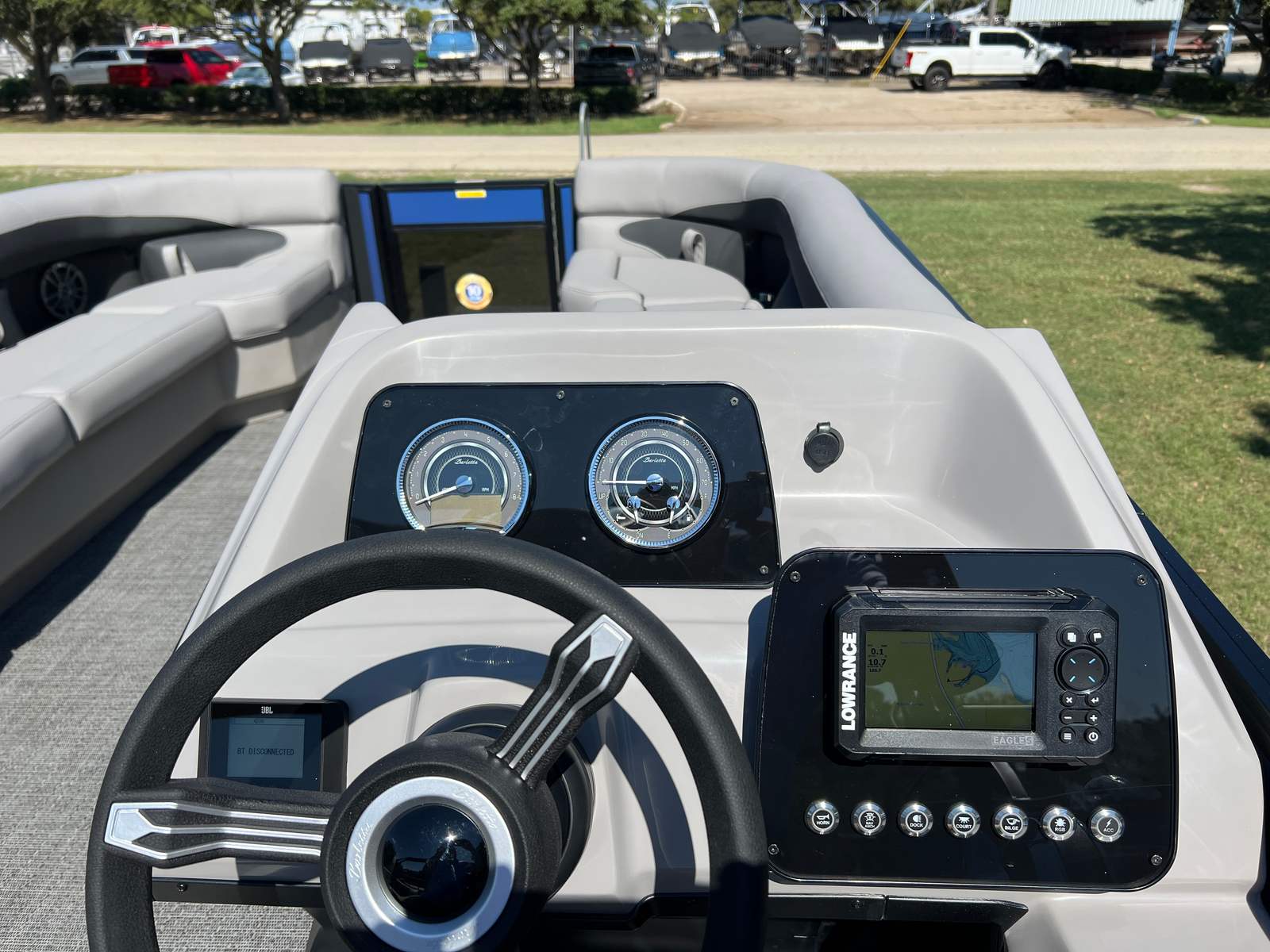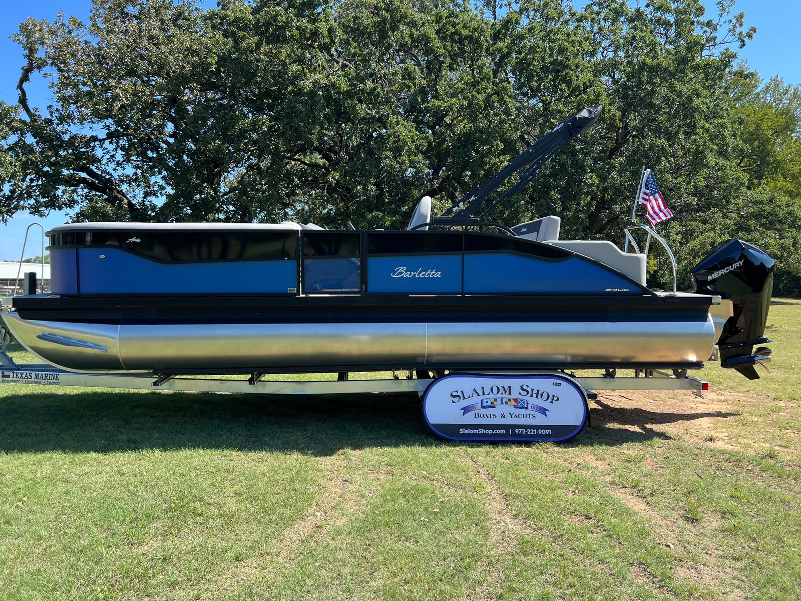 The 2026 Barletta Aria A24UC pontoon boat is a standout choice for anyone seeking a blend of luxury, performance, and practicality. With its striking Pacific Matte Blue and Black Diamond Railskin, Blackout Package Aria, plush Tempest Gray furniture, Amore Gray flooring, and Triple Toon Package Aria, this new pontoon offers a premium boating experience. The powerful Mercury 200L FourStroke engine, mechanical power assist, and stainless steel prop ensure top-notch performance and ease of use. The stainless steel flag pole with an American flag adds a unique touch of pride and style. If you’re ready to elevate your time on the water and create unforgettable memories, don’t miss the opportunity to own this exceptional Barletta boat for sale. Contact your local dealer today to learn more and schedule a viewing—your dream pontoon adventure awaits!