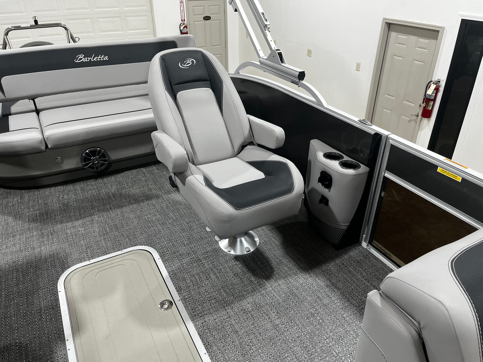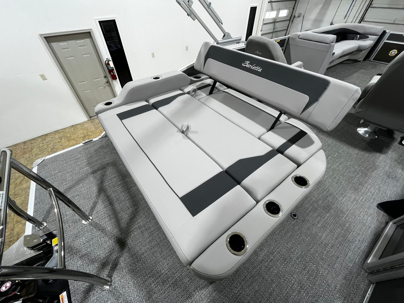 This Barletta pontoon boat is loaded with premium features designed to maximize comfort, convenience, and enjoyment. The Amore Gray flooring provides a stylish and durable foundation, while the Triple Toon Package Aria enhances stability and performance, allowing for smoother rides and increased capacity. The furniture, finished in Tempest Gray, offers plush seating and a modern look, ensuring that every passenger can relax in style.Navigation is a breeze with the integrated Hook 5 GPS, providing accurate and user-friendly guidance for all your adventures. The Railskin Color Aria in Gray Moonstone, complemented by the Railskin Accent Aria in Matte Black, creates a sophisticated exterior that stands out on the water. The pre-rigged Mercury mechanical setup ensures seamless integration with the engine, while the in-floor midship storage offers convenient space for stowing gear, water toys, or picnic essentials.
