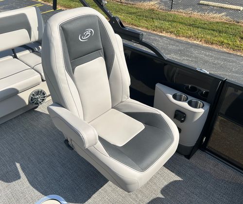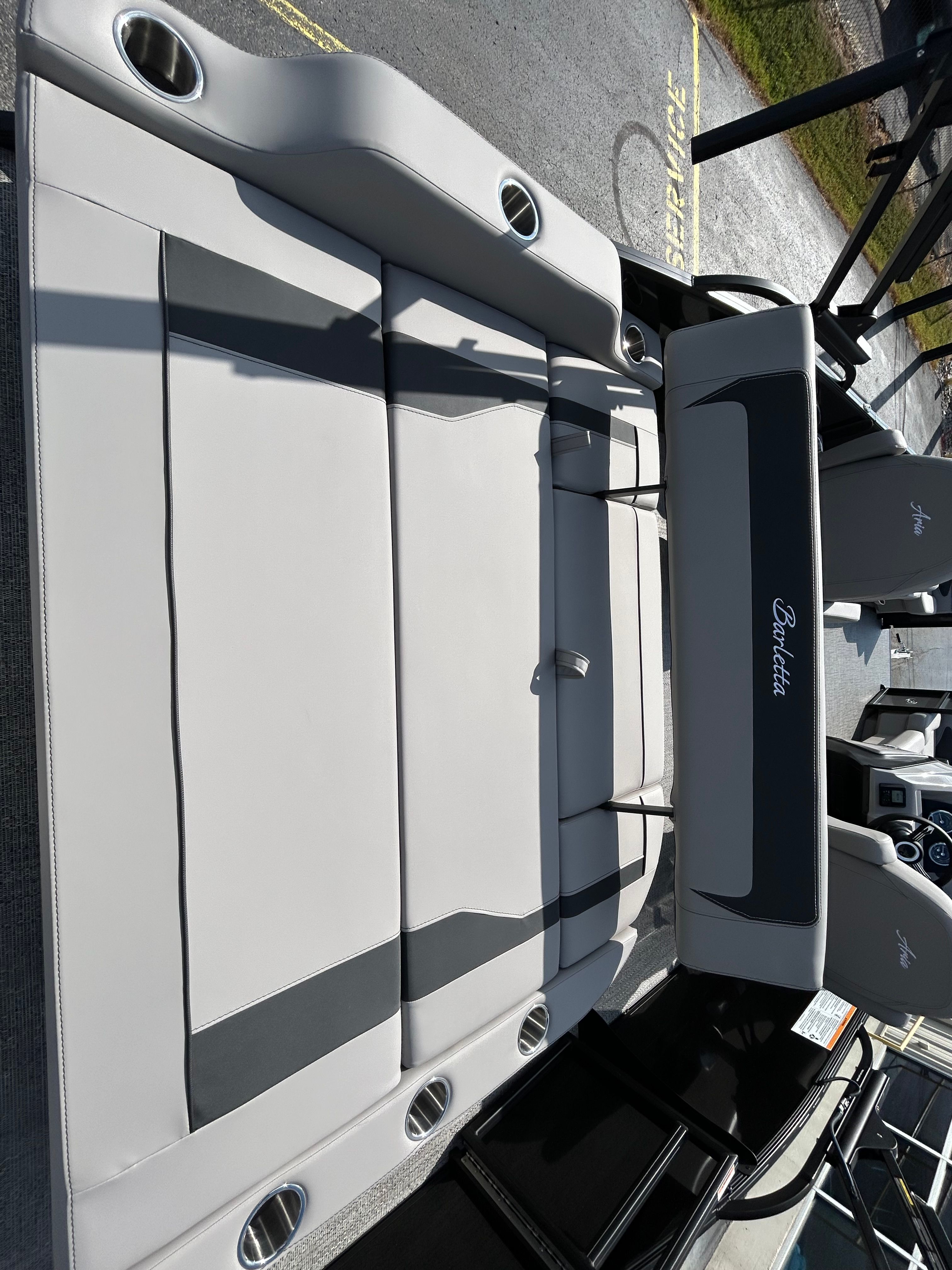 The 2026 Barletta Aria A24UC is loaded with features that set it apart from other pontoon boats for sale. The exterior showcases a stainless steel flag pole adorned with an American flag, adding a touch of patriotic flair to your boating experience. The Black Diamond railskin color, complemented by the Gray Moonstone accent and Blackout Package Aria, creates a striking visual appeal. Inside, the Tempest Gray furniture offers plush comfort and a modern look, while the Amore Gray flooring provides a stylish and easy-to-clean surface underfoot. The Triple Toon Package Aria enhances stability and performance, ensuring a smooth and enjoyable ride even in choppier waters.