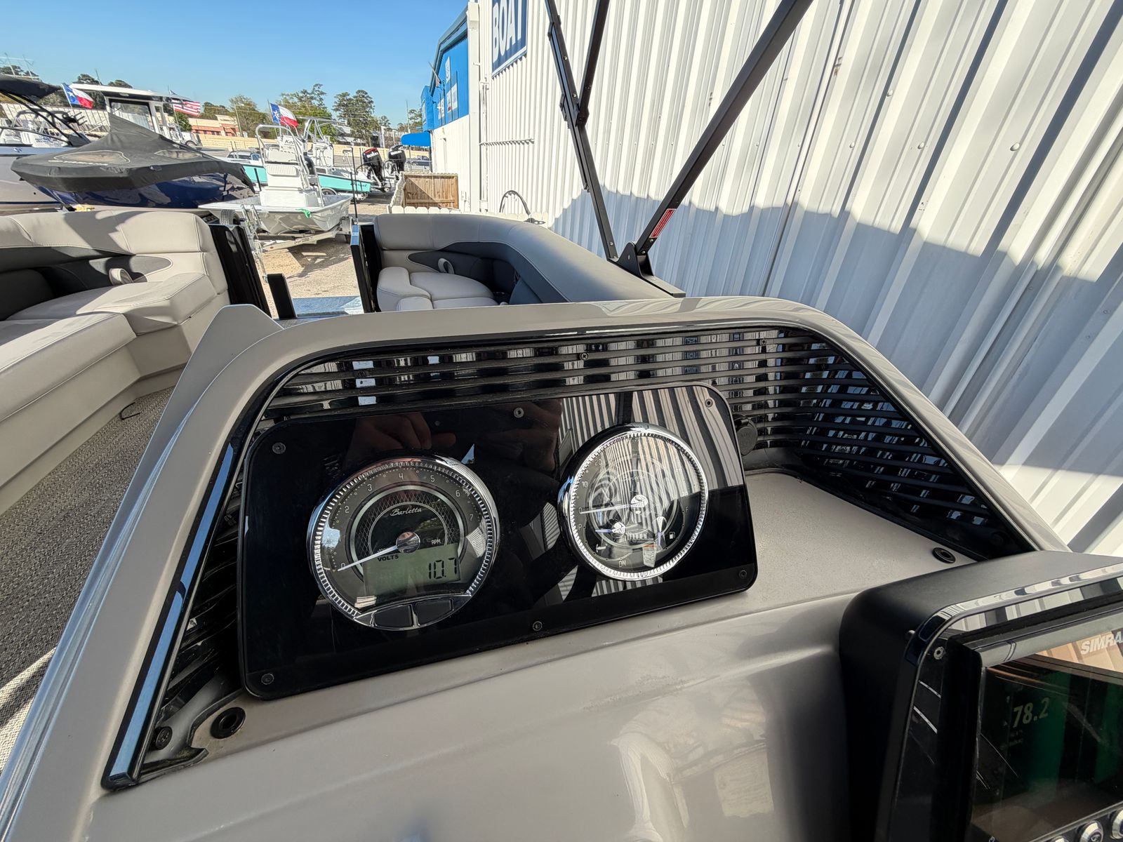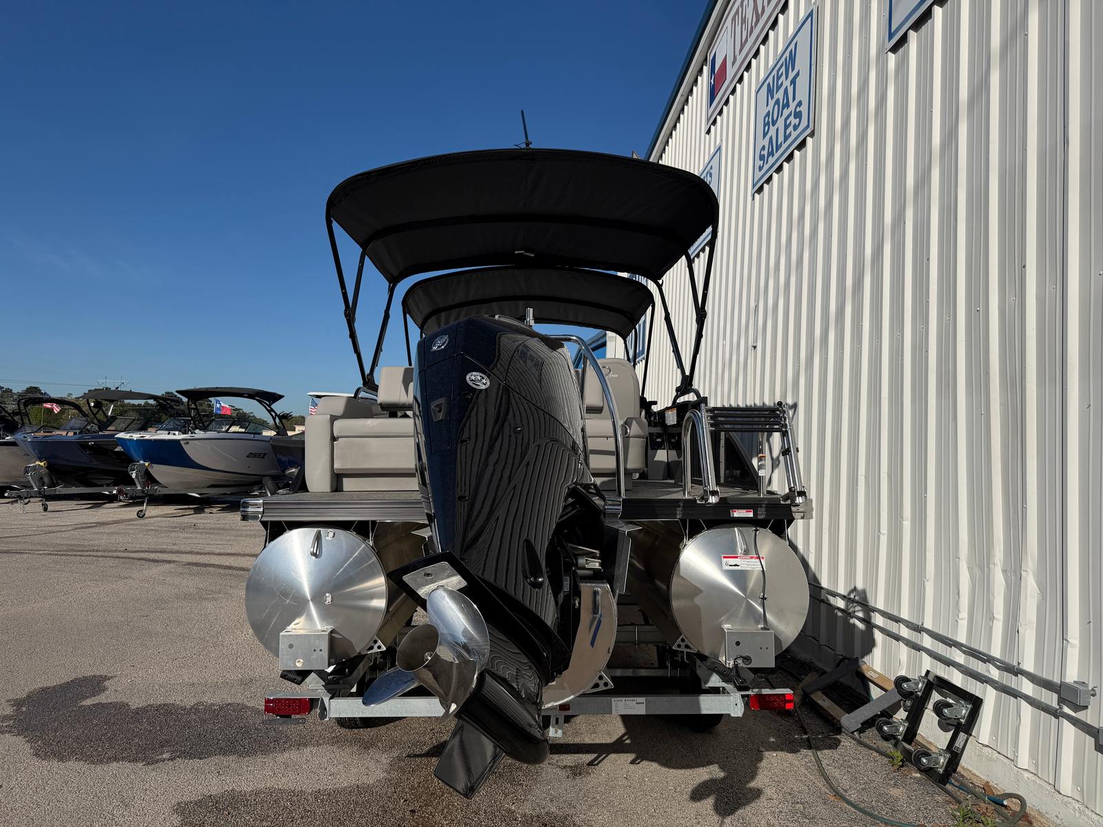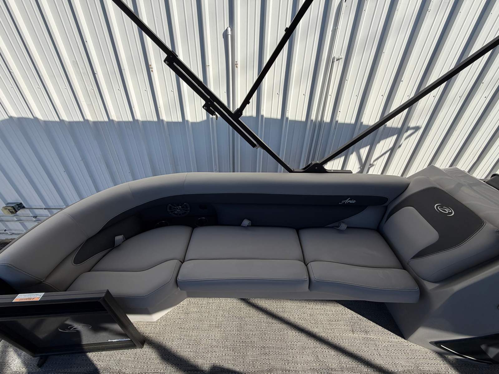 In summary, the 2026 Barletta Aria A24UC is a standout pontoon boat for sale that combines cutting-edge design, exceptional performance, and luxurious comfort. With its striking Black Diamond Railskin, Blackout Package, Tempest Gray furniture, Amore Gray flooring, Triple Toon Package, and powerful Mercury 250L FourStroke engine, this Barletta boat for sale offers everything you need for unforgettable days on the water. The double bimini setup and stainless steel flag pole with American flag add thoughtful touches that enhance both style and functionality. If you are ready to experience the ultimate in pontoon boating, don’t miss the opportunity to make the Barletta Aria A24UC your own. Contact your local dealer today to learn more and schedule a viewing.
