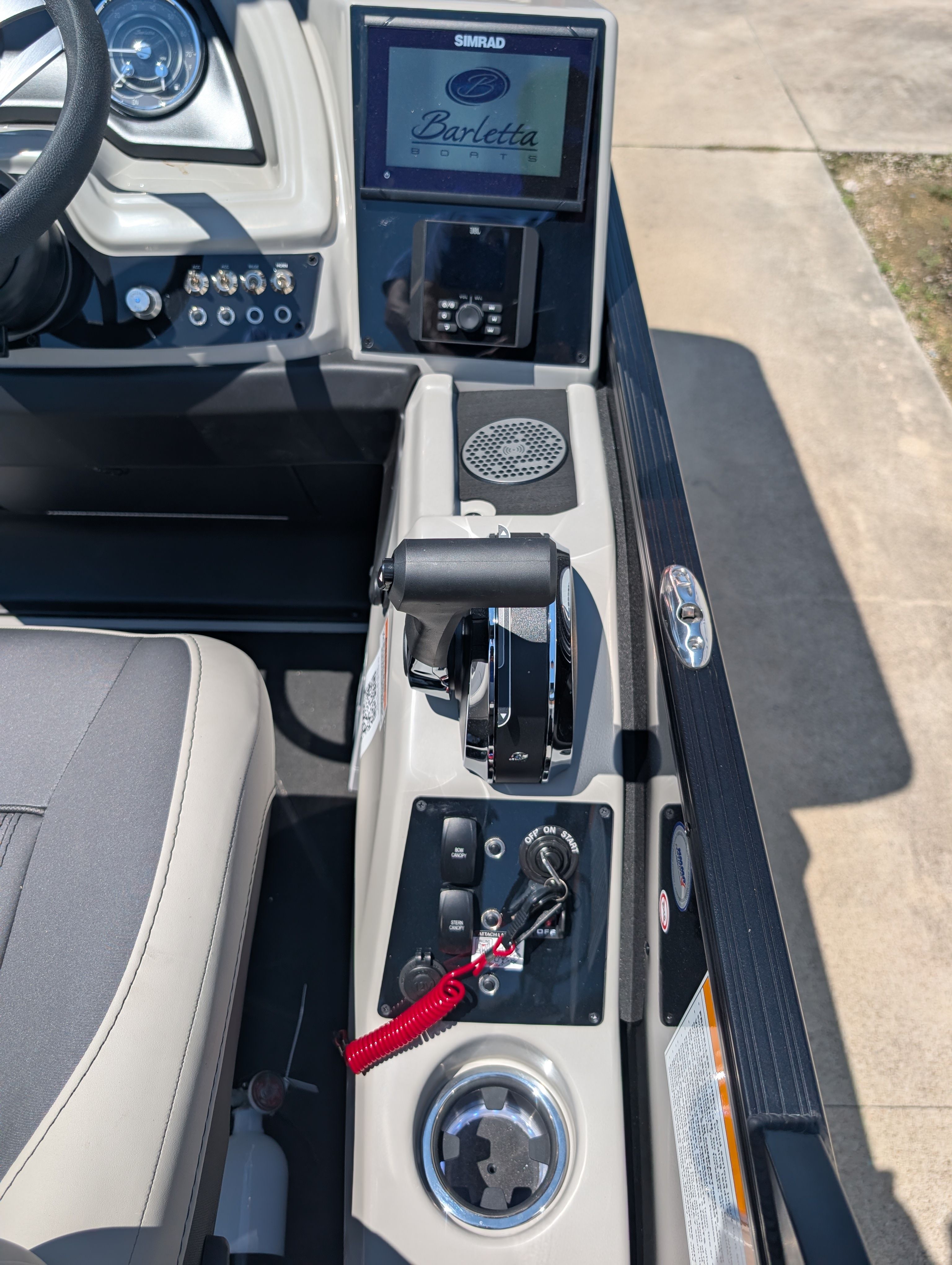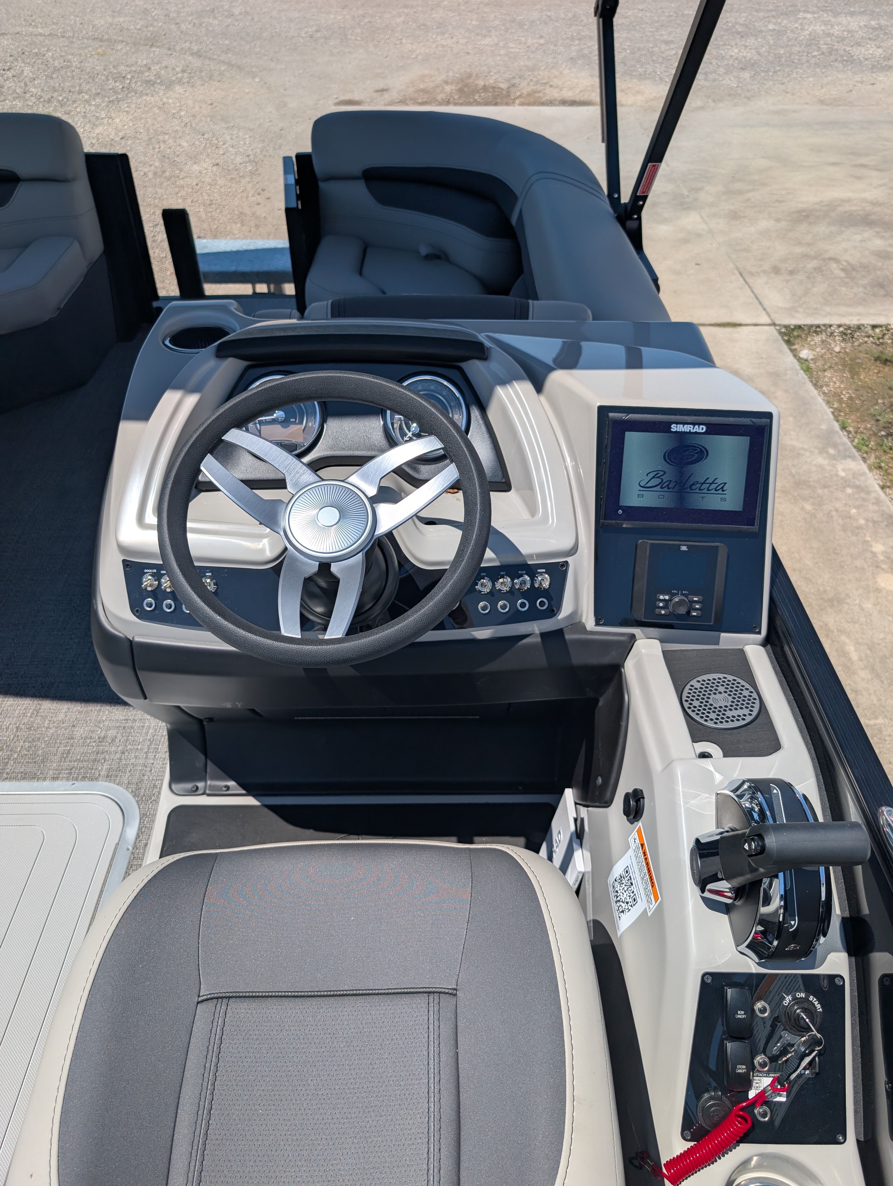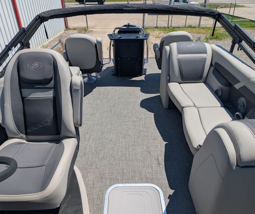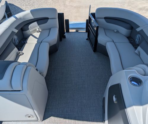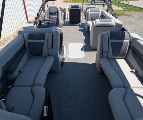 The 2025 Barletta Cabrio C22CC is packed with premium features that set it apart from other pontoon boats for sale. The Amore Gray flooring offers a modern and sophisticated look while providing durability and easy maintenance. The interior RGB Lighting Package Cabrio creates a vibrant and customizable atmosphere, perfect for evening gatherings or late-night cruises. Entertain guests around the stylish table, pedestal, and base, complete with Yeti-ready cupholders to keep your favorite beverages secure and within reach.The Triple Toon Package with midship storage enhances stability and buoyancy, ensuring a smooth and comfortable ride even when the boat is fully loaded. The helm is equipped with a Simrad 7 G07 XSR chartplotter and multifunction display, giving you advanced navigation and control at your fingertips. The exterior features a Metal Jacket Protectant, offering added durability and protection against the elements, while the Blackout Package Cabrio railskin adds a sleek, modern touch to the boat’s profile.Inside, the Marquesan Gray furniture with charcoal accents provides plush seating and a refined aesthetic, making every moment on board feel like a luxury experience. Every detail, from the upholstery to the layout, is designed with comfort and style in mind.