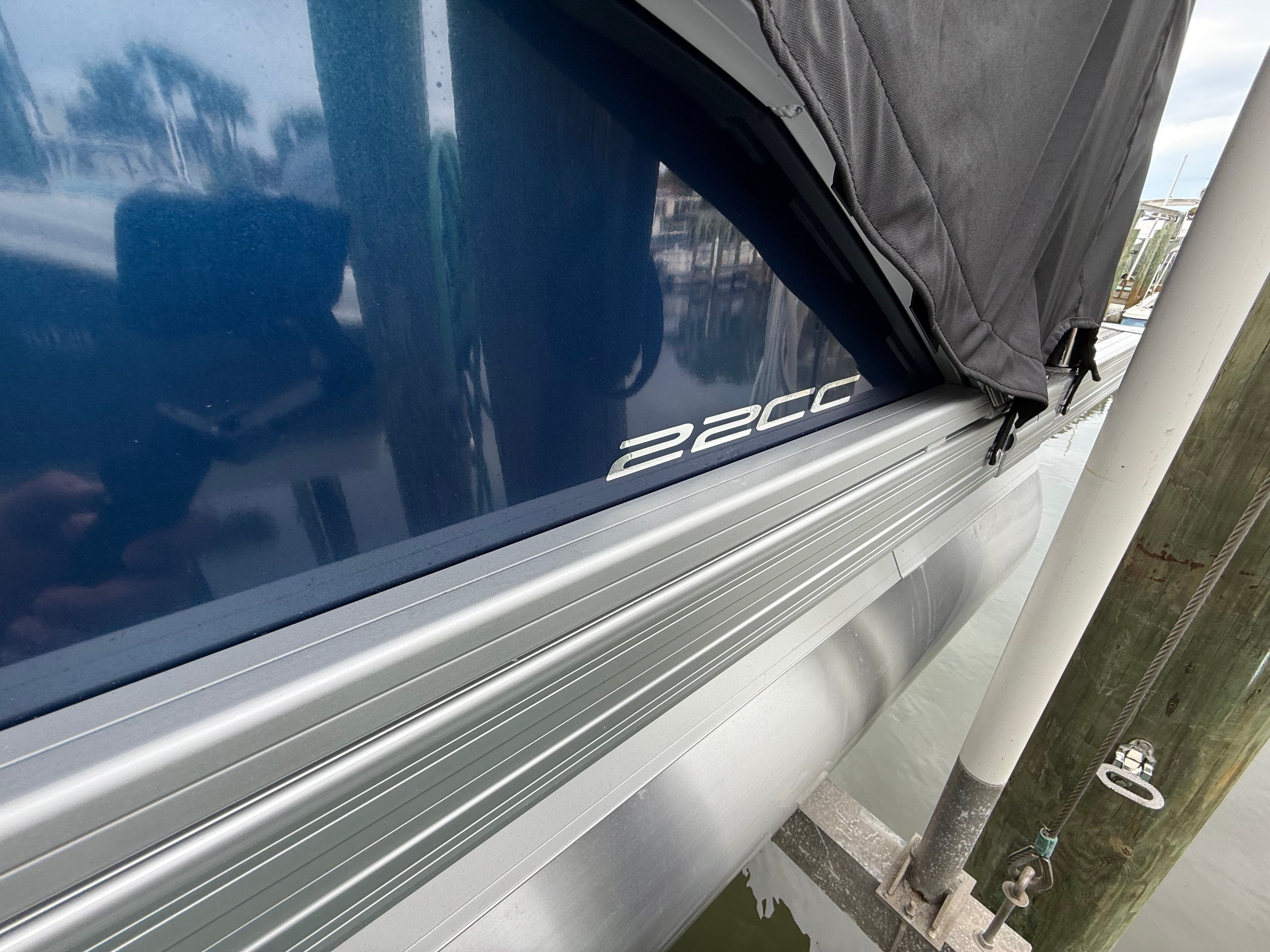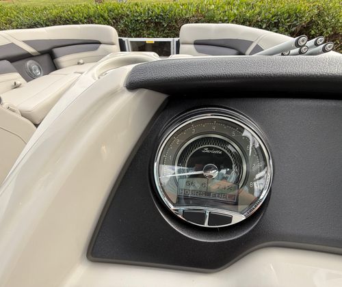 The 2025 Barletta Cabrio C22CC is a pontoon boat that exemplifies the best in recreational boating. Measuring an ideal length for both maneuverability and spaciousness, this model is designed to accommodate a variety of activities, from sunbathing and swimming to fishing and cruising. The Cabrio C22CC’s sleek lines and contemporary styling make it a head-turner at any marina or dock. As a used pontoon boat for sale, it offers exceptional value, with only 38 engine hours, ensuring you get a nearly new vessel with proven reliability.