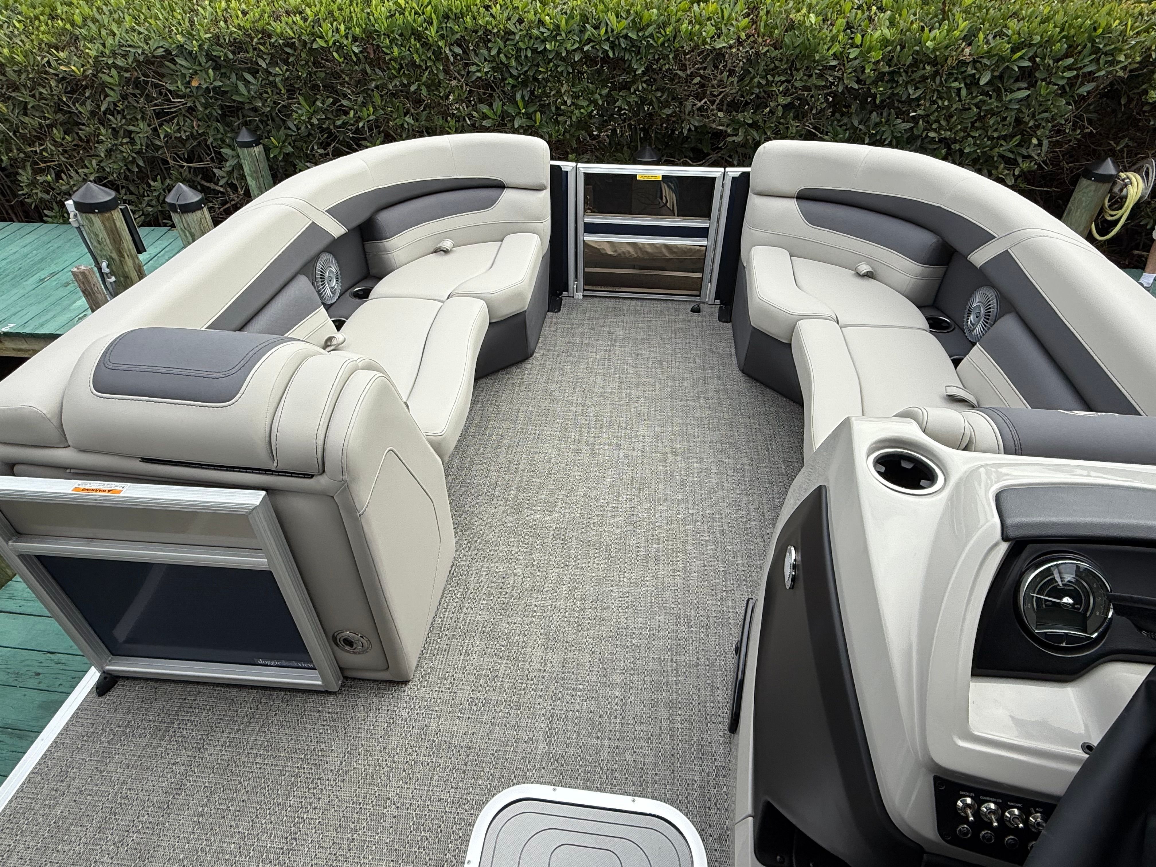 The 2025 Barletta Cabrio C22CC is thoughtfully equipped with features that enhance every aspect of your boating experience. The spacious deck layout provides ample room for guests to relax, socialize, or enjoy water sports. Plush seating ensures comfort during long cruises, while the sturdy construction and quality materials reflect Barletta’s commitment to excellence. The pontoon’s design maximizes usable space, making it easy to move around and access all areas of the boat. With its modern amenities and attention to detail, the Cabrio C22CC stands out among pontoon boats for sale.