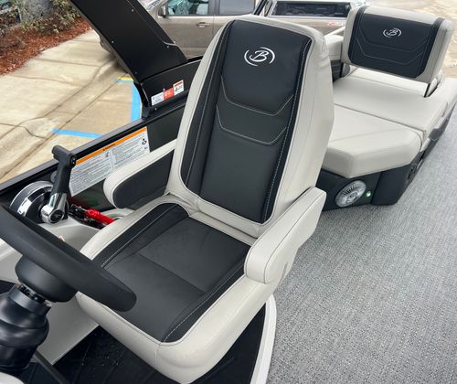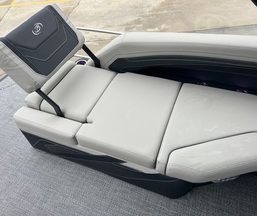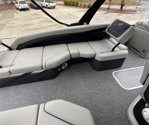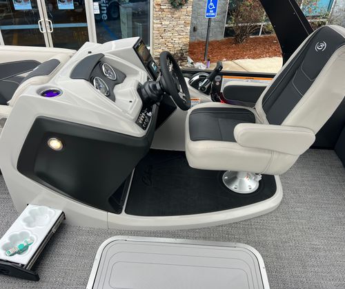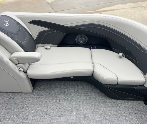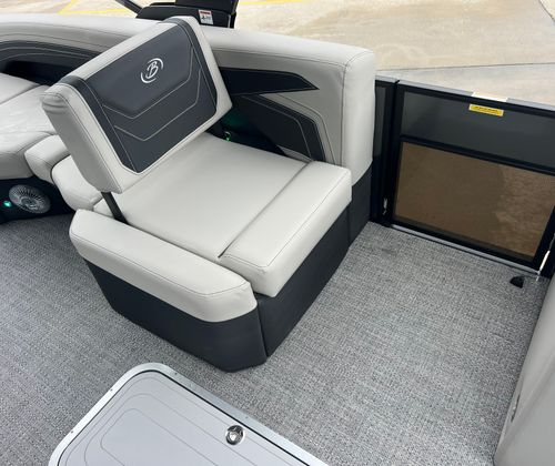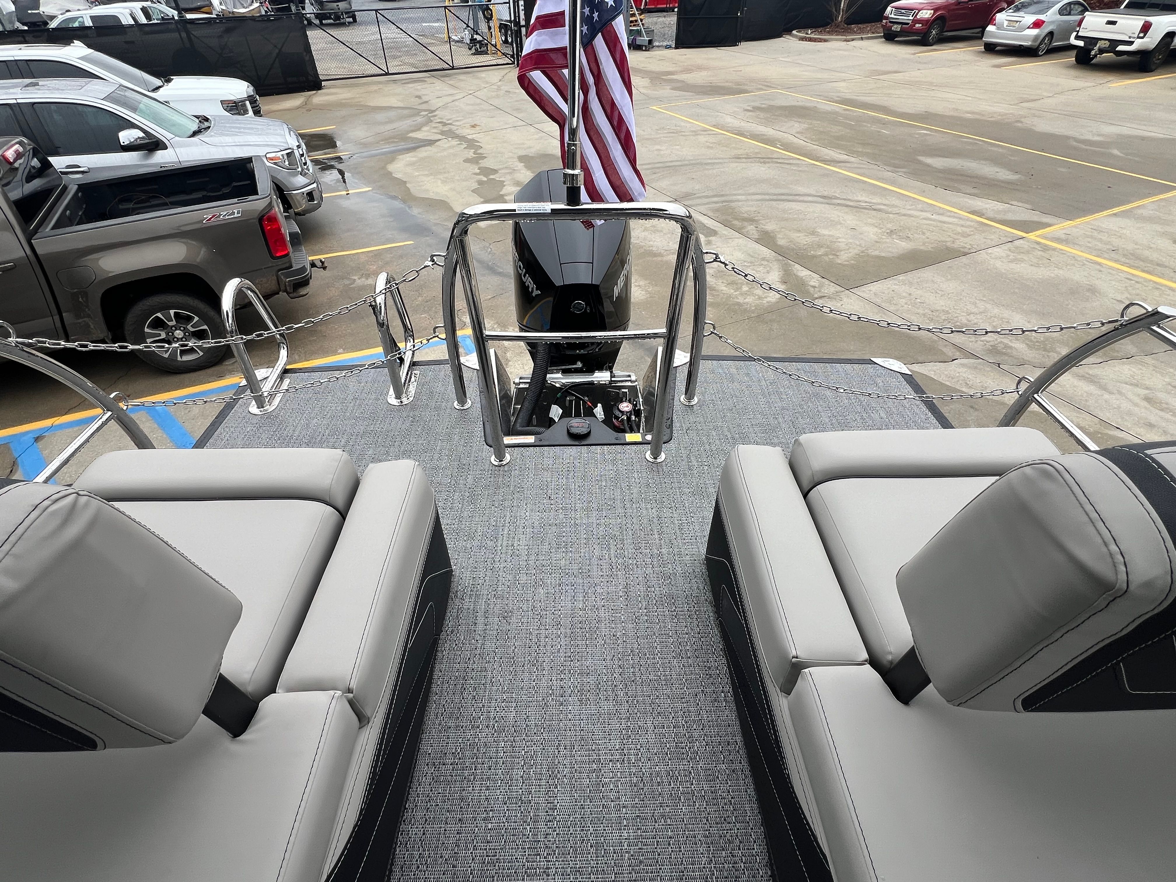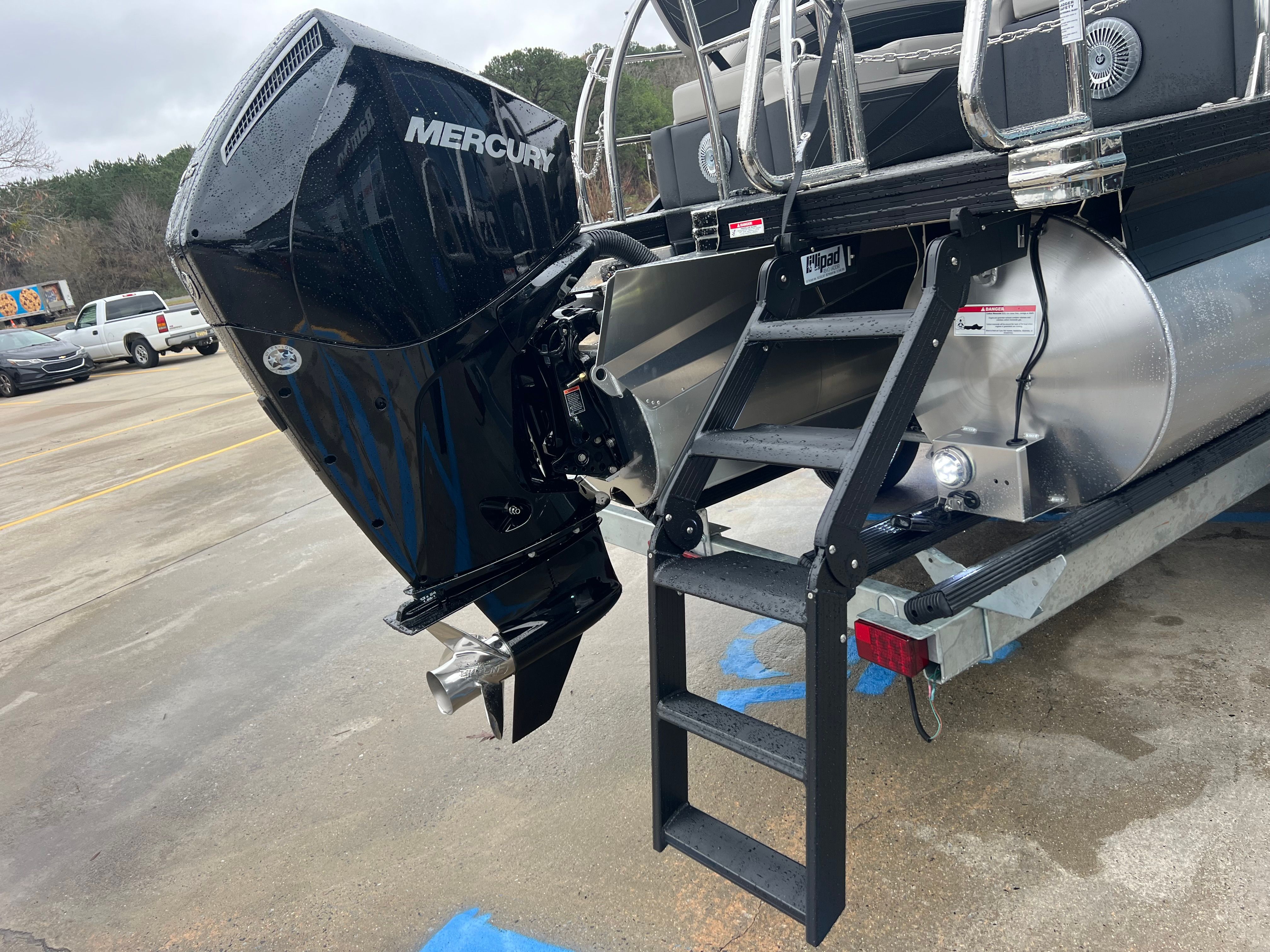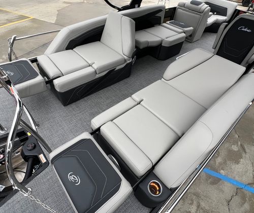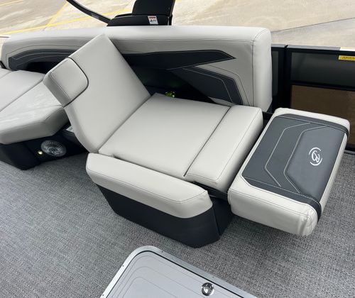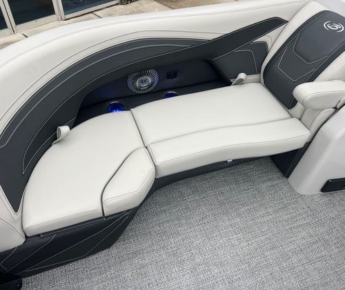 This pontoon boat is loaded with premium features designed to enhance your boating experience. The Blackout Package Cabrio adds a touch of modern flair, while the Marquesan Gray furniture with Onyx accents creates a comfortable and inviting atmosphere. The Amore Gray flooring is both stylish and practical, offering durability and easy maintenance. The Triple Toon Package with midship storage maximizes stability and provides convenient space for your gear, ensuring everything you need is within reach. The pre-rigged Mercury mechanical system simplifies operation, and the sports bimini canvas offers shade and protection from the sun, allowing you to enjoy longer days on the water.
