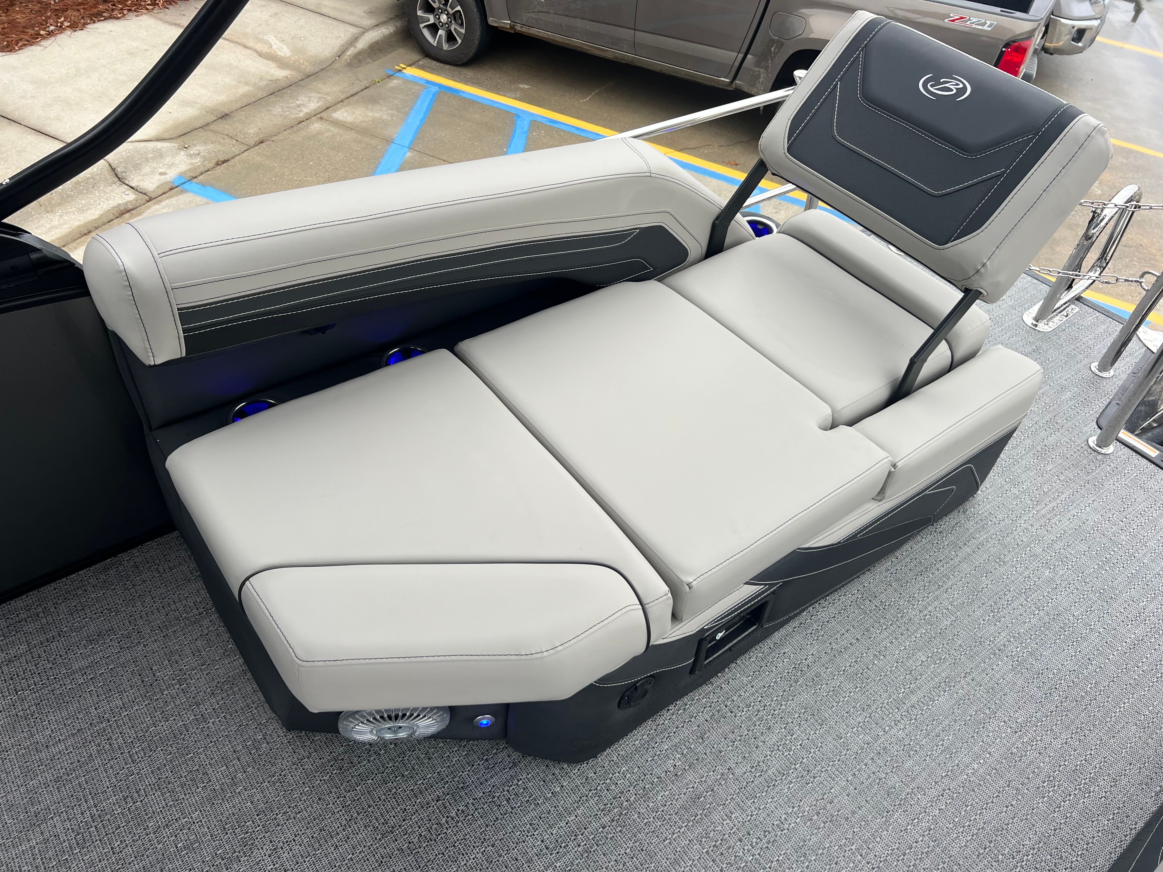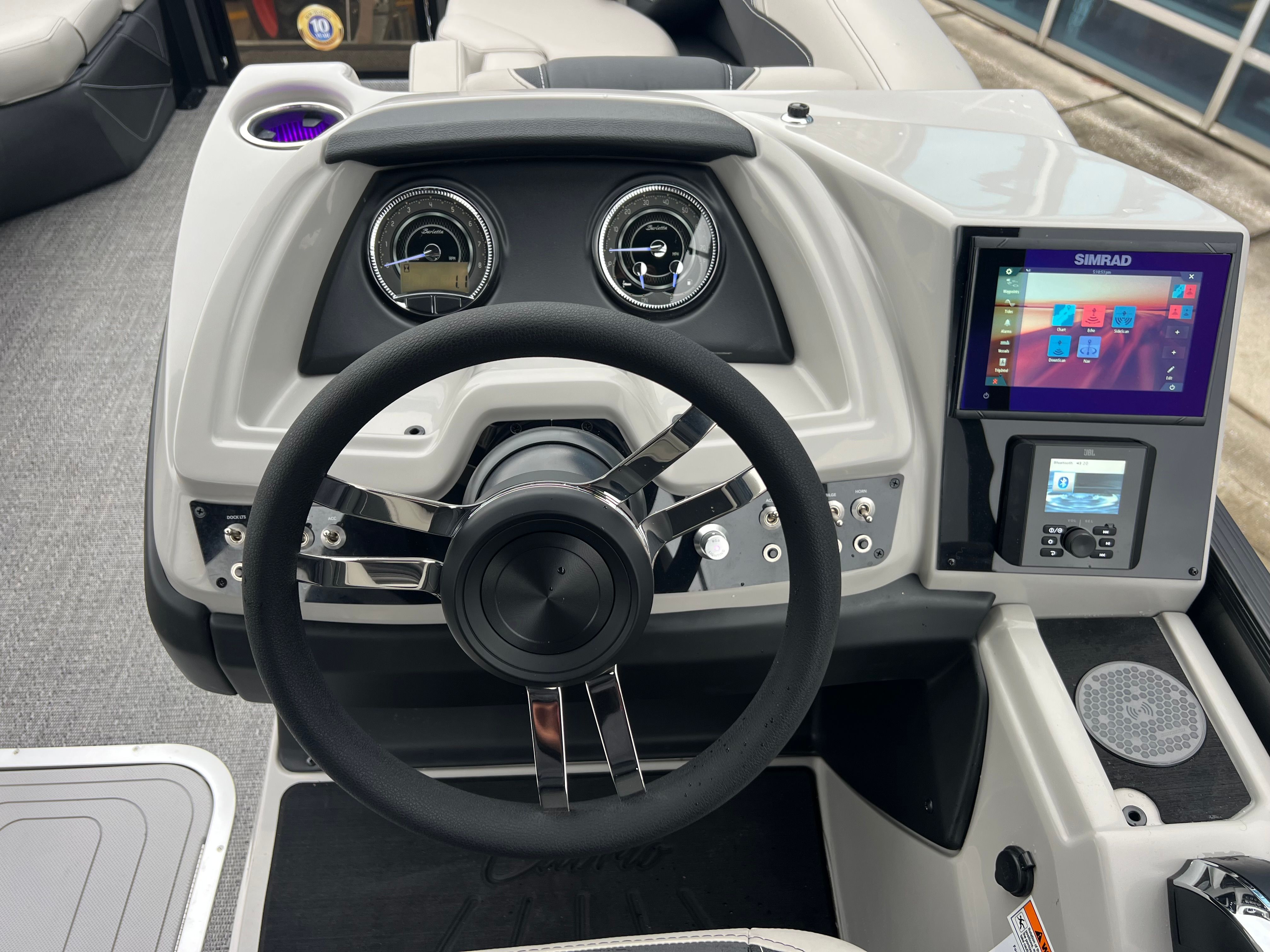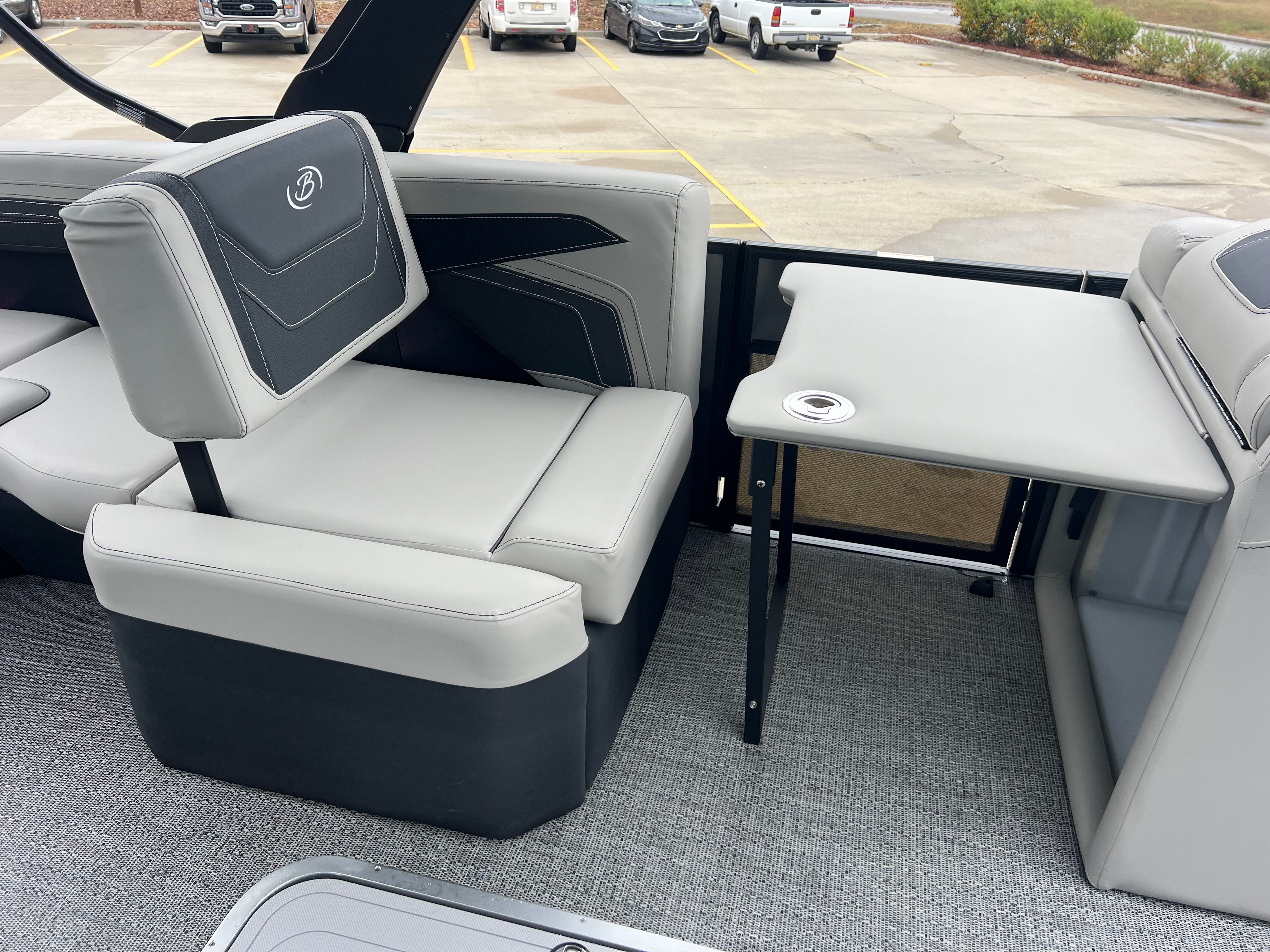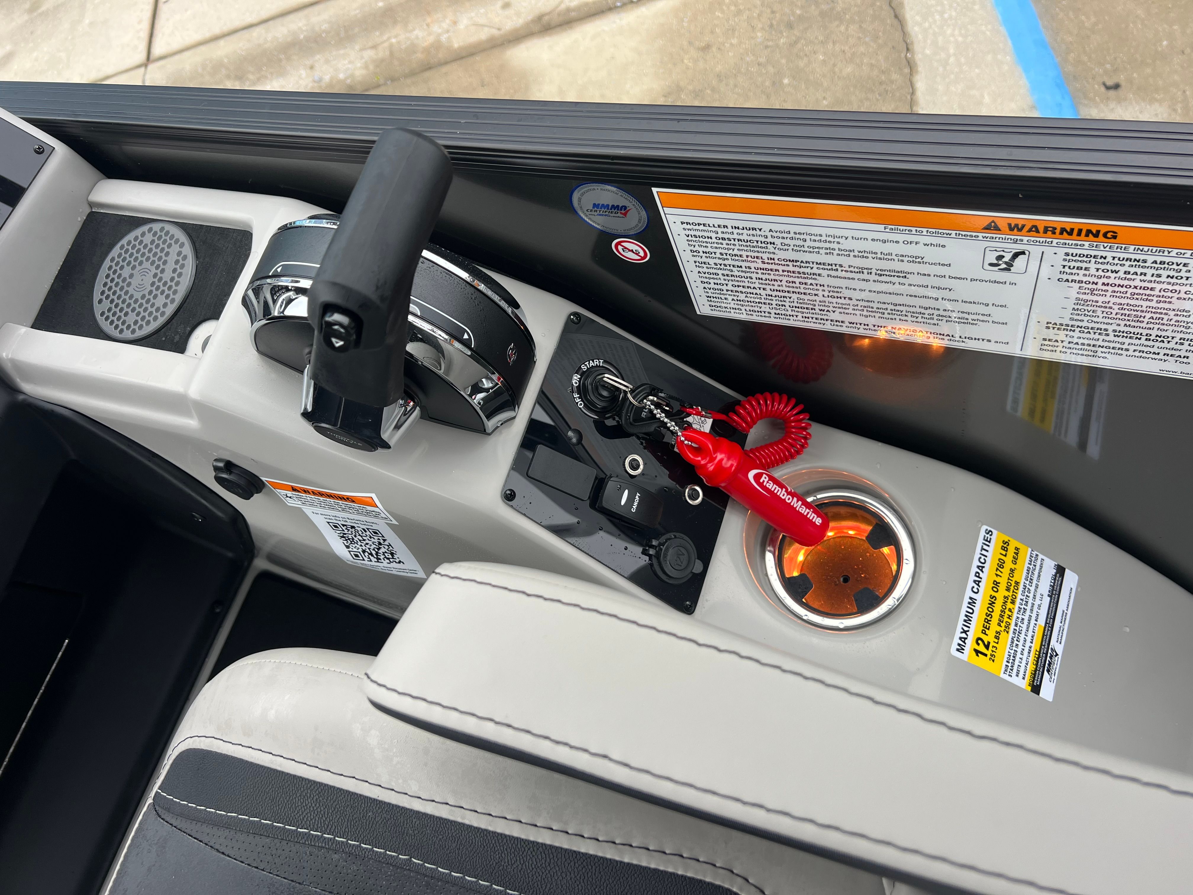 This pontoon boat is loaded with premium features designed to enhance your boating experience. The Blackout Package Cabrio adds a touch of modern flair, while the Marquesan Gray furniture with Onyx accents creates a comfortable and inviting atmosphere. The Amore Gray flooring is both stylish and practical, offering durability and easy maintenance. The Triple Toon Package with midship storage maximizes stability and provides convenient space for your gear, ensuring everything you need is within reach. The pre-rigged Mercury mechanical system simplifies operation, and the sports bimini canvas offers shade and protection from the sun, allowing you to enjoy longer days on the water.