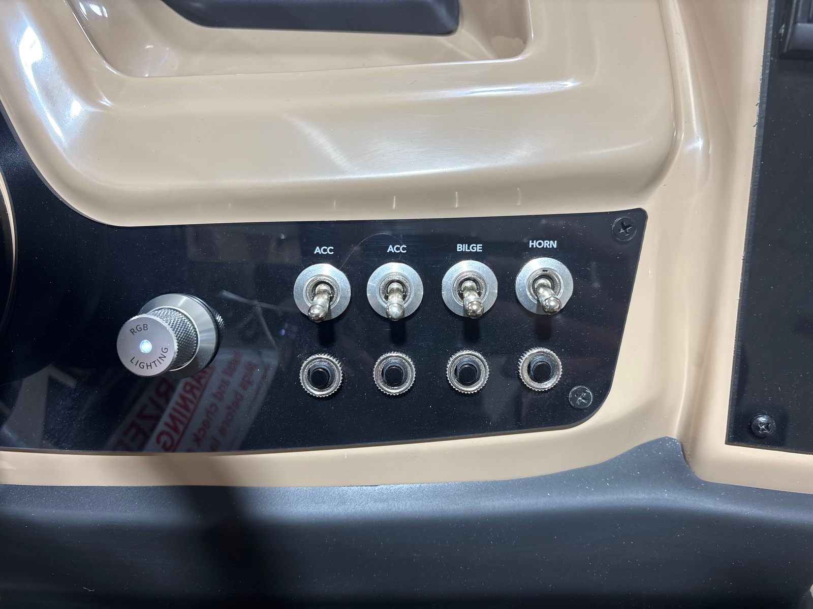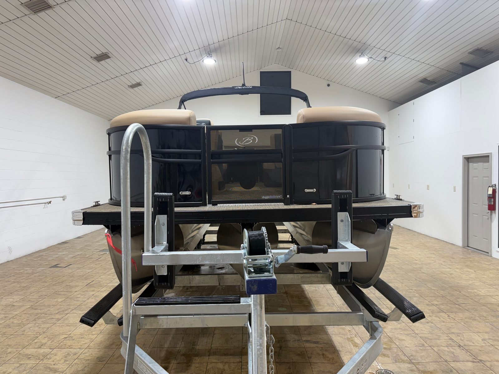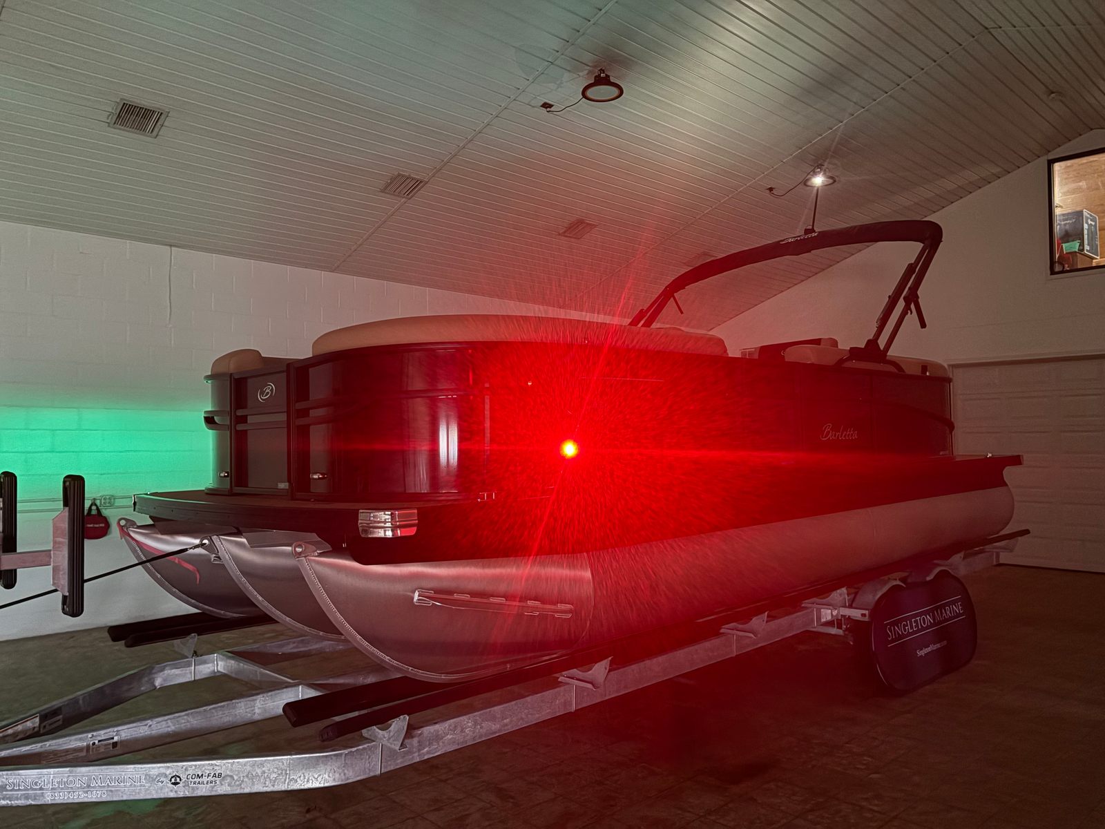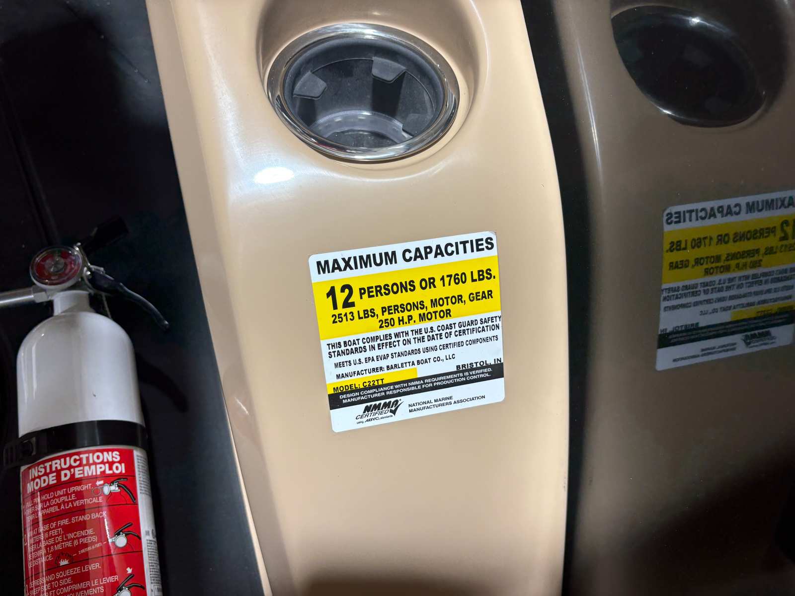 The Barletta Cabrio C22Q is loaded with features that elevate your boating experience. The Black Diamond Railskin color and Blackout Package Cabrio create a bold, contemporary exterior that is both stylish and durable. Step aboard to discover the Carmella Tan with Onyx furniture, offering plush comfort and a sophisticated look. The Amore Tan flooring is not only visually appealing but also practical, providing a soft, non-slip surface underfoot.One of the standout features of this pontoon is the Triple Toon Package with midship storage, exclusive to the Cabrio line. This configuration enhances stability and buoyancy, while the midship storage compartment offers convenient space for stowing gear, water toys, or picnic essentials. The stainless steel flag pole with an American flag adds a patriotic touch, perfect for holiday weekends or special occasions on the water.For those who love to set the mood, the interior RGB lighting package allows you to customize the ambiance with vibrant colors, making evening cruises truly magical. Every detail, from the stainless steel accents to the thoughtfully designed seating, reflects Barletta’s commitment to quality and comfort.