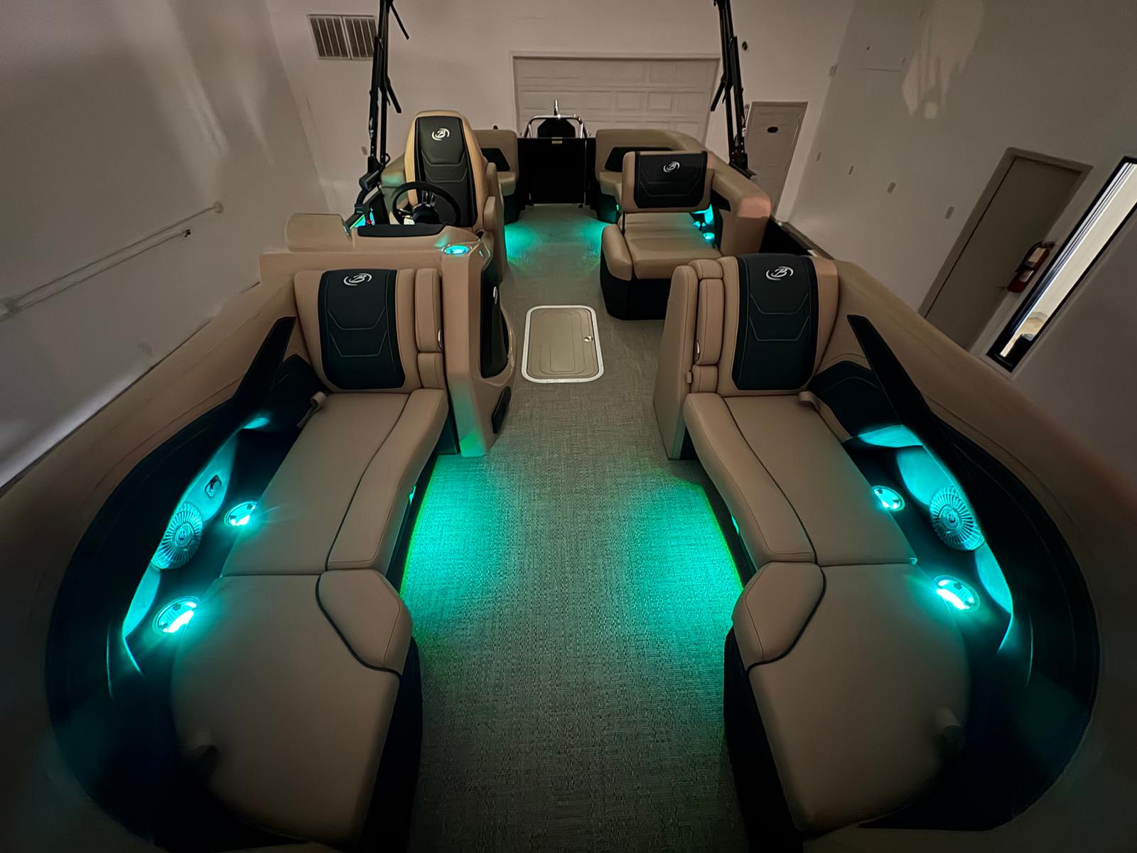The Barletta Cabrio C22Q shines in a variety of settings, making it a versatile choice for any boating enthusiast. Picture yourself hosting a family reunion on the lake, with plenty of seating for everyone and ample storage for all your gear. Imagine leisurely cruises at sunset, the interior RGB lighting casting a warm glow as you glide across the water. For those who love water sports, the powerful Mercury engine provides the thrust needed for tubing or wakeboarding adventures.This pontoon boat is equally at home during quiet fishing trips, offering a stable platform and comfortable seating for hours of relaxation. Its stylish design and premium features make it a standout choice for luxury getaways, where comfort and elegance are paramount. No matter how you choose to spend your time on the water, the Cabrio C22Q adapts to your needs and elevates every experience.