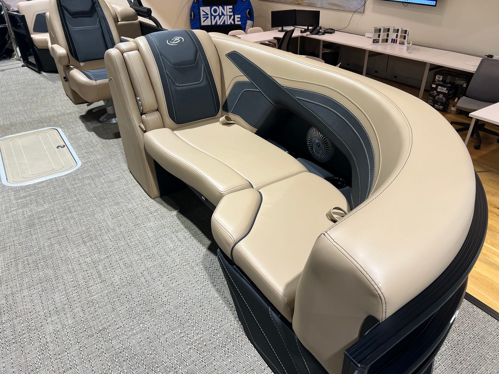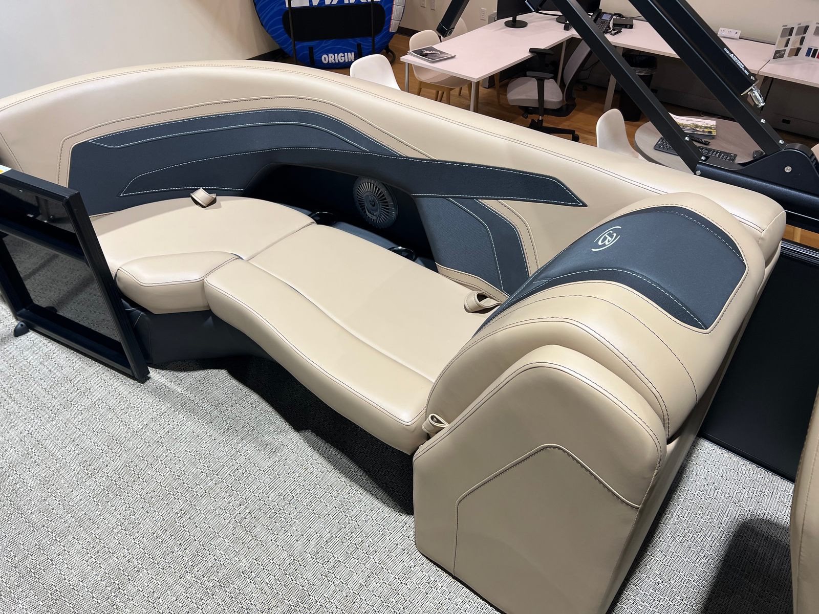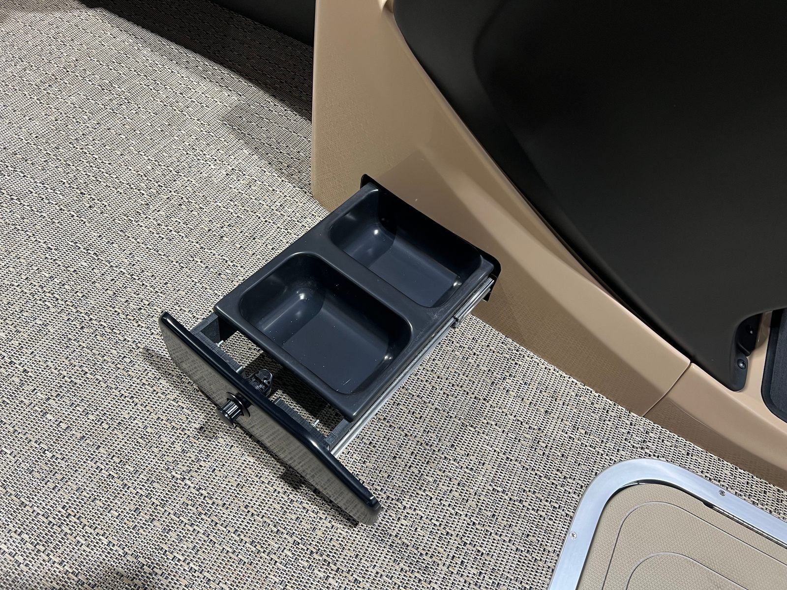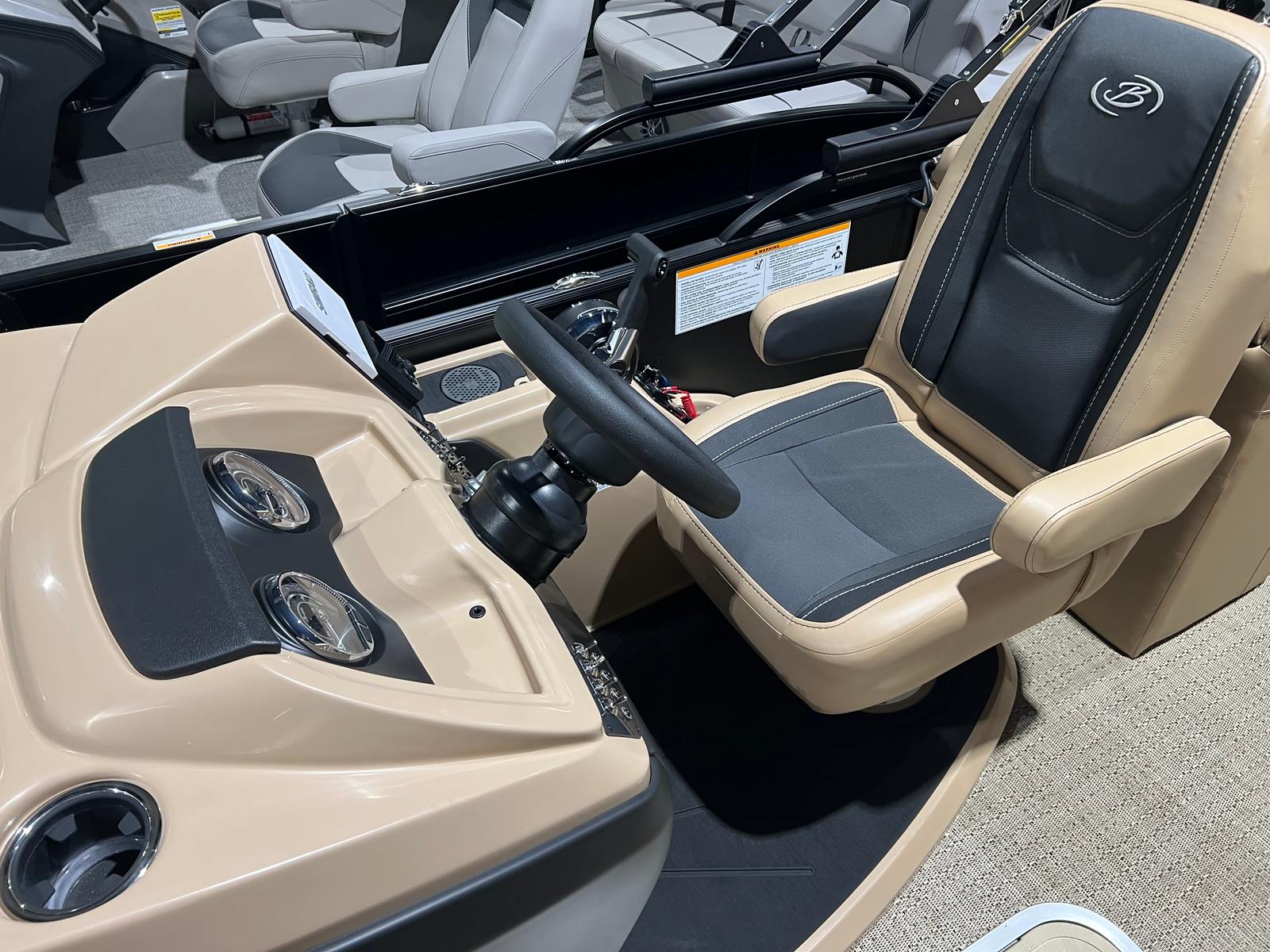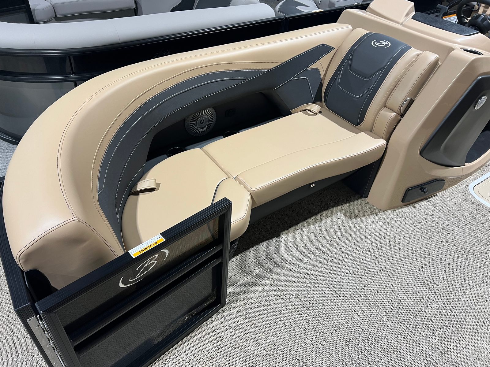 The Barletta Cabrio C22QC is packed with premium features that set it apart from other pontoon boats for sale. The triple toon package with midship storage provides extra space for gear, water toys, and essentials, keeping the deck clutter-free and organized. Navigation and entertainment are elevated by the Simrad 7" G07 XSR Chartplotter/Multifunction Display, offering intuitive controls and real-time information for a safer, more enjoyable boating experience.Aesthetically, the Railskin Color in Black Diamond, complemented by a Matte Black accent, gives the boat a striking, contemporary look. The interior RGB lighting package creates a customizable ambiance, perfect for evening cruises or lively gatherings. The furniture, finished in Carmella Tan with Onyx accents, offers plush seating and a refined atmosphere, ensuring every passenger rides in comfort and style.Additional touches like the stainless steel flag pole with an American flag add a sense of pride and personality to your vessel, making it truly unique. Every detail, from the rigged engine with a stainless steel prop to the thoughtfully designed interior, reflects Barletta’s commitment to quality and innovation.