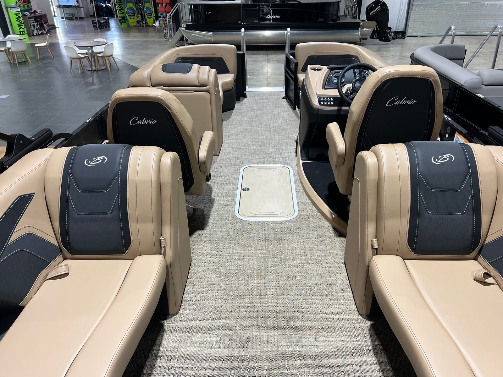 Powering the Cabrio C22QC is a robust Mercury (M) 200L FourStroke engine, delivering a thrilling 200 horsepower. This single-engine setup is expertly rigged with a stainless steel prop for enhanced durability and efficiency. The pre-rig Mercury mechanical system with power assist ensures smooth handling and effortless control, whether you’re cruising at a leisurely pace or picking up speed for water sports. The triple toon package with midship storage not only boosts stability and buoyancy but also enhances overall performance, making this pontoon boat a joy to operate in various water conditions.