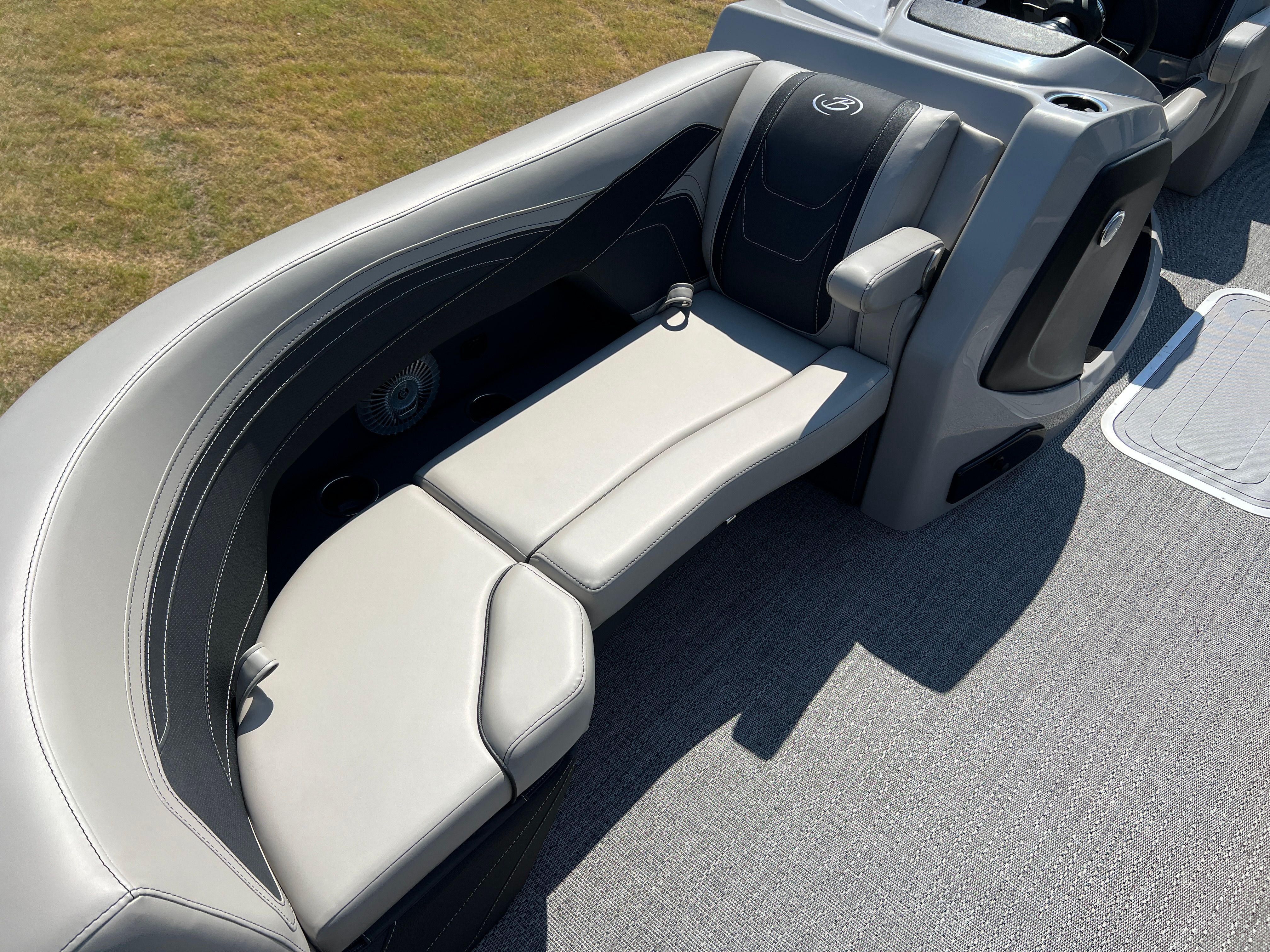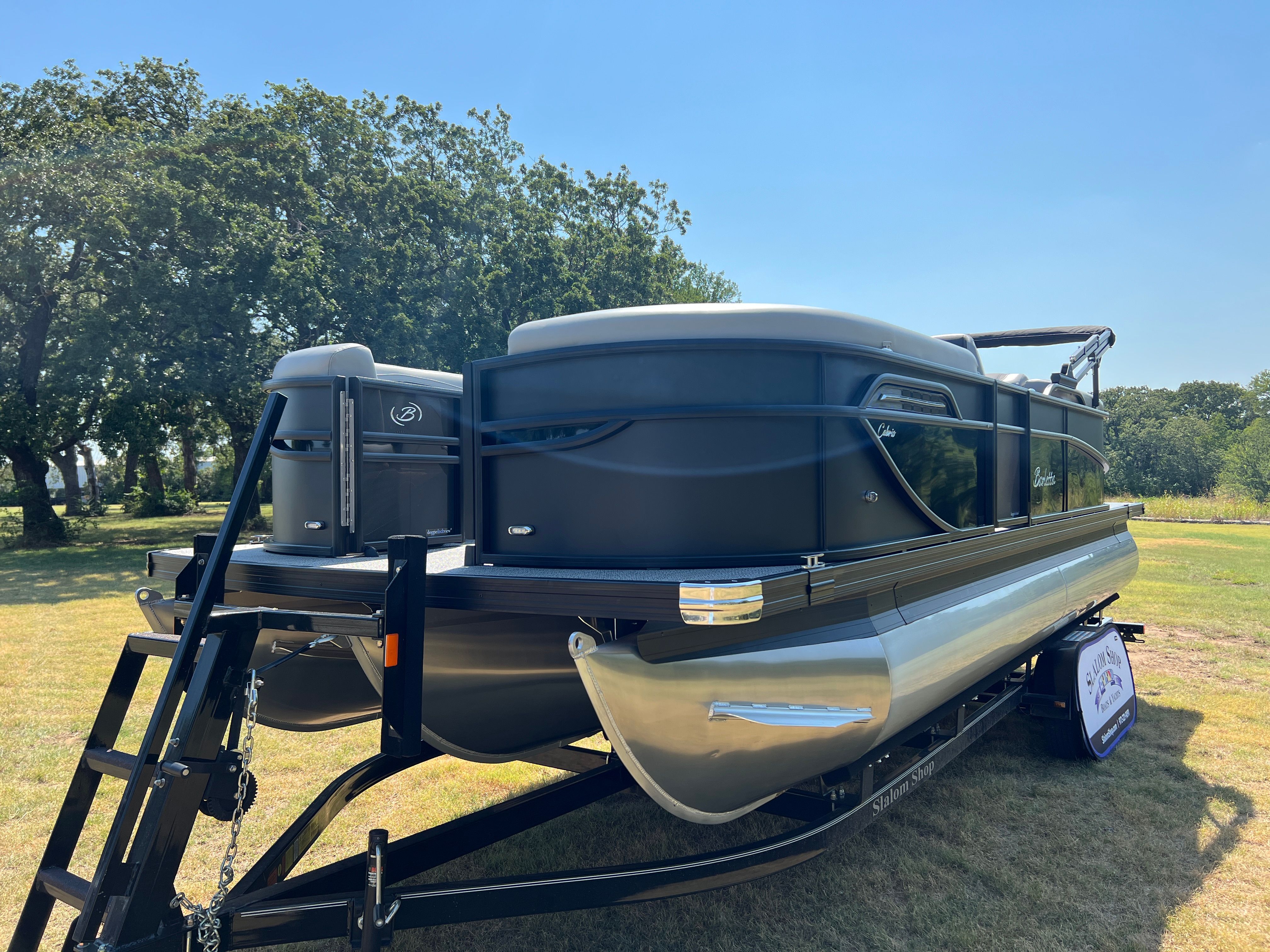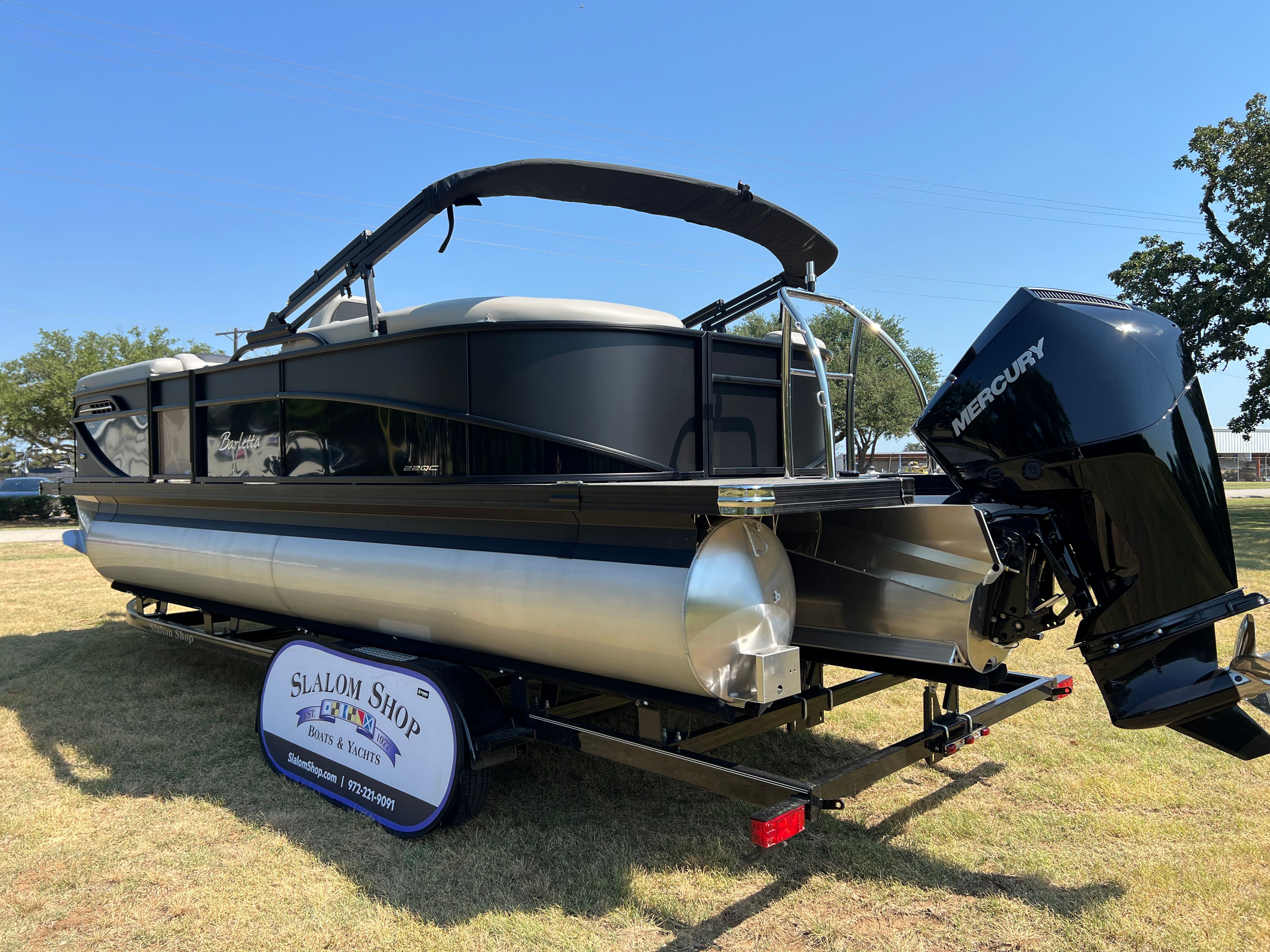 The Barletta Cabrio C22QC is packed with special features designed to maximize comfort, convenience, and enjoyment. The Matte Black Railskin color and Black Diamond accent create a striking visual appeal, while the Blackout Package Cabrio adds a touch of elegance and exclusivity. Inside, the Marquesan Gray furniture with Onyx detailing offers plush seating and a modern aesthetic, complemented by the Amore Gray flooring for a cohesive look. The Triple Toon Package with midship storage provides extra space for gear and supplies, ensuring you’re always prepared for a day on the water. The Mercury 200L FourStroke engine, paired with mechanical power assist and a stainless steel prop, delivers reliable and efficient performance. The Metal Jacket Protectant helps safeguard your investment, keeping your pontoon looking its best season after season.