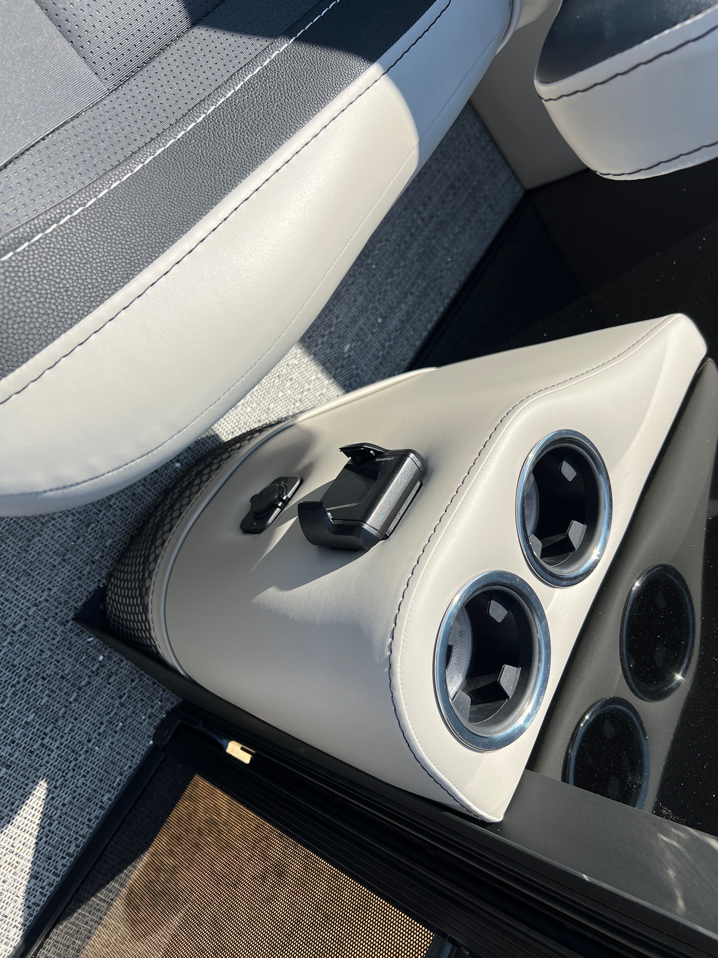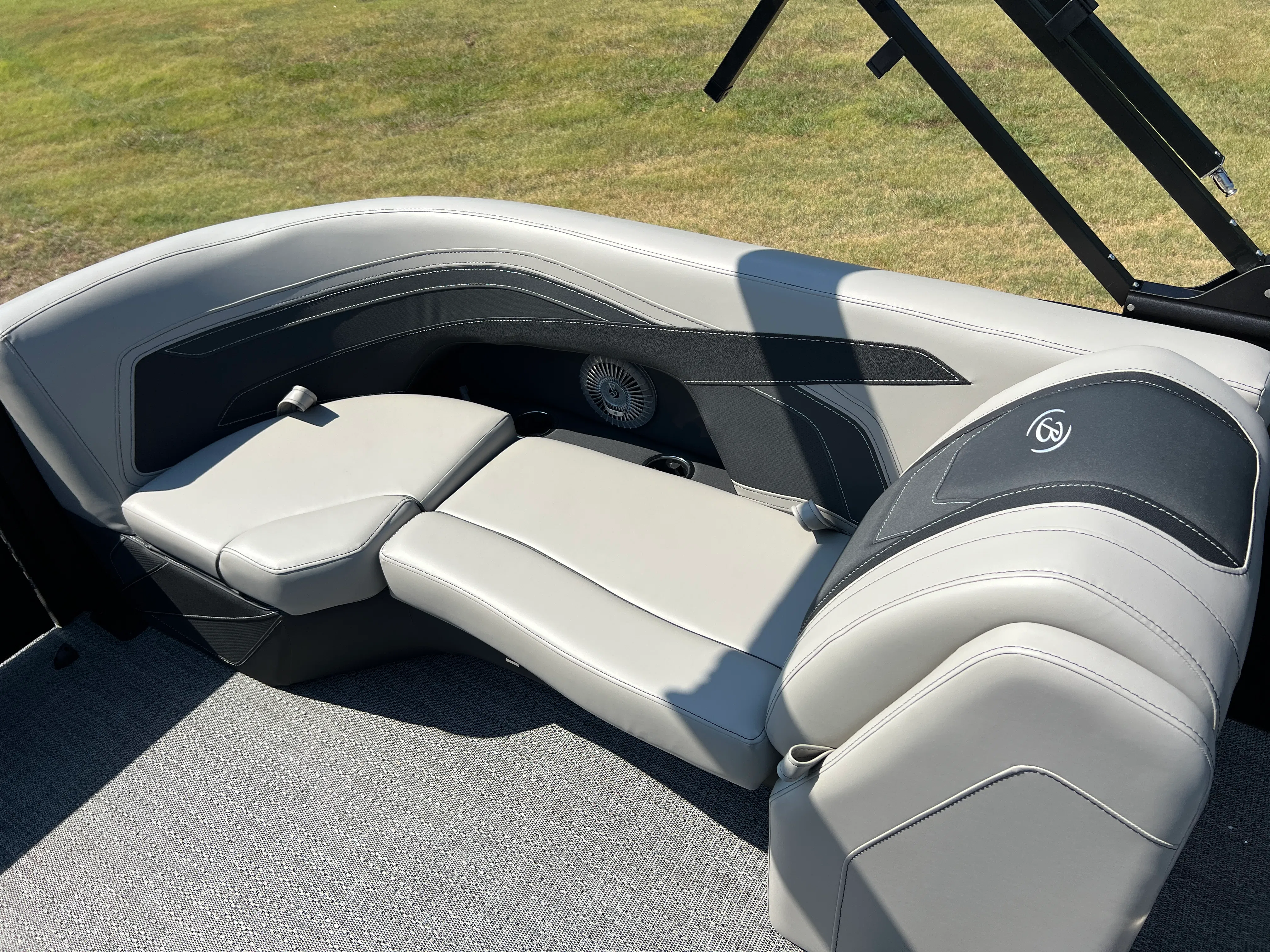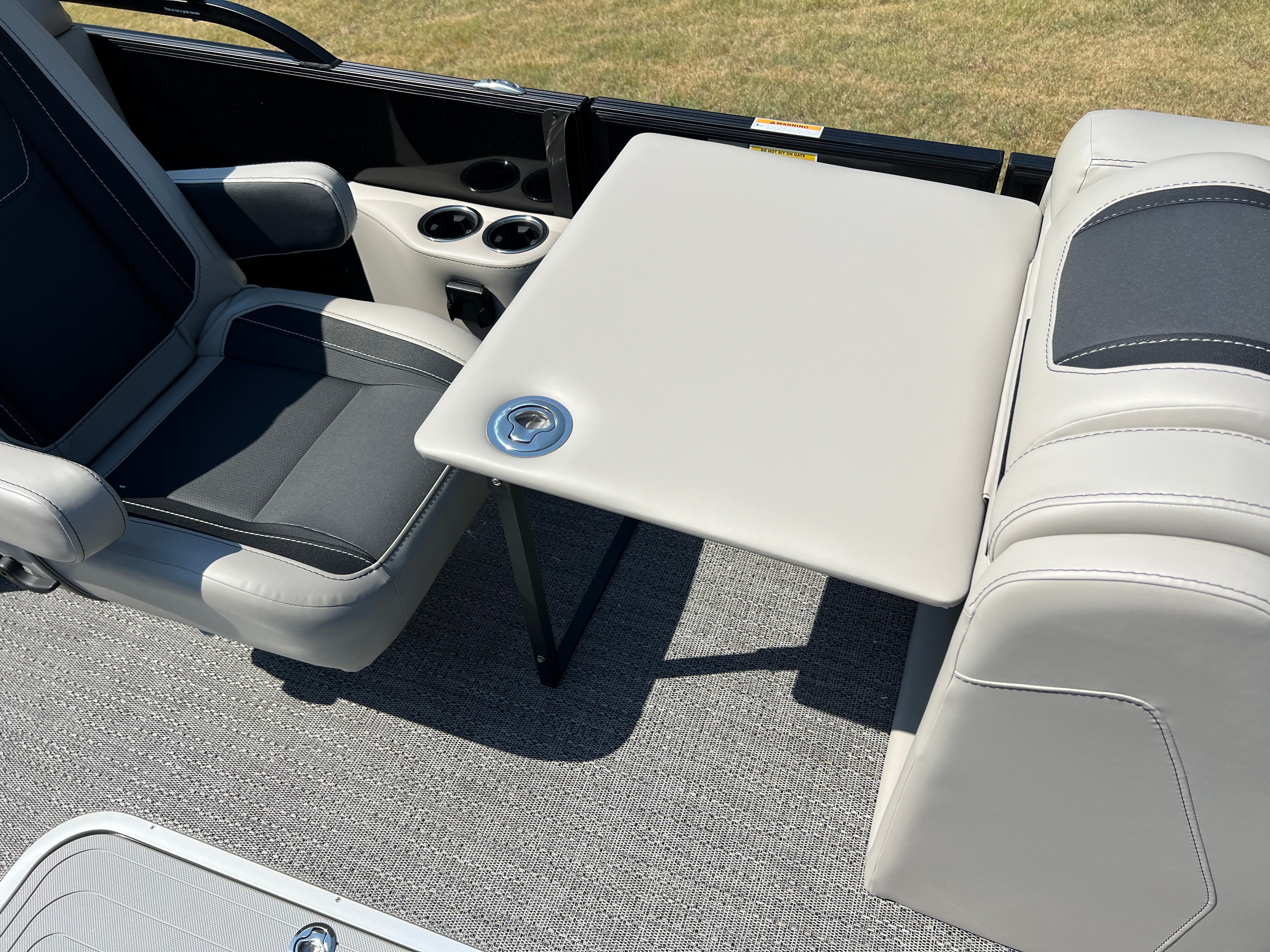 The Barletta Cabrio C22QC is packed with special features designed to maximize comfort, convenience, and enjoyment. The Matte Black Railskin color and Black Diamond accent create a striking visual appeal, while the Blackout Package Cabrio adds a touch of elegance and exclusivity. Inside, the Marquesan Gray furniture with Onyx detailing offers plush seating and a modern aesthetic, complemented by the Amore Gray flooring for a cohesive look. The Triple Toon Package with midship storage provides extra space for gear and supplies, ensuring you’re always prepared for a day on the water. The Mercury 200L FourStroke engine, paired with mechanical power assist and a stainless steel prop, delivers reliable and efficient performance. The Metal Jacket Protectant helps safeguard your investment, keeping your pontoon looking its best season after season.