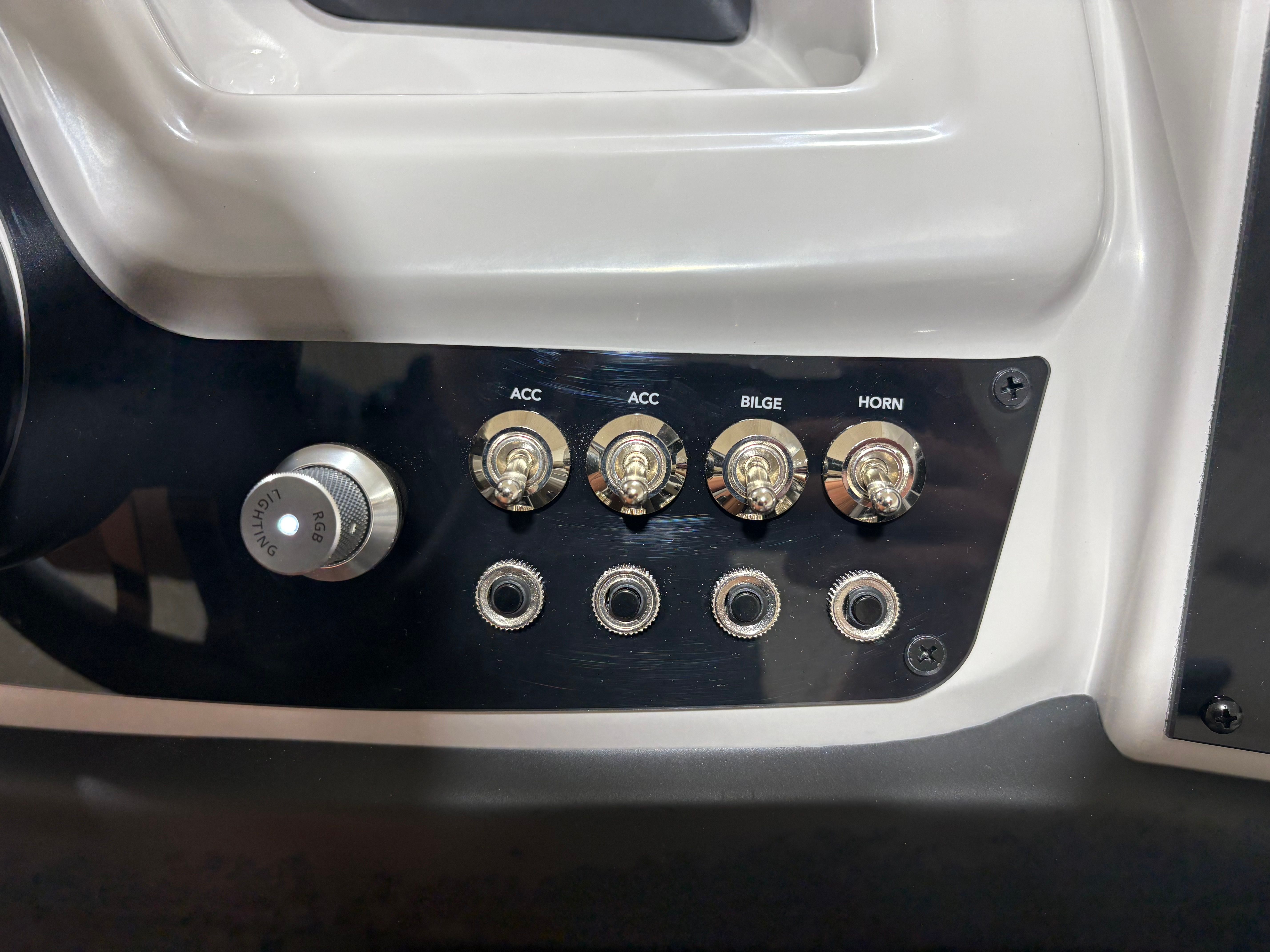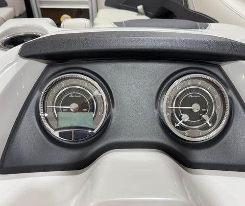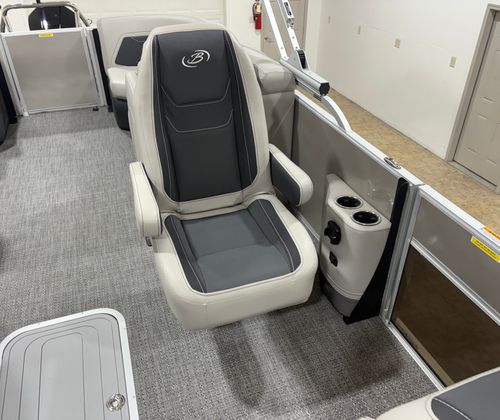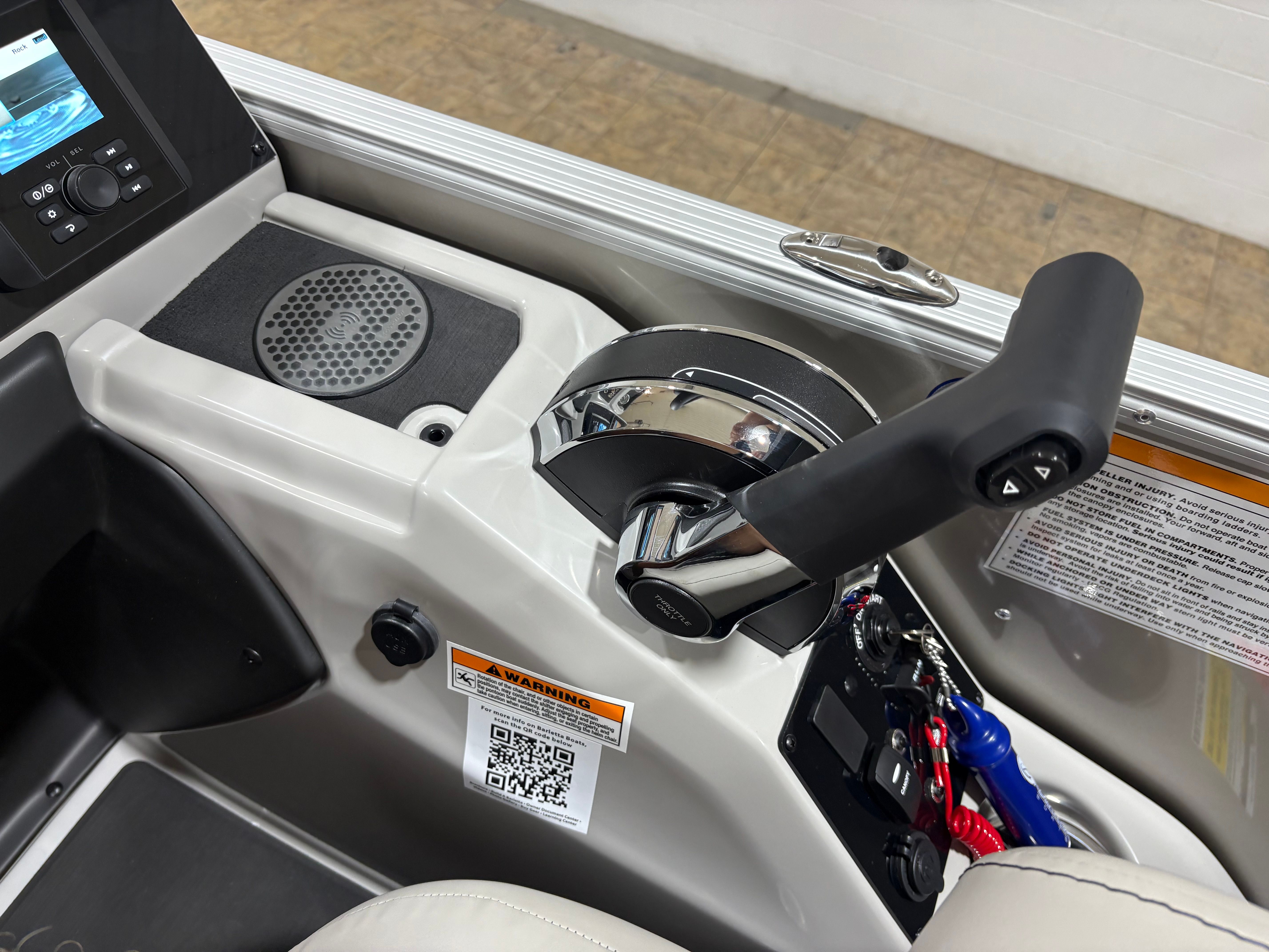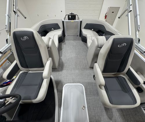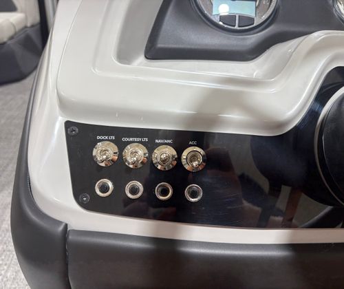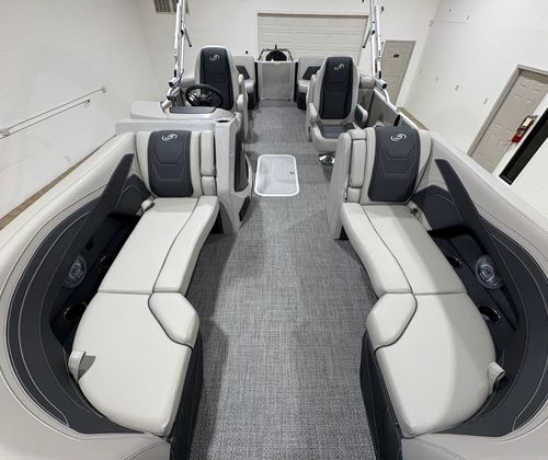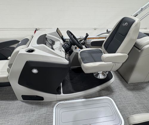 Step aboard and experience a world of comfort and innovation. The Cabrio C22QC boasts a Triple Toon Package with midship storage, maximizing both stability and onboard space. The Marquesan Gray furniture with Onyx accents provides a sophisticated and inviting atmosphere, while the Amore Gray flooring offers durability and easy maintenance. The exterior is adorned with a stainless steel flag pole featuring an American flag, adding a touch of patriotism and elegance.Lighting is a standout feature, with white underdeck and underwater exterior lighting that creates a captivating ambiance for evening cruises and dockside gatherings. The railskin color in Gray Moonstone, complemented by the Champagne accent, gives the boat a refined, modern look that’s sure to impress. Every detail, from the furniture to the flooring, has been thoughtfully selected to enhance your boating experience.