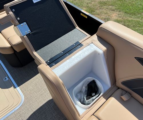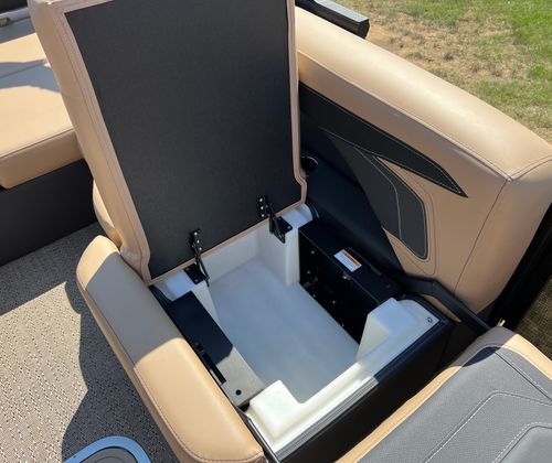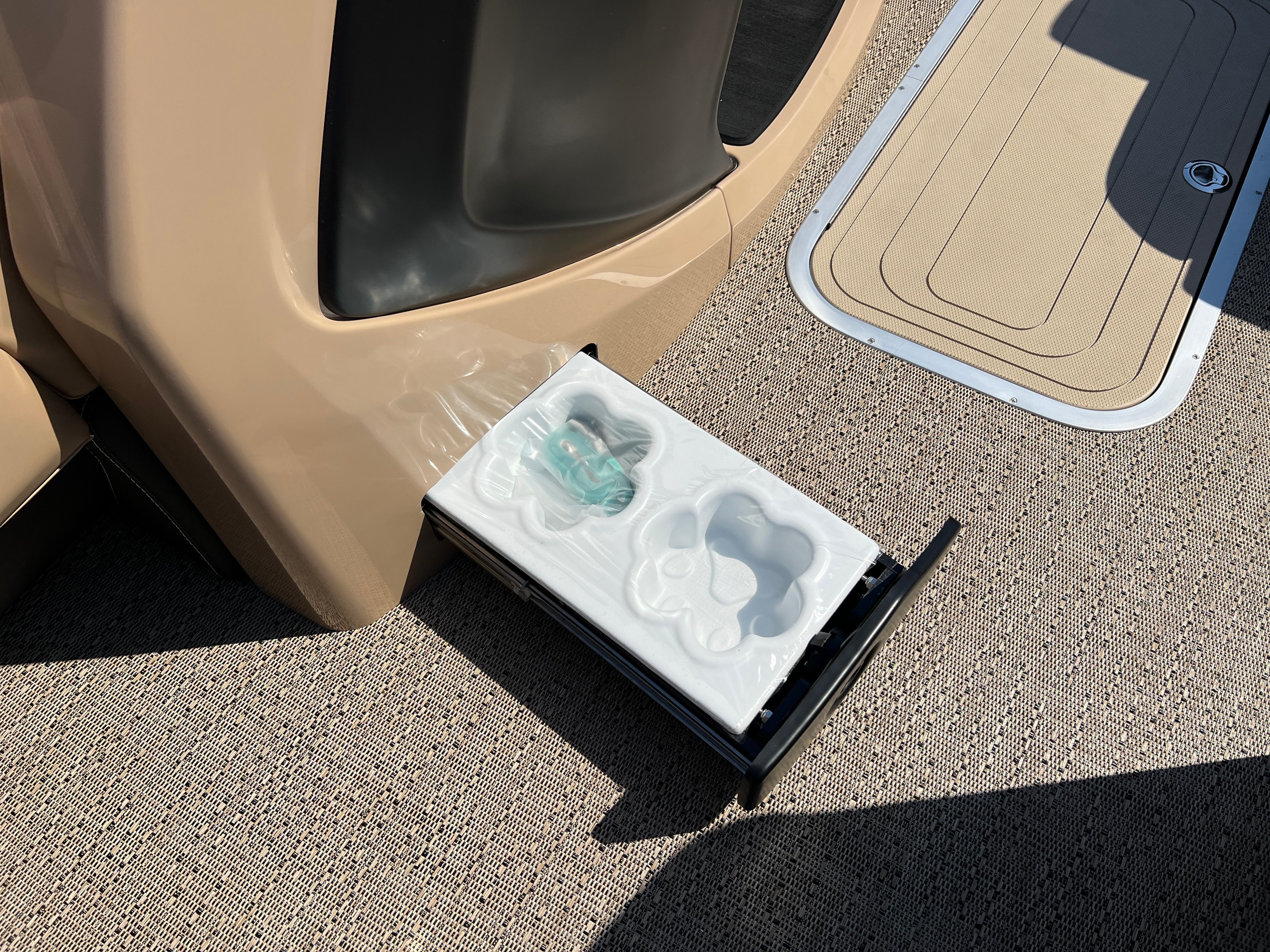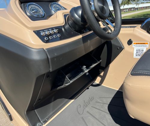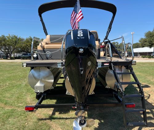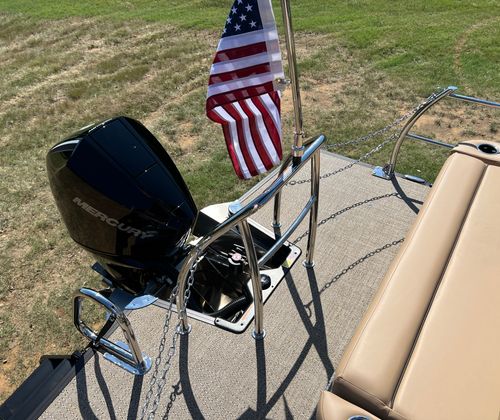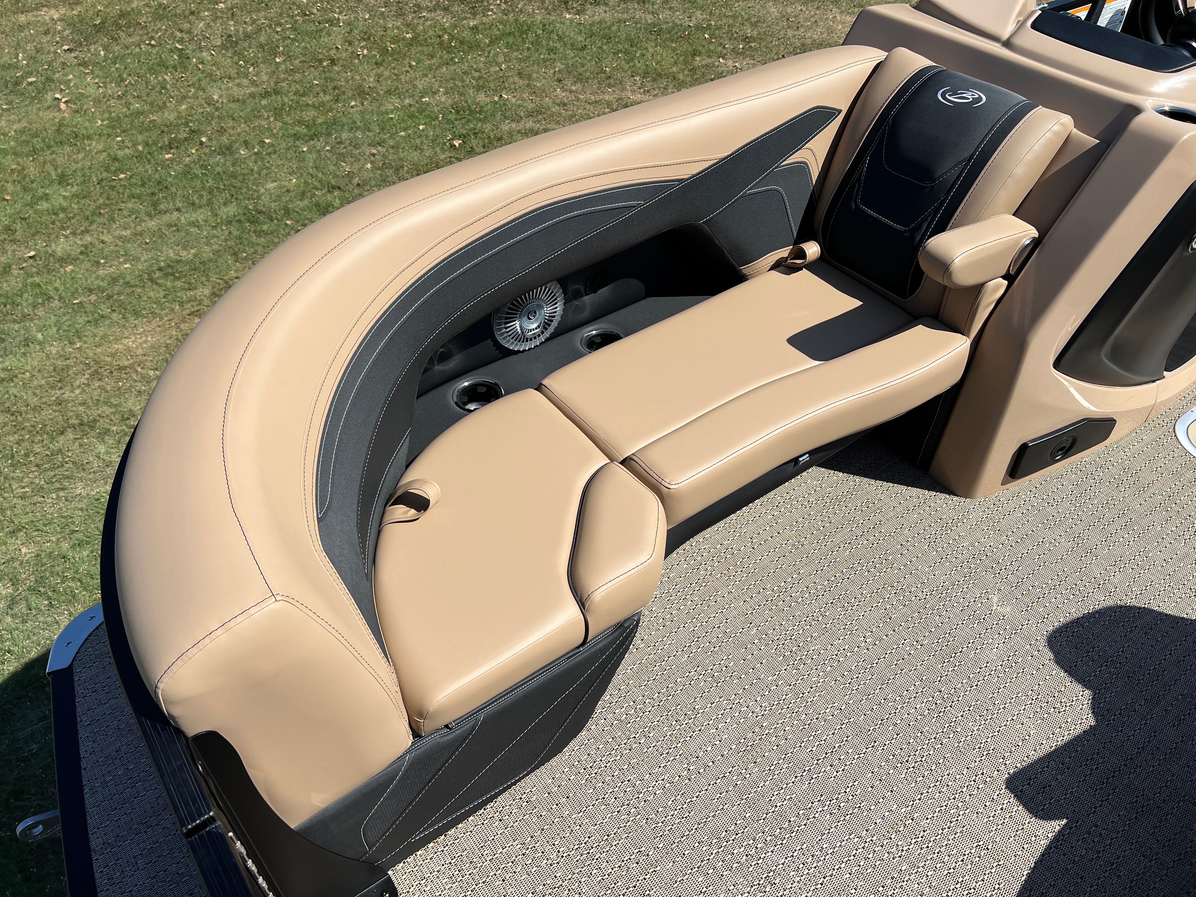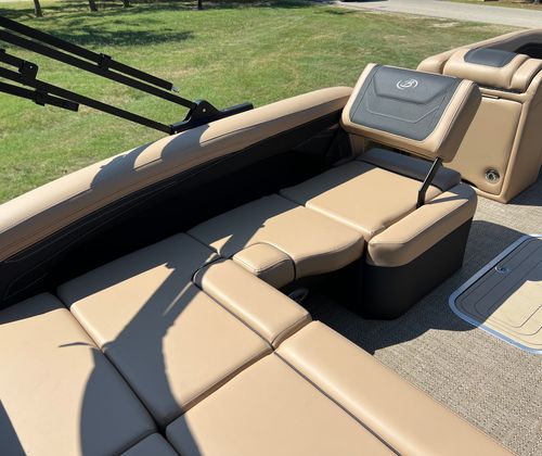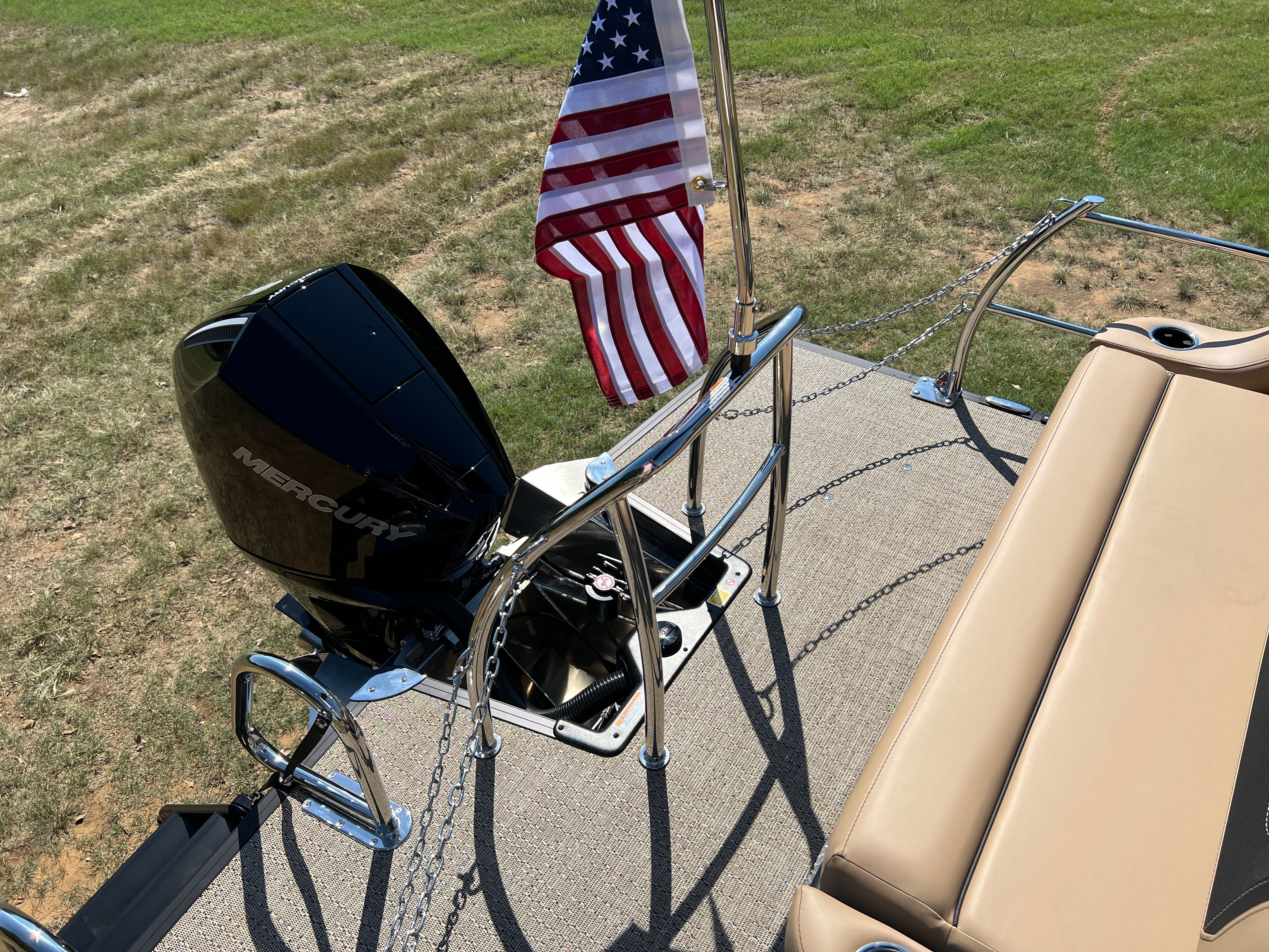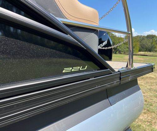 The Barletta Cabrio C22U is packed with premium features that set it apart from other pontoon boats for sale. The Black Diamond Railskin color and Blackout Package Cabrio give the boat a striking, modern look, while the Carmella Tan furniture with White Cord offers plush seating and a stylish aesthetic. The Amore Tan flooring is both elegant and easy to maintain, providing a perfect foundation for all your onboard activities.One of the standout features is the Triple Toon Package with midship storage, which enhances stability, performance, and storage capacity. This innovative design allows for smoother rides and more room for gear, making it ideal for longer outings or group adventures. The Metal Jacket Protectant adds an extra layer of durability, helping to keep your pontoon boat looking its best season after season. For a touch of patriotism and flair, the stainless steel flag pole with an American flag is a unique addition that’s sure to turn heads.