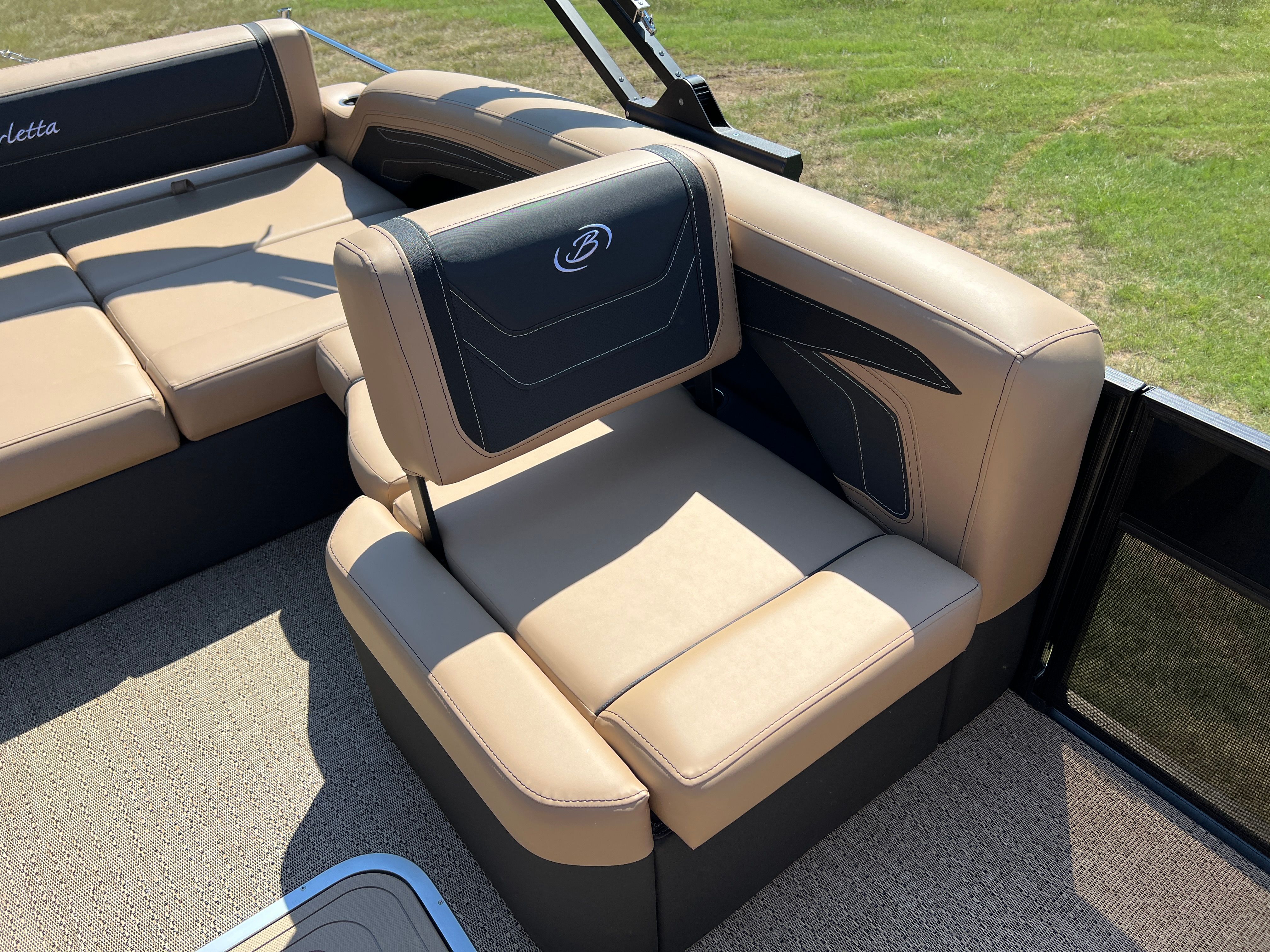 The 2026 Barletta Cabrio C22U Pontoon stretches an impressive 23.17 feet in length, offering ample space for family, friends, and all your favorite activities. Its sleek profile and contemporary design are immediately eye-catching, with the Black Diamond Railskin color and Blackout Package Cabrio adding a bold, sophisticated touch. The Carmella Tan furniture with White Cord accents and Amore Tan flooring create a warm, inviting atmosphere that’s perfect for lounging, entertaining, or simply soaking up the sun. As a new pontoon boat, the Cabrio C22U promises pristine condition and the latest in Barletta’s renowned craftsmanship.
