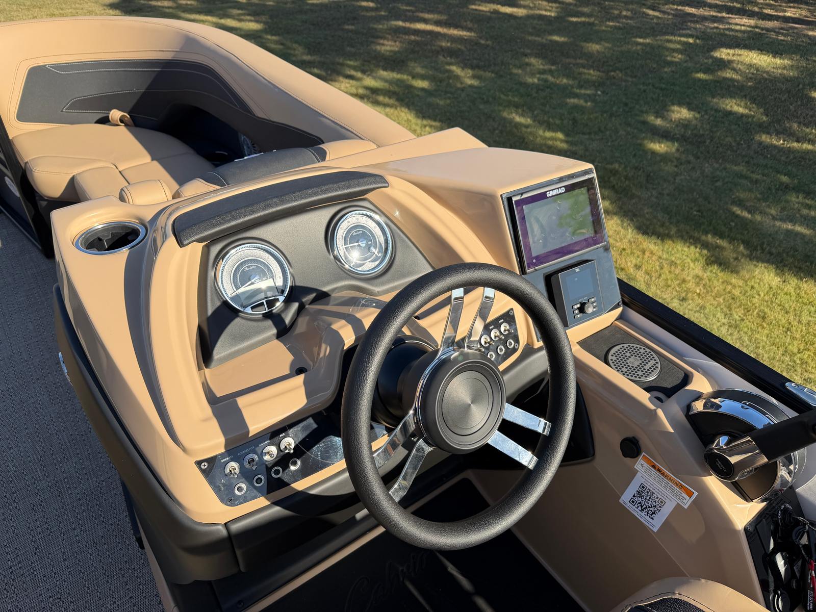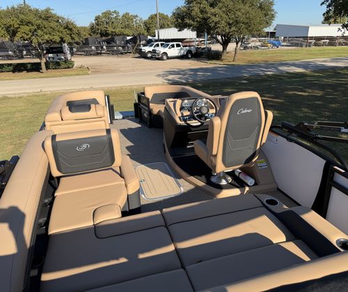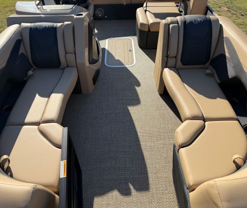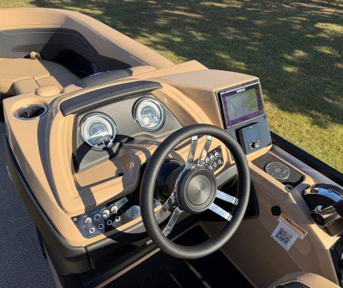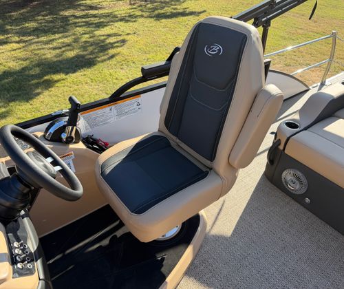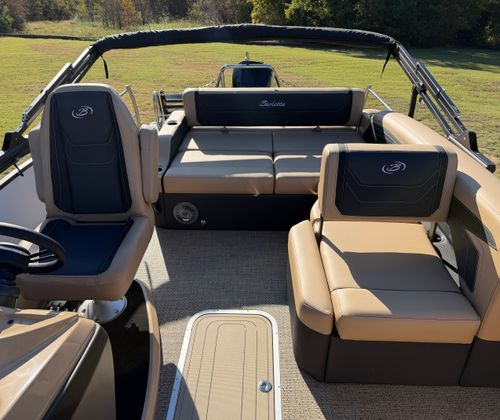The Barletta Cabrio C22U is packed with features that set it apart from other pontoon boats for sale. Its Railskin Color in Black Diamond, accented with Winter White, creates a striking visual appeal, while the Blackout Package Cabrio adds a touch of modern sophistication. The furniture is upholstered in Carmella Tan with Onyx accents, providing both comfort and elegance. The Amore Tan flooring is not only stylish but also practical, offering durability and easy maintenance.One of the standout features is the Triple Toon Package with midship storage, which maximizes onboard space and ensures you have plenty of room for gear, water toys, and personal items. The Metal Jacket Protectant helps preserve the boat’s exterior, keeping it looking new for years to come. Every detail, from the railskin packages to the furniture and flooring, has been carefully selected to create a welcoming and luxurious environment.