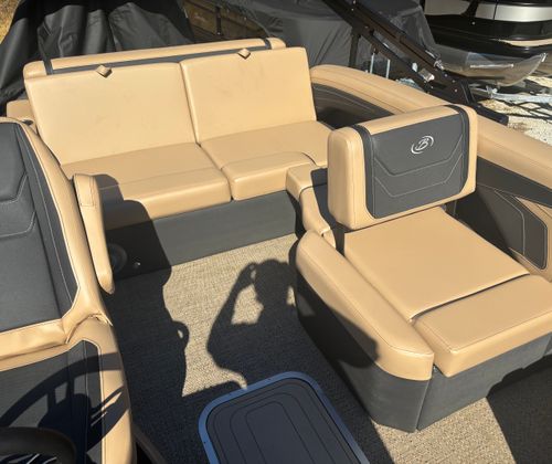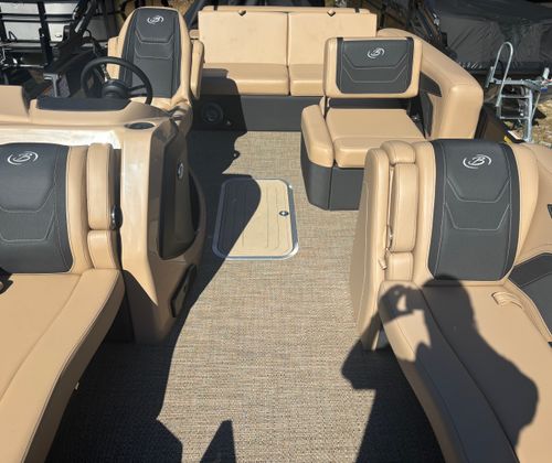 The 2026 Barletta Cabrio C22U is packed with special features that set it apart from other pontoon boats for sale. At the helm, you’ll find the Simrad 7" G07 XSR Chartplotter/Multifunction Display, providing advanced navigation and multifunction capabilities to keep you informed and in control. The interior RGB Lighting Package Cabrio creates a vibrant and customizable atmosphere, perfect for evening cruises or festive gatherings. The Amore Tan flooring adds a touch of elegance and comfort underfoot, while the exterior is adorned with a stainless steel flag pole and American flag, showcasing your pride and style.One of the standout features is the Triple Toon Package with Midship Storage - Cabrio, which enhances stability, buoyancy, and onboard storage capacity. This makes the Cabrio C22U not only a pleasure to drive but also practical for storing gear, water toys, and essentials for extended outings. The Black Diamond railskin color and Blackout Package Cabrio further elevate the boat’s aesthetic appeal, ensuring you turn heads wherever you go.