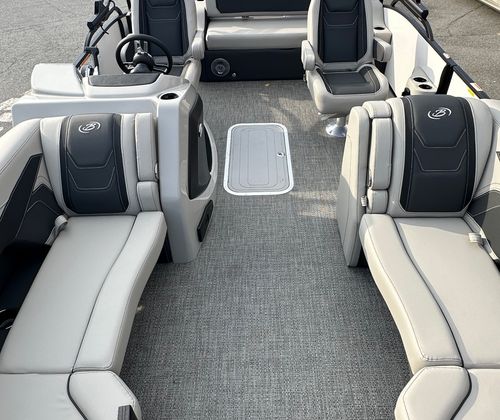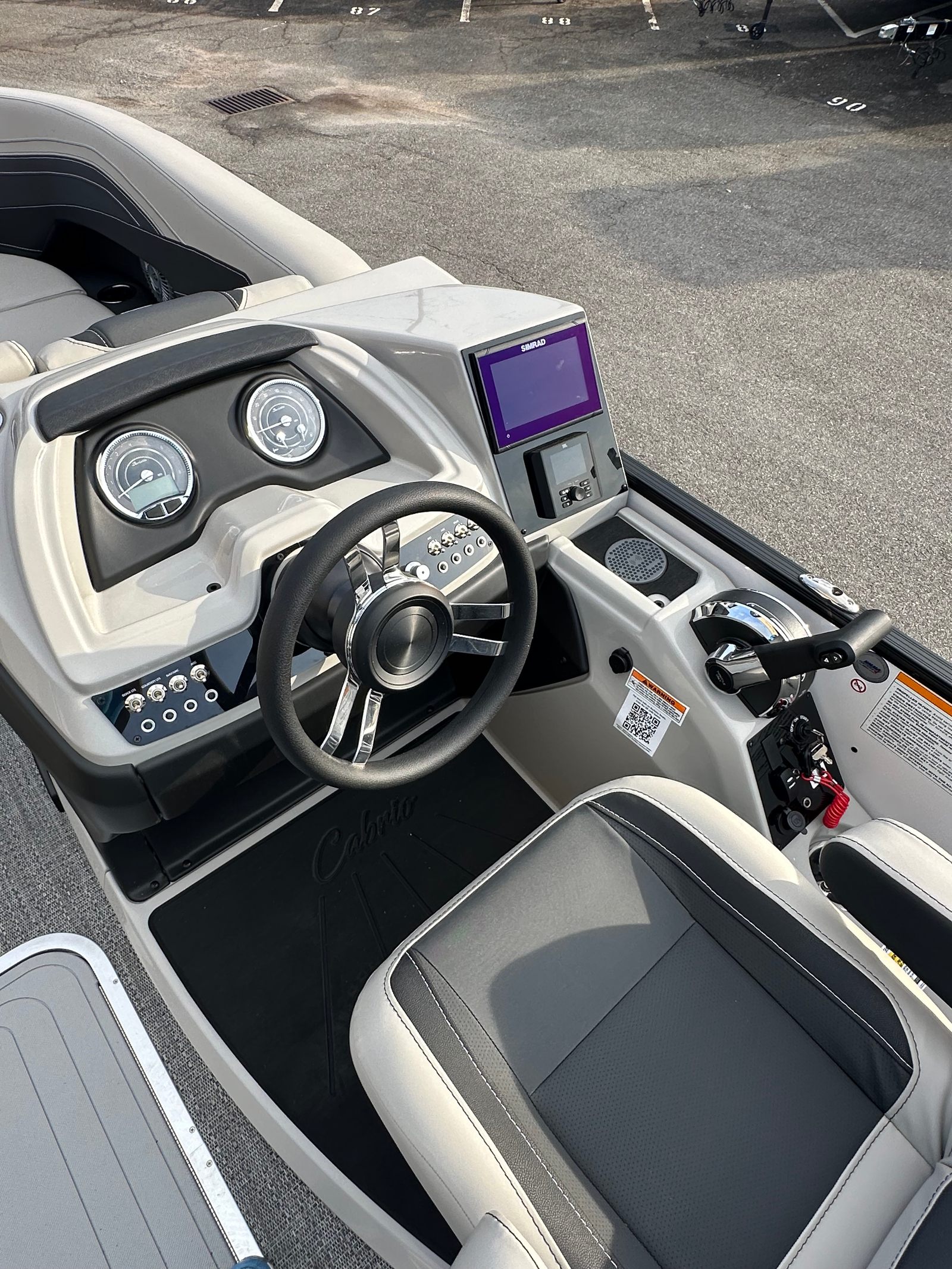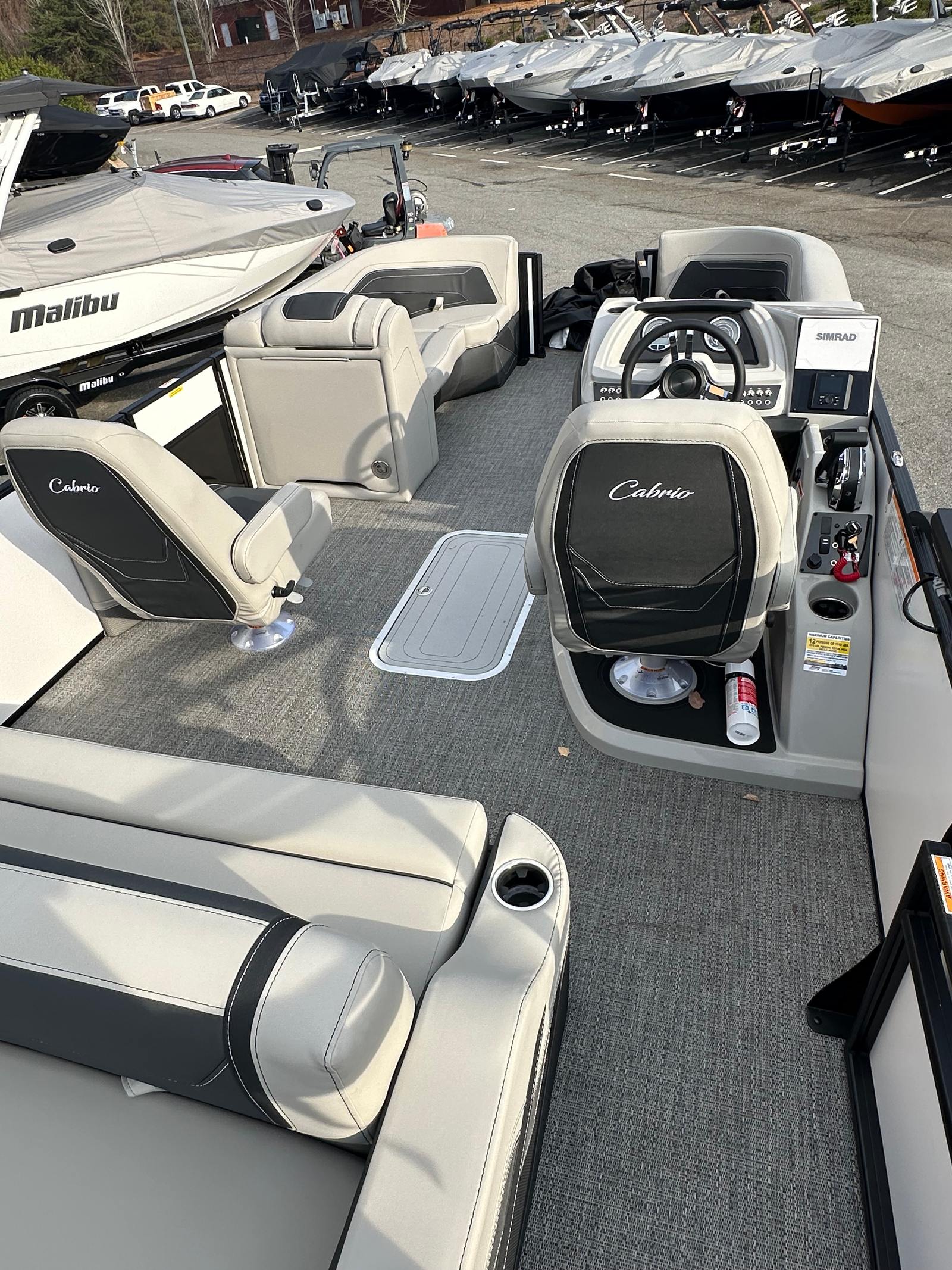 The Barletta Cabrio C22UC is designed with practicality in mind, making ownership as enjoyable as your time on the water. The midship storage compartment is perfect for stowing life jackets, fishing gear, or picnic supplies, keeping the deck clutter-free and organized. The power assist steering and stainless steel prop make docking and maneuvering effortless, even for less experienced boaters.Fuel efficiency is another key advantage, thanks to the advanced Mercury FourStroke engine, allowing you to spend more time cruising and less time refueling. The onboard battery charger with dual batteries provides peace of mind, ensuring your electronics and accessories are always ready for use.