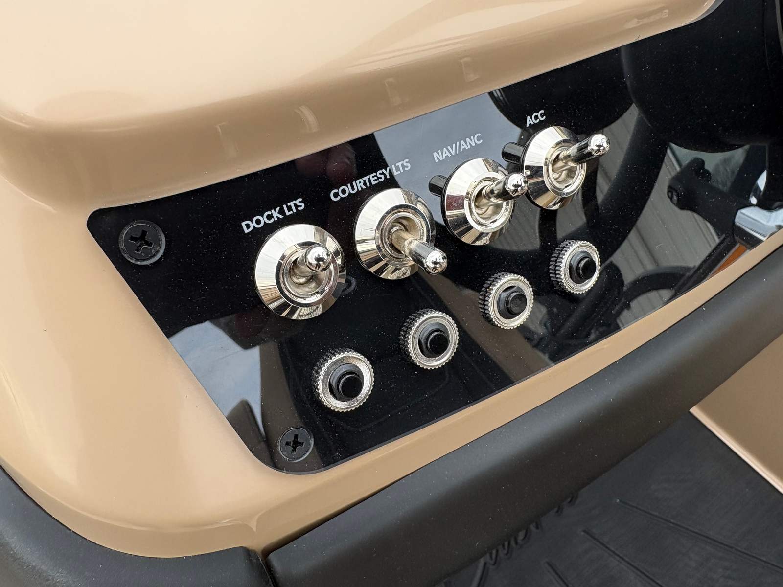 The Barletta Cabrio C22UC is loaded with premium features that elevate your boating experience. The Blackout Package Cabrio adds a bold, modern touch to the railskin, while the Black Diamond railskin color and Champagne accent create a sophisticated exterior profile. Inside, the Carmella Tan with Onyx furniture offers plush seating and a welcoming atmosphere, complemented by the Amore Tan flooring that is both stylish and easy to maintain.The Triple Toon Package with Midship Storage - Cabrio enhances stability and provides additional storage space, making it easy to stow away gear and supplies. The onboard battery charger supports two batteries, ensuring you have reliable power for all your onboard electronics and accessories. Every detail of the Cabrio C22UC is thoughtfully designed to maximize comfort, convenience, and enjoyment on the water.