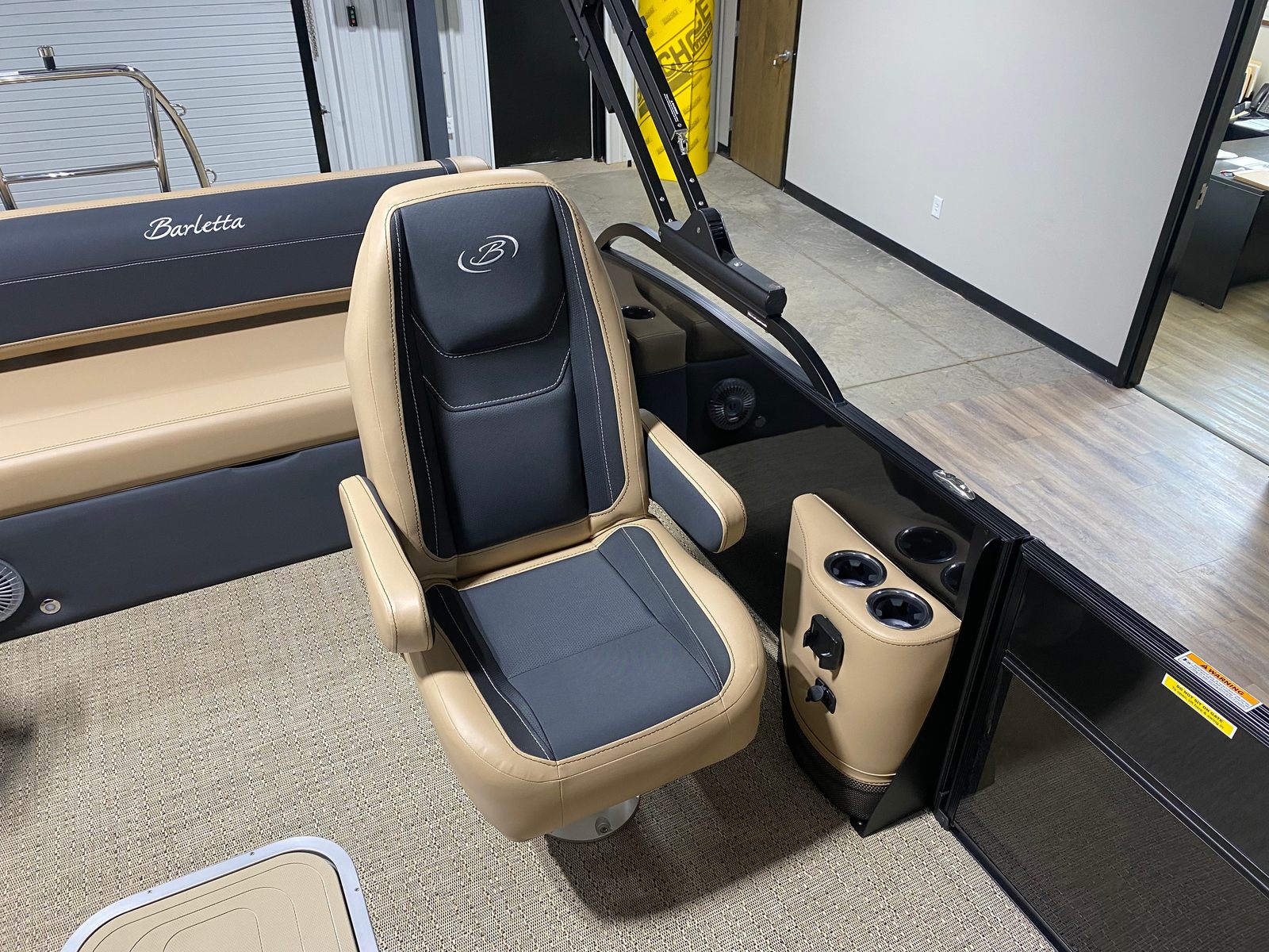 The 2026 Barletta Cabrio C22UC Pontoon stands out as a premier option in the world of recreational boating. Measuring an impressive 23.17 feet in length, this new pontoon offers ample space for family gatherings, social outings, or peaceful escapes on the lake. The Cabrio C22UC’s sleek profile is enhanced by the Black Diamond Railskin color and the Blackout Package Cabrio, giving it a sophisticated and modern look that turns heads wherever you go. The Carmella Tan with Onyx furniture and Amore Tan flooring create a warm, inviting atmosphere, making every moment on board feel like a luxury retreat.