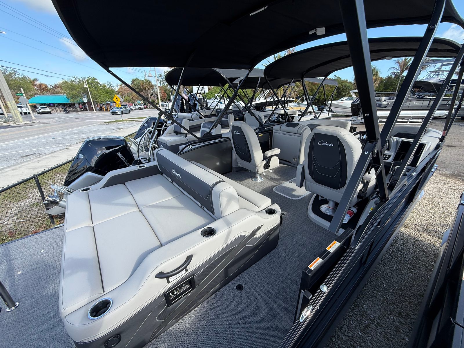 The 2026 Barletta Cabrio C22UC is loaded with features that set it apart from other pontoon boats for sale. The striking Railskin Color in Blue Sapphire, accented by Gray Moonstone, gives this pontoon a sophisticated and eye-catching appearance. The Blackout Package Cabrio adds a bold, modern touch, while the Marquesan Gray with Onyx furniture offers both comfort and elegance. The Amore Gray flooring is not only stylish but also practical, providing a durable and easy-to-clean surface for all your onboard activities.This model is part of the Coastal Edition Cabrio, designed to withstand the unique challenges of coastal environments, ensuring longevity and resilience. The Triple Toon Package with midship storage enhances both performance and convenience, offering extra space for gear and water toys. The Mercury Digital DTS Pre-Rig and power assist steering further elevate the driving experience, making this Barletta boat for sale a true standout in its class.