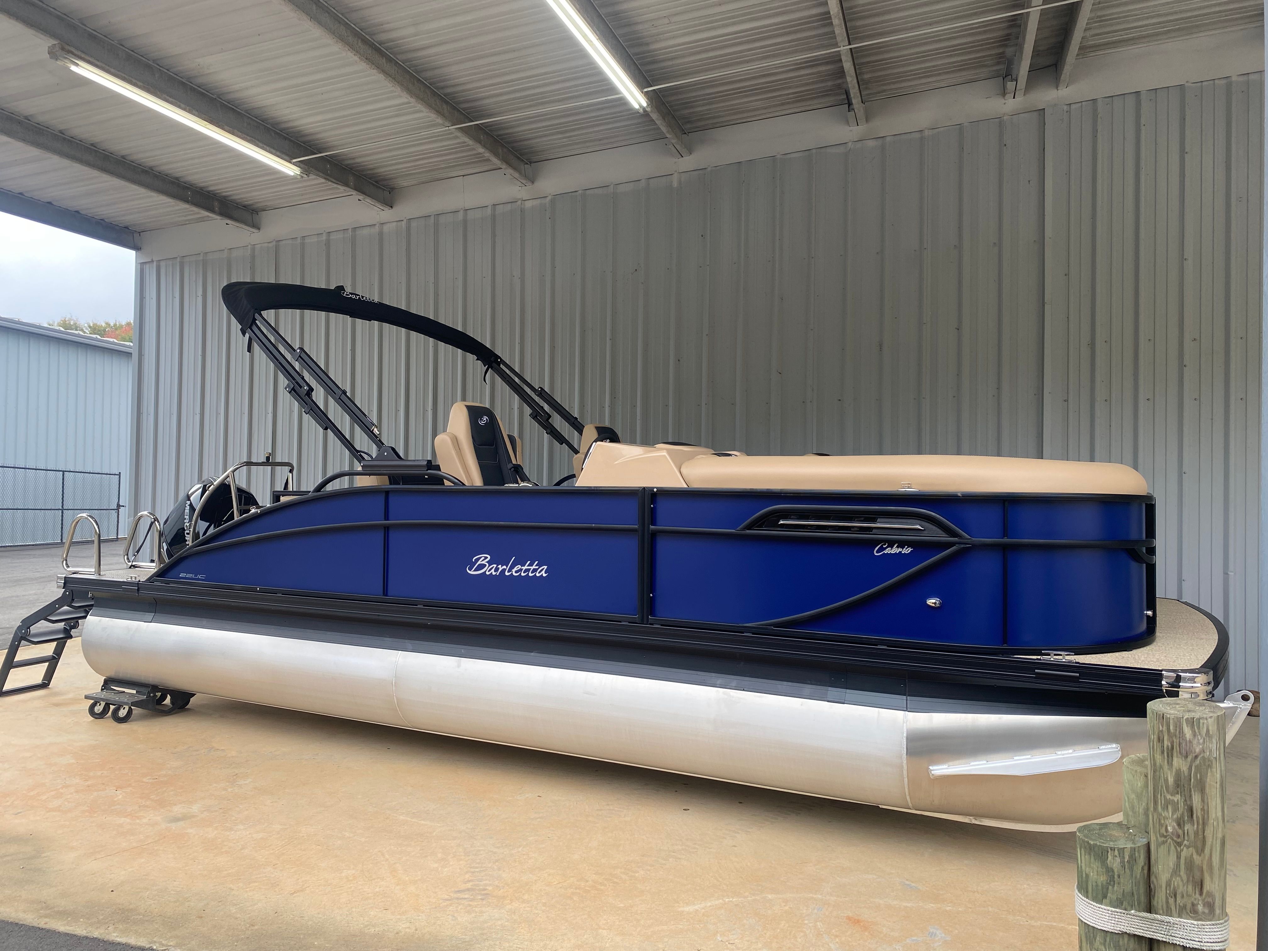 The 2026 Barletta Cabrio C22UC is loaded with features that set it apart from other pontoon boats for sale. The striking Bohemian Blue railskin, complemented by the Blackout Package Cabrio, gives this pontoon a modern and sophisticated look that turns heads wherever you go. Inside, the Carmella Tan furniture with Onyx accents provides a luxurious and inviting atmosphere, while the Amore Tan flooring adds a touch of elegance and comfort underfoot.One of the standout features is the Triple Toon Package with midship storage, offering enhanced stability and additional space for all your gear. The stainless steel flag pole with an American flag adds a patriotic flair to your outings, while the interior RGB lighting package creates a customizable ambiance for evening cruises and celebrations. The rigging includes a drop ship engine (no prop), ensuring that the boat is ready for your personal touch and customization.