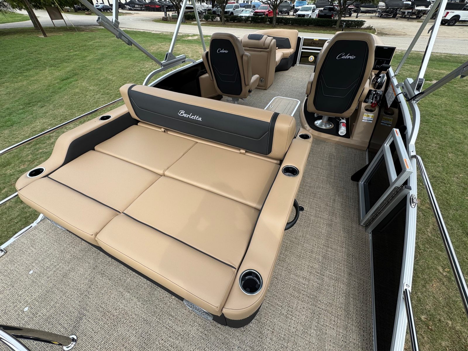 The 2026 Barletta Cabrio C22UC pontoon measures an impressive 23.17 feet in length, offering ample space for relaxation, entertainment, and adventure. With its sleek Railskin Color in Black Diamond, this pontoon boat commands attention at the dock and on the water. The Carmella Tan furniture with Onyx accents creates a sophisticated and inviting atmosphere, while the Amore Tan flooring adds warmth and comfort underfoot. Every detail of this Barletta boat for sale has been thoughtfully designed to maximize enjoyment and convenience, making it the perfect vessel for those who appreciate both aesthetics and functionality.