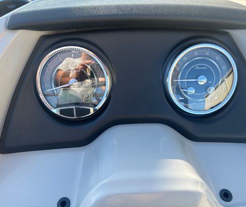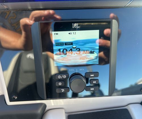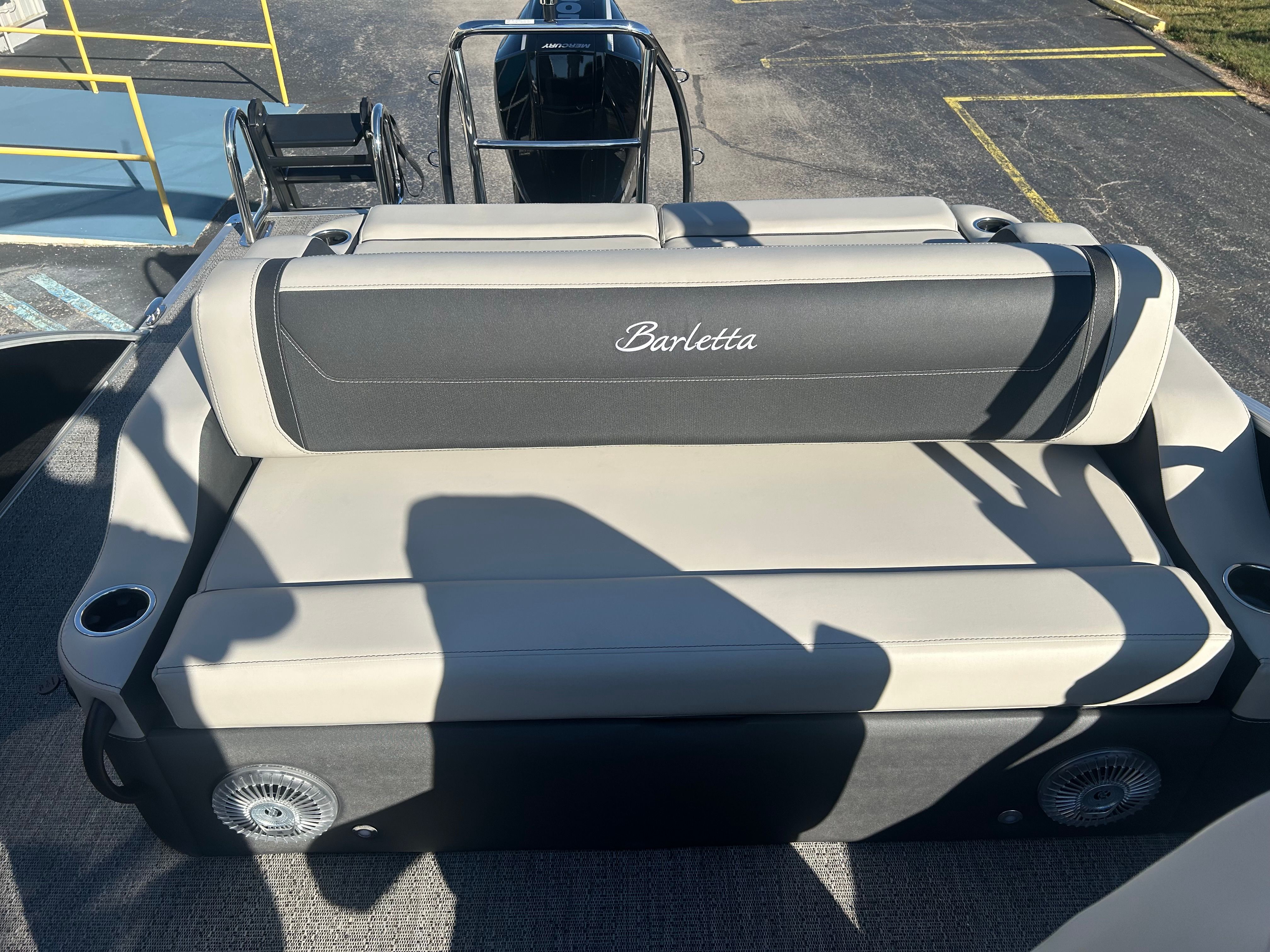 The Barletta Cabrio C22UC is loaded with features that elevate your boating experience. The Triple Toon Package with midship storage maximizes stability and buoyancy, allowing for a smoother ride even in choppier conditions. The midship storage compartment provides ample space for stowing gear, water toys, and essentials, keeping the deck clutter-free and organized.The interior of the Cabrio C22UC is a showcase of luxury and functionality. The Marquesan Gray with Onyx furniture offers plush seating and a contemporary look, while the Amore Gray flooring is both stylish and easy to maintain. The interior RGB lighting package creates a customizable ambiance, perfect for evening cruises or entertaining guests after sunset.At the helm, the Simrad 7" G07 XSR Chartplotter/Multifunction Display puts advanced navigation and system controls at your fingertips. This intuitive display allows you to monitor your route, track your speed, and access vital boat information with ease, ensuring a safe and enjoyable journey every time.The exterior is just as impressive, featuring a stainless steel flag pole with an American flag, adding a patriotic touch and a sense of pride to your boating adventures.
