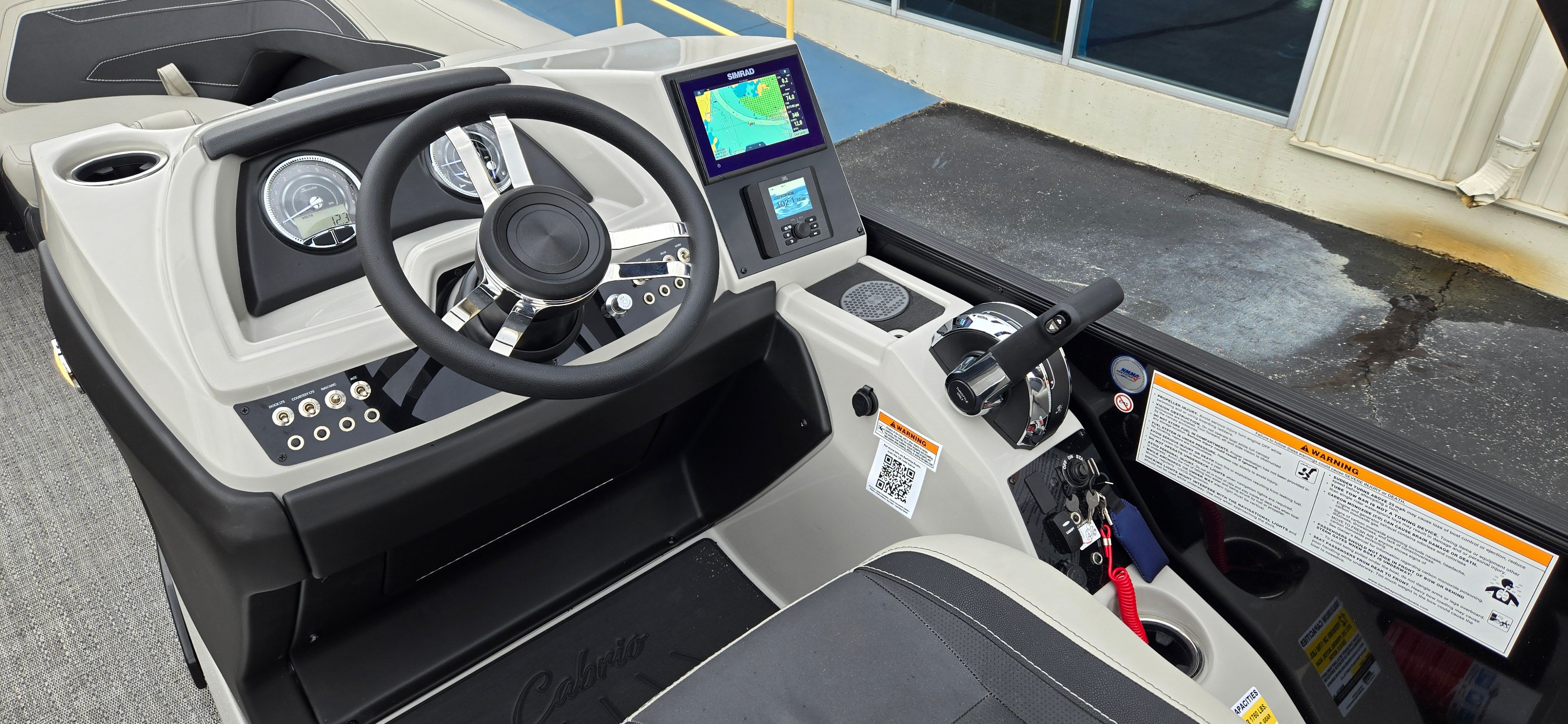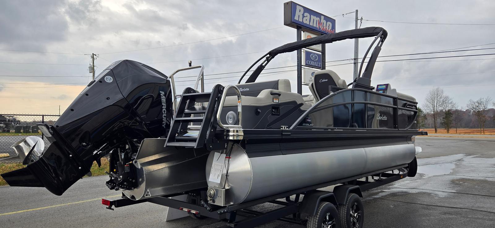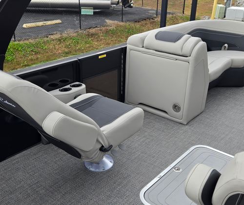 The Barletta Cabrio C22UC is as practical as it is stylish. The midship storage included in the Triple Toon Package makes it easy to stow away life jackets, fishing gear, and other essentials, keeping your boat tidy and organized. The power assist steering simplifies docking and maneuvering, reducing stress and making every outing more enjoyable. The efficient Mercury FourStroke engine is designed for reliability and fuel economy, allowing you to spend more time on the water and less time refueling. The Sport Bimini provides essential shade, protecting you and your guests from the sun’s rays during long days on the lake or river. Every detail of this Barletta boat for sale is crafted to enhance your boating experience, from the durable flooring to the stylish railskin accents.