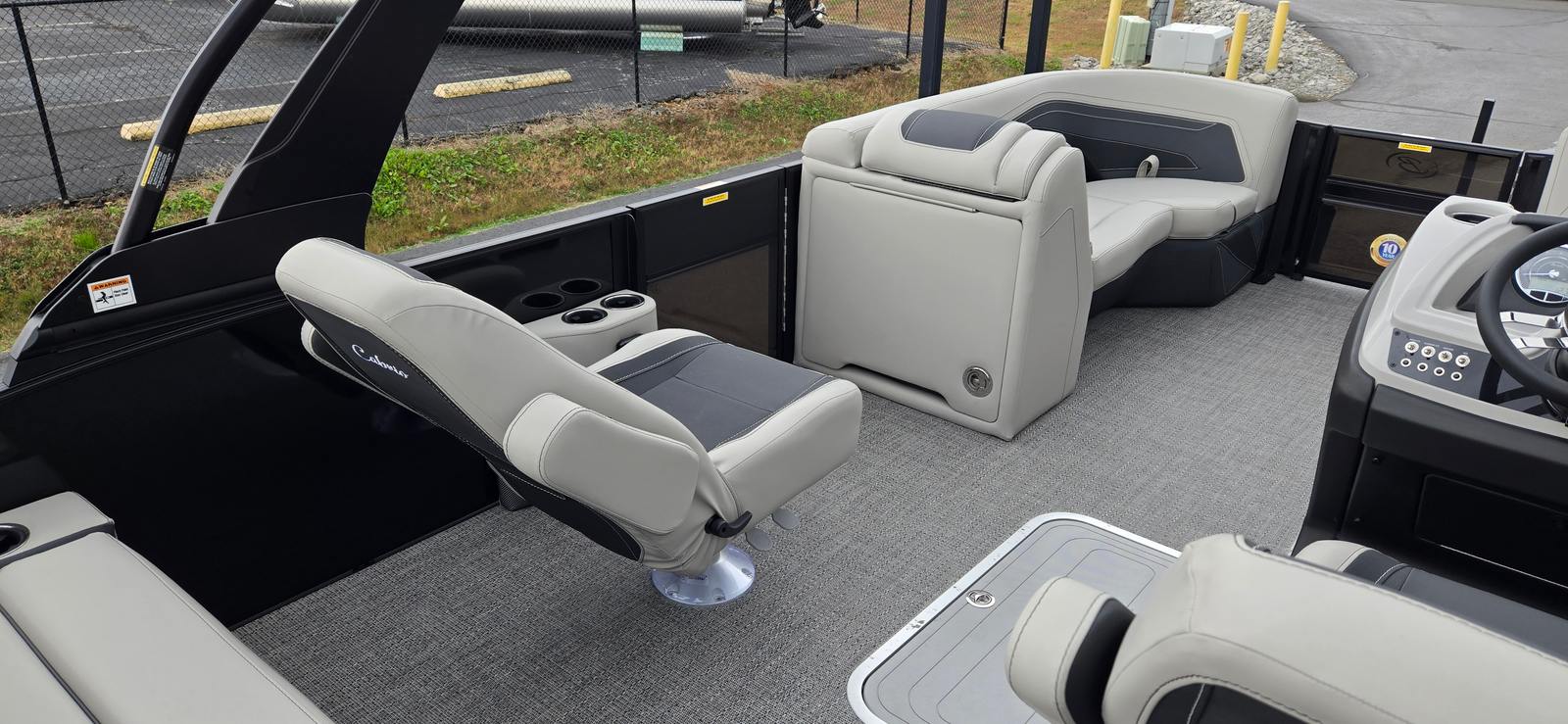 Powering the Barletta Cabrio C22UC is a robust Mercury (M) 200L FourStroke engine, delivering an impressive 200 horsepower for smooth and responsive handling. This single-engine setup is expertly rigged with a stainless steel prop, ensuring optimal efficiency and durability. The Mercury mechanical pre-rig with power assist enhances maneuverability, making docking and navigating tight spaces effortless. Whether you’re cruising at a leisurely pace or picking up speed for water sports, the Cabrio C22UC offers reliable performance and exhilarating acceleration, making it a top choice for those seeking a pontoon boat for sale with outstanding power and control.