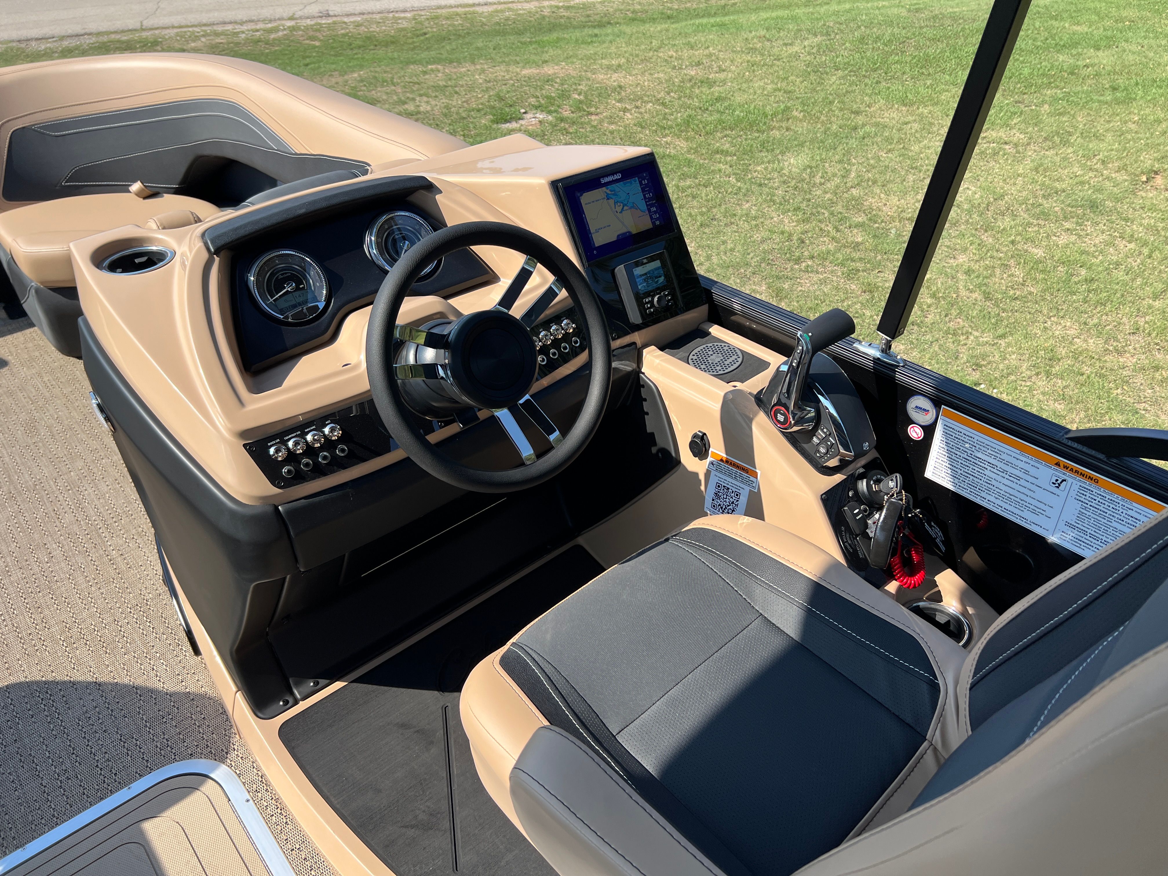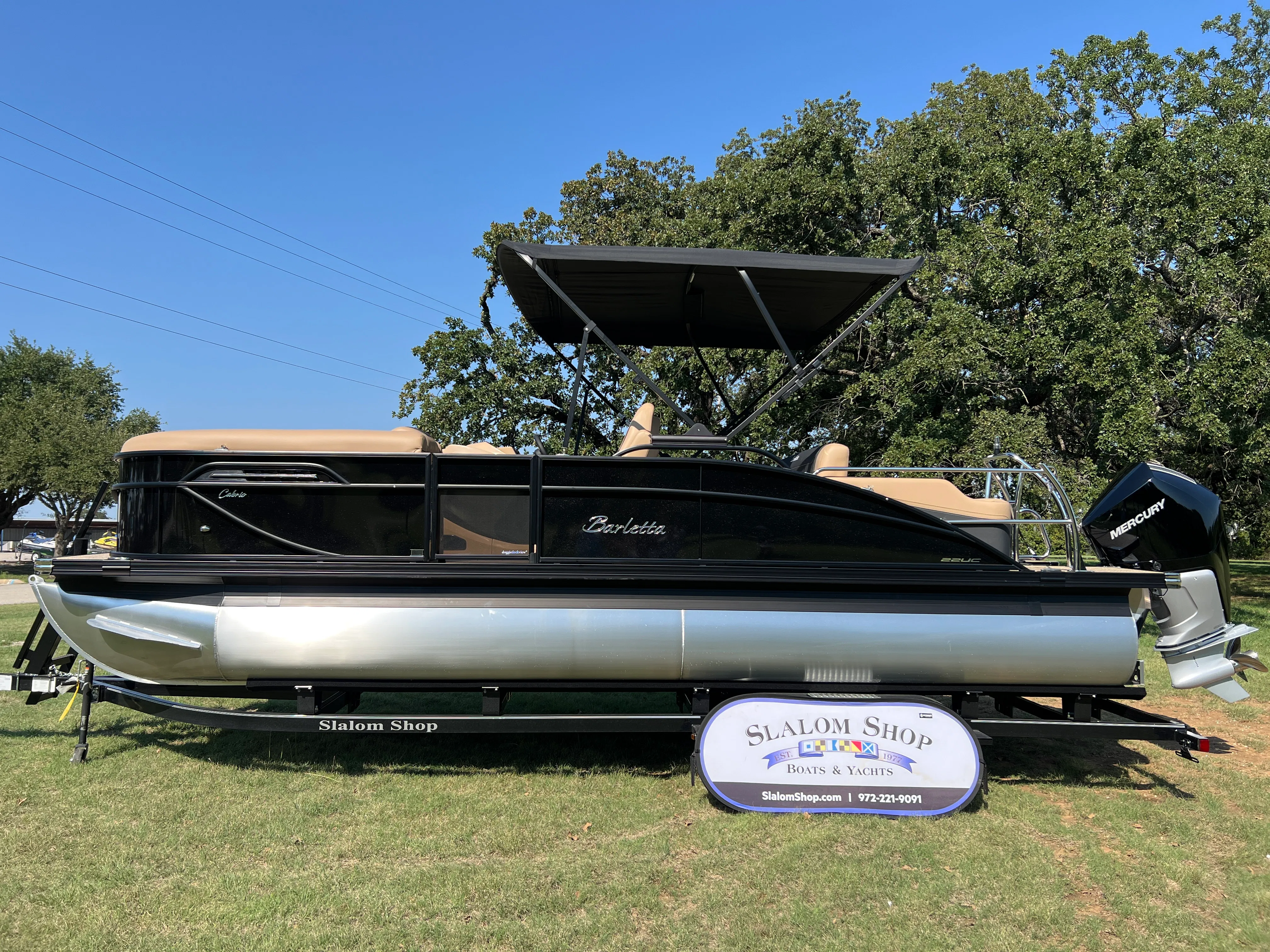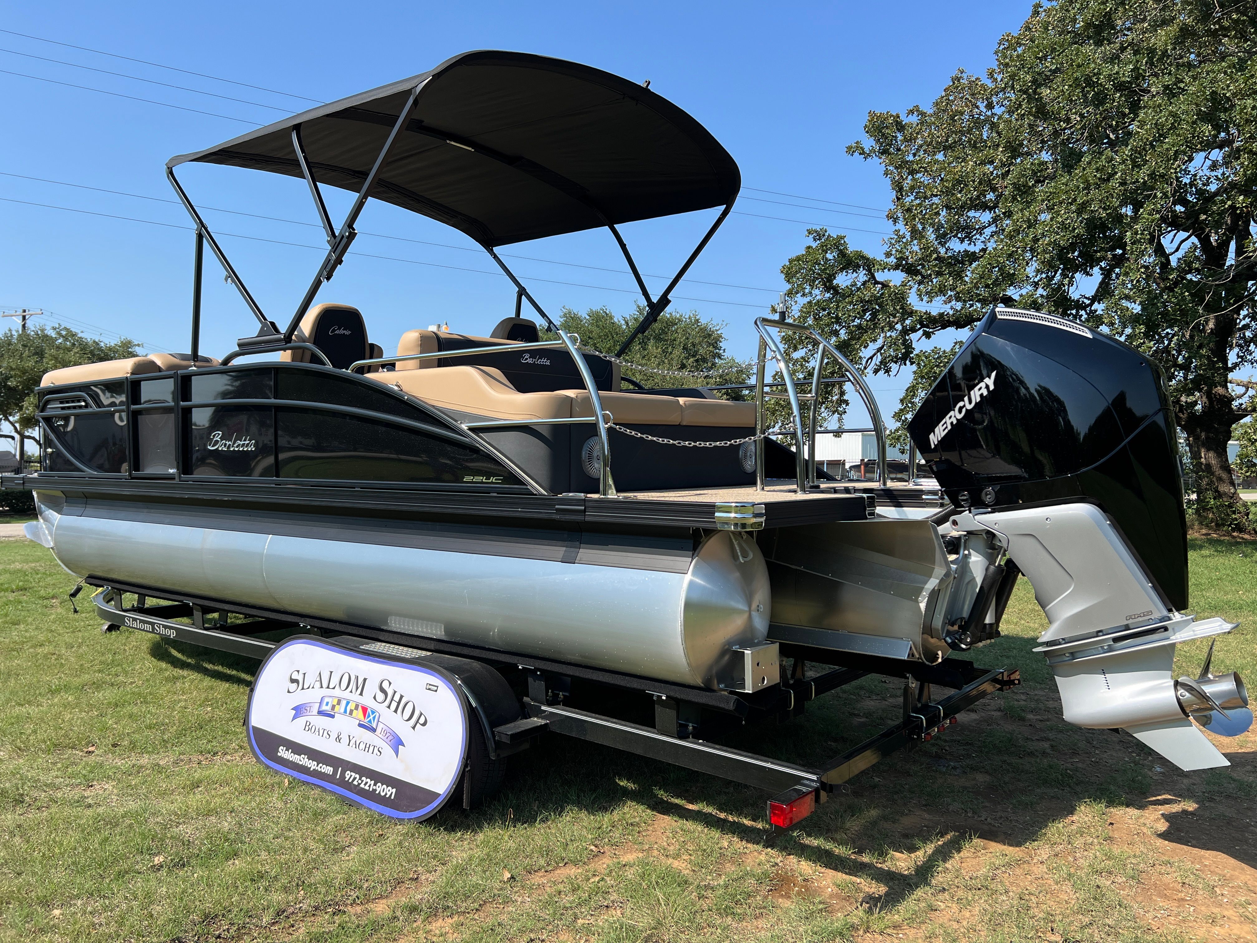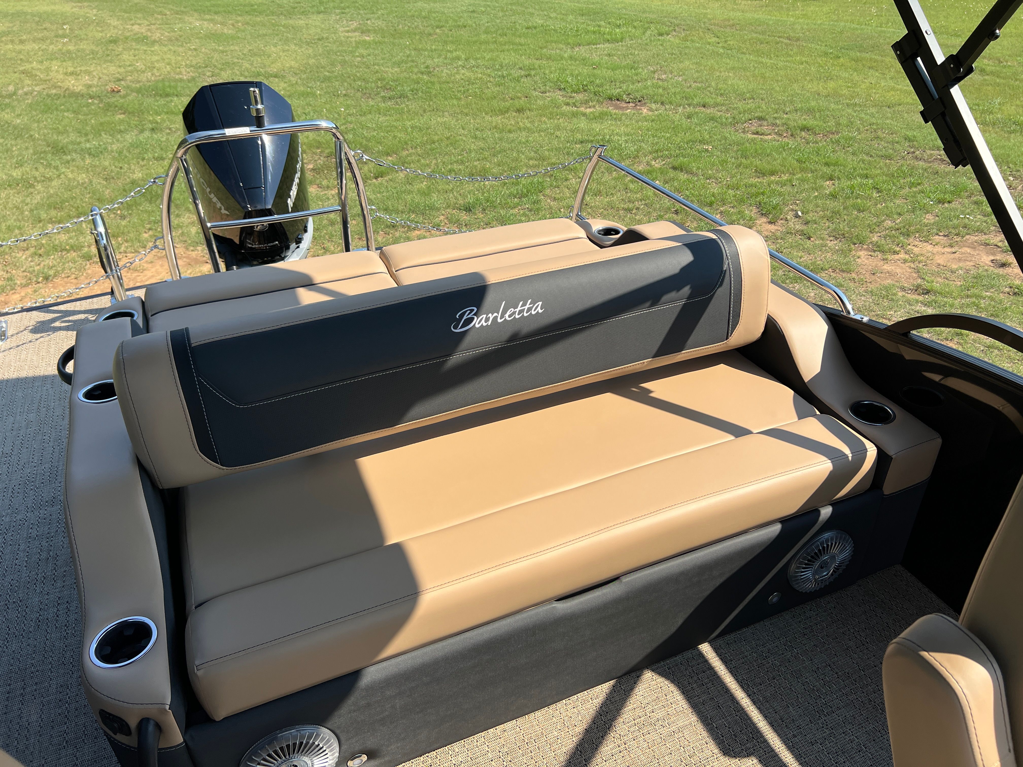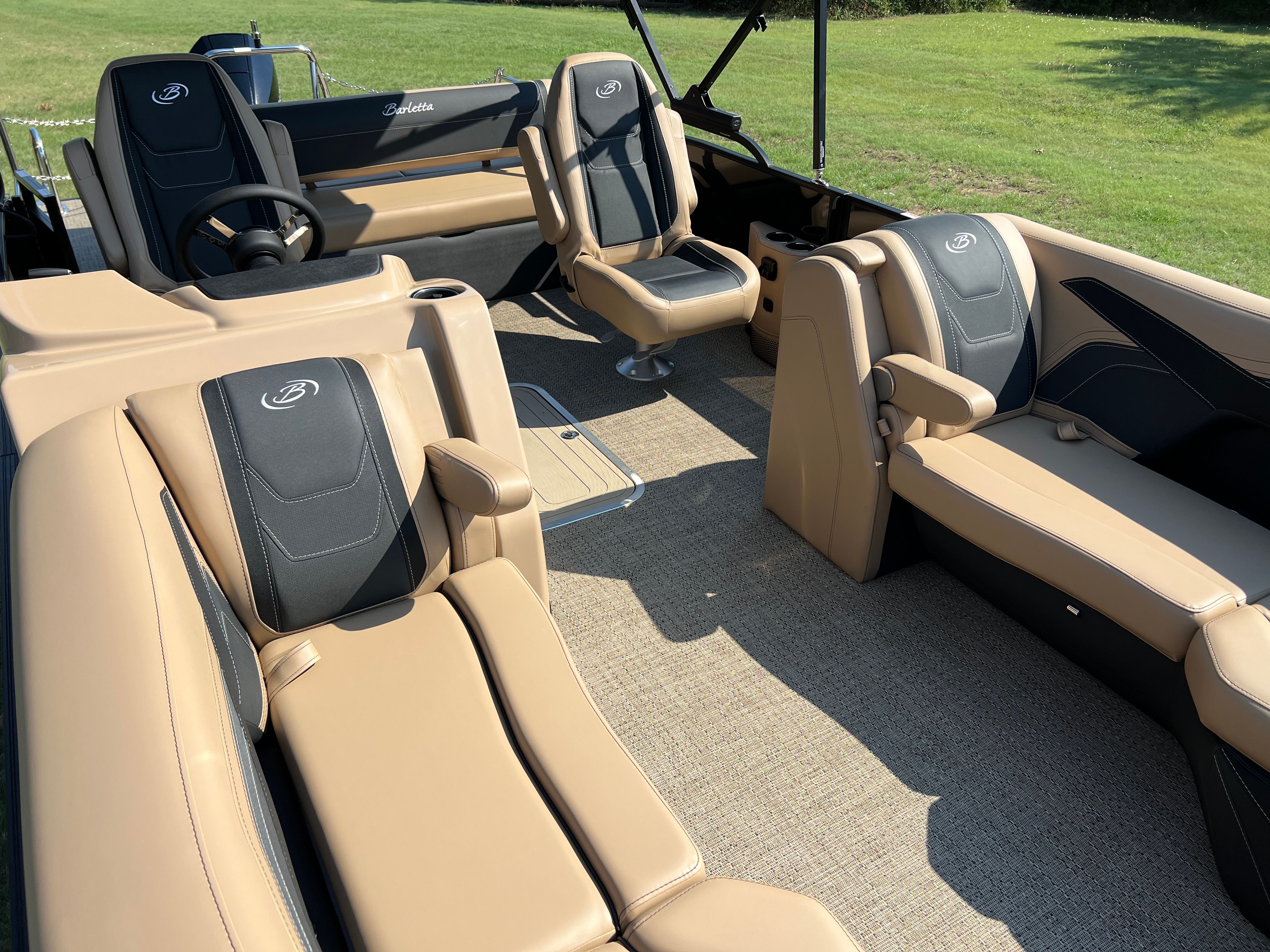 In summary, the 2026 Barletta Cabrio C22UC is a top-tier pontoon boat for sale that combines style, performance, and innovation in one remarkable package. With its striking Black Diamond Railskin color, Blackout Package Cabrio, luxurious Carmella Tan with Onyx furniture, and Amore Tan flooring, this boat is as beautiful as it is functional. The Triple Toon Package with midship storage, Mercury 250L Verado V8 engine, digital gauges, and Simrad chartplotter ensure that you have everything you need for safe, enjoyable, and hassle-free boating. Whether you’re looking for a Barletta boat for sale to elevate your family outings, entertain friends, or explore new horizons, the Cabrio C22UC is ready to exceed your expectations. Don’t miss your chance to own this exceptional pontoon – contact your local dealer today to learn more and start your next adventure on the water!