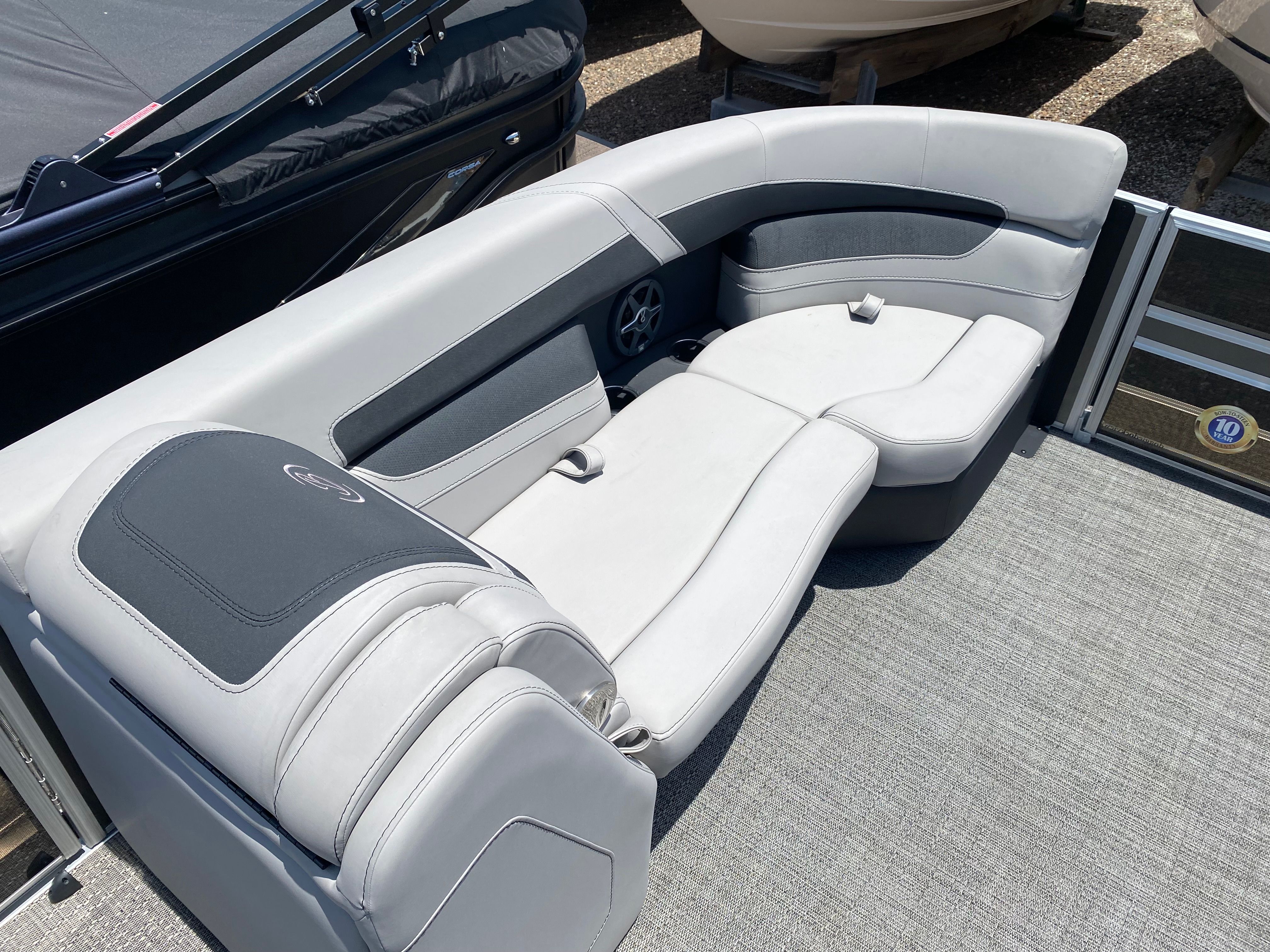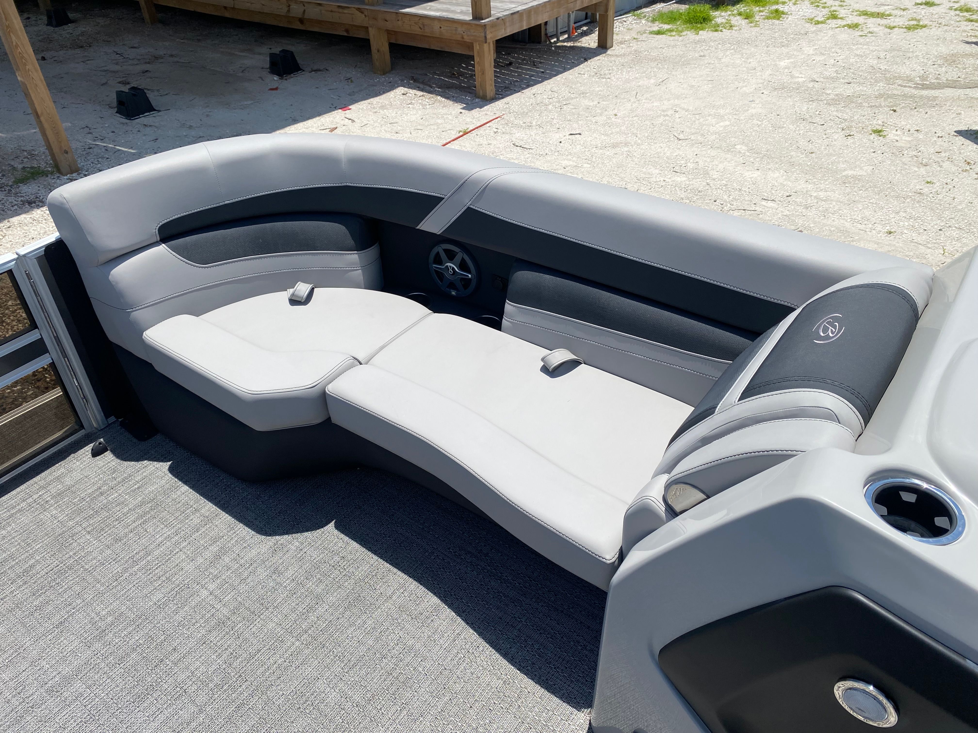 Step aboard the Barletta Cabrio C22UC and discover a world of premium features designed to enhance your boating experience. The interior RGB Lighting Package Cabrio creates a vibrant and customizable atmosphere, perfect for evening gatherings or lively celebrations. The GUEST CHARGEPRO 20A ensures your onboard electronics stay powered, so you can enjoy your favorite devices without worry.The Triple Toon Package with midship storage maximizes stability and provides extra space for gear, water toys, and essentials, making it easy to keep the deck clutter-free. The stainless steel flag pole with an American flag adds a touch of patriotic flair, while the exterior lighting – including white underdeck and underwater lights – enhances safety and style during nighttime excursions.The Gray Moonstone railskin color gives the Cabrio C22UC a modern, sophisticated look that stands out on any waterway. With Yamaha mechanical rigging and a stainless steel prop, you can count on reliable performance and long-lasting durability. Every detail is thoughtfully designed to deliver comfort, convenience, and a touch of luxury.