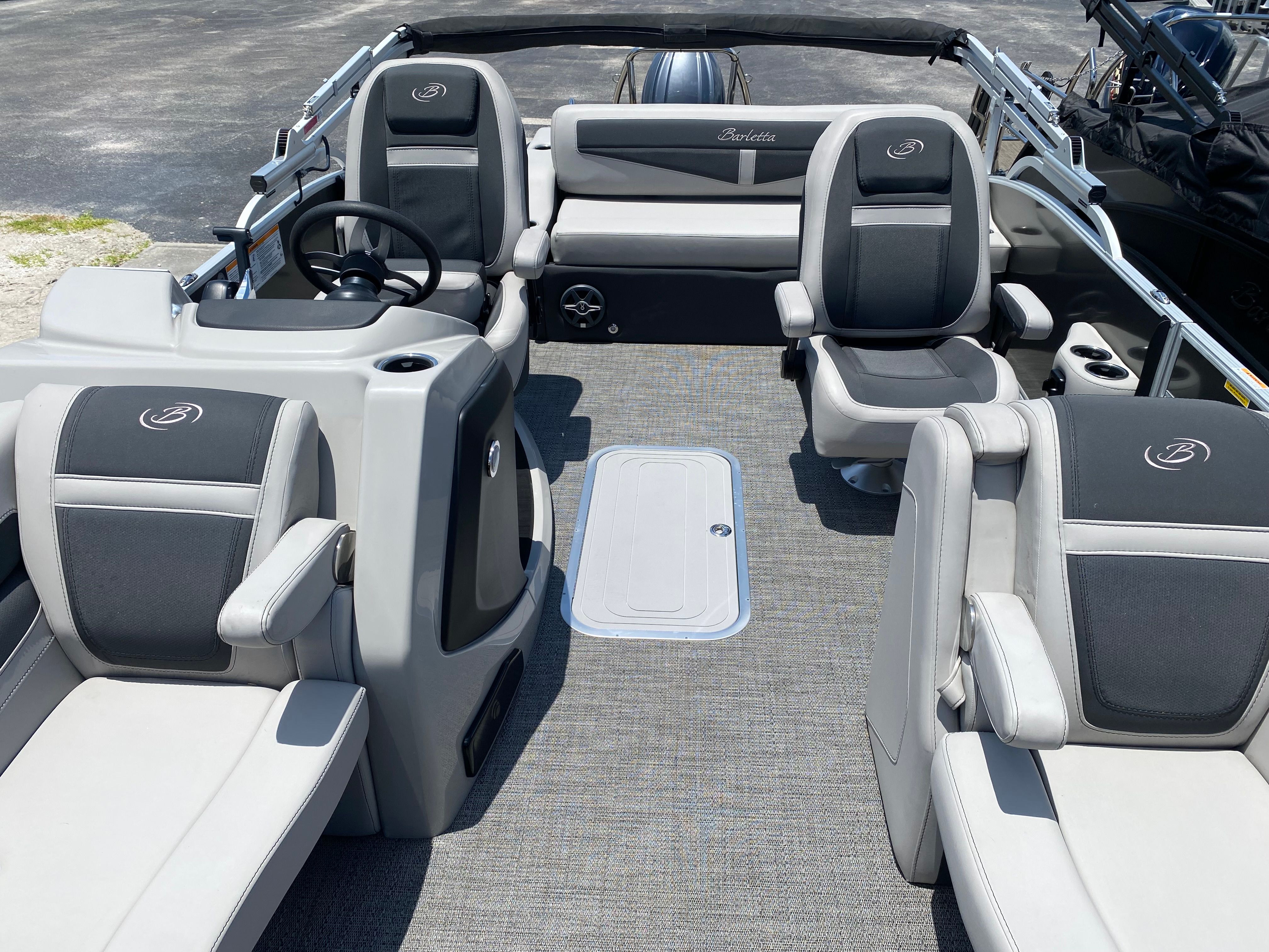 Owning the Barletta Cabrio C22UC pontoon boat means embracing a lifestyle of fun, relaxation, and adventure. The spacious deck layout invites you to stretch out and unwind, while plush seating ensures everyone travels in comfort. The customizable interior lighting sets the mood for any occasion, from lively parties to peaceful sunset cruises.The triple toon design provides exceptional stability, making it easy to move around the boat and enjoy water sports, swimming, or fishing. With ample midship storage, you’ll have plenty of room for coolers, life jackets, and all your boating essentials. The advanced power assist steering makes docking and maneuvering a breeze, so you can spend more time enjoying the water and less time worrying about logistics.