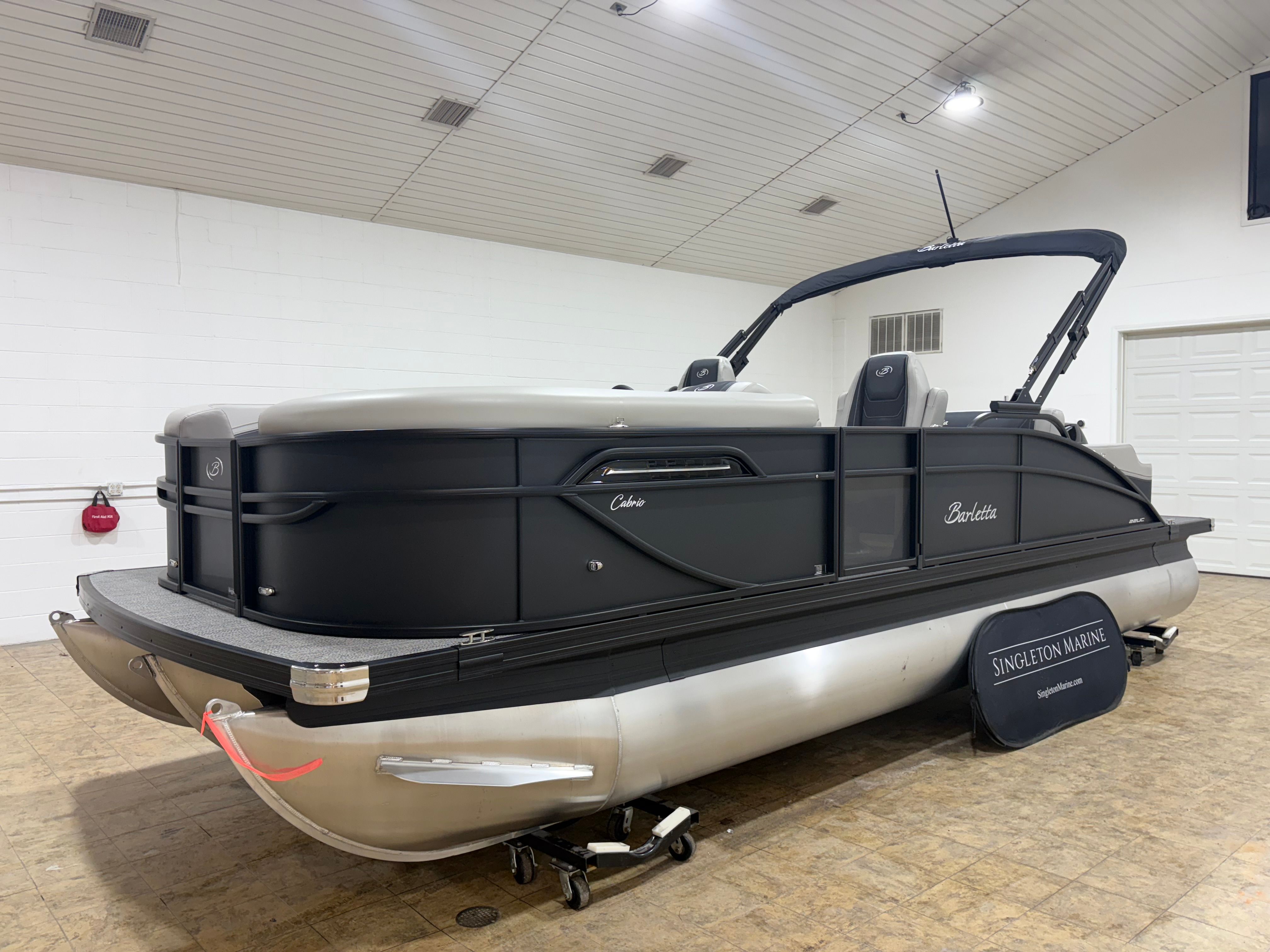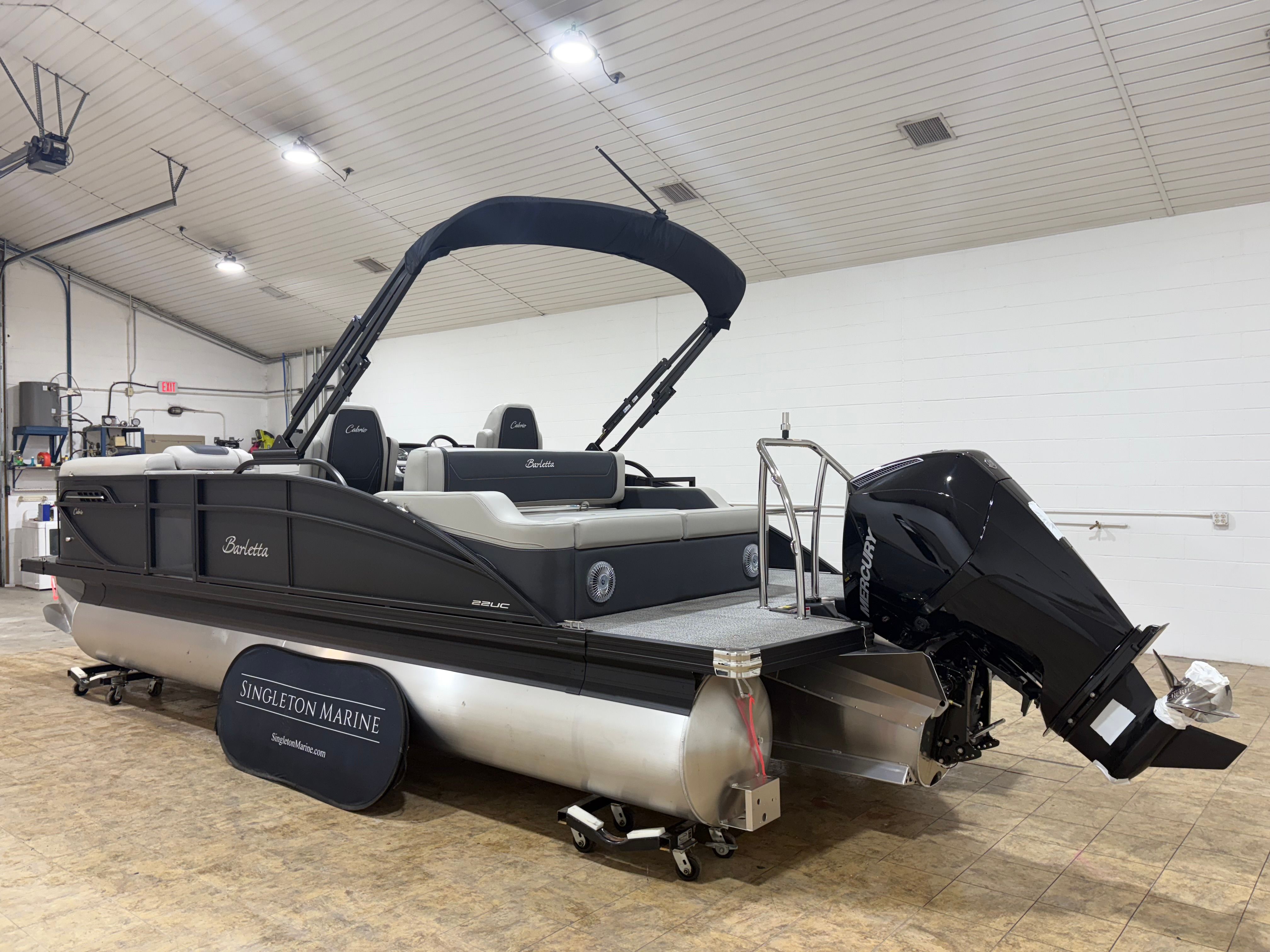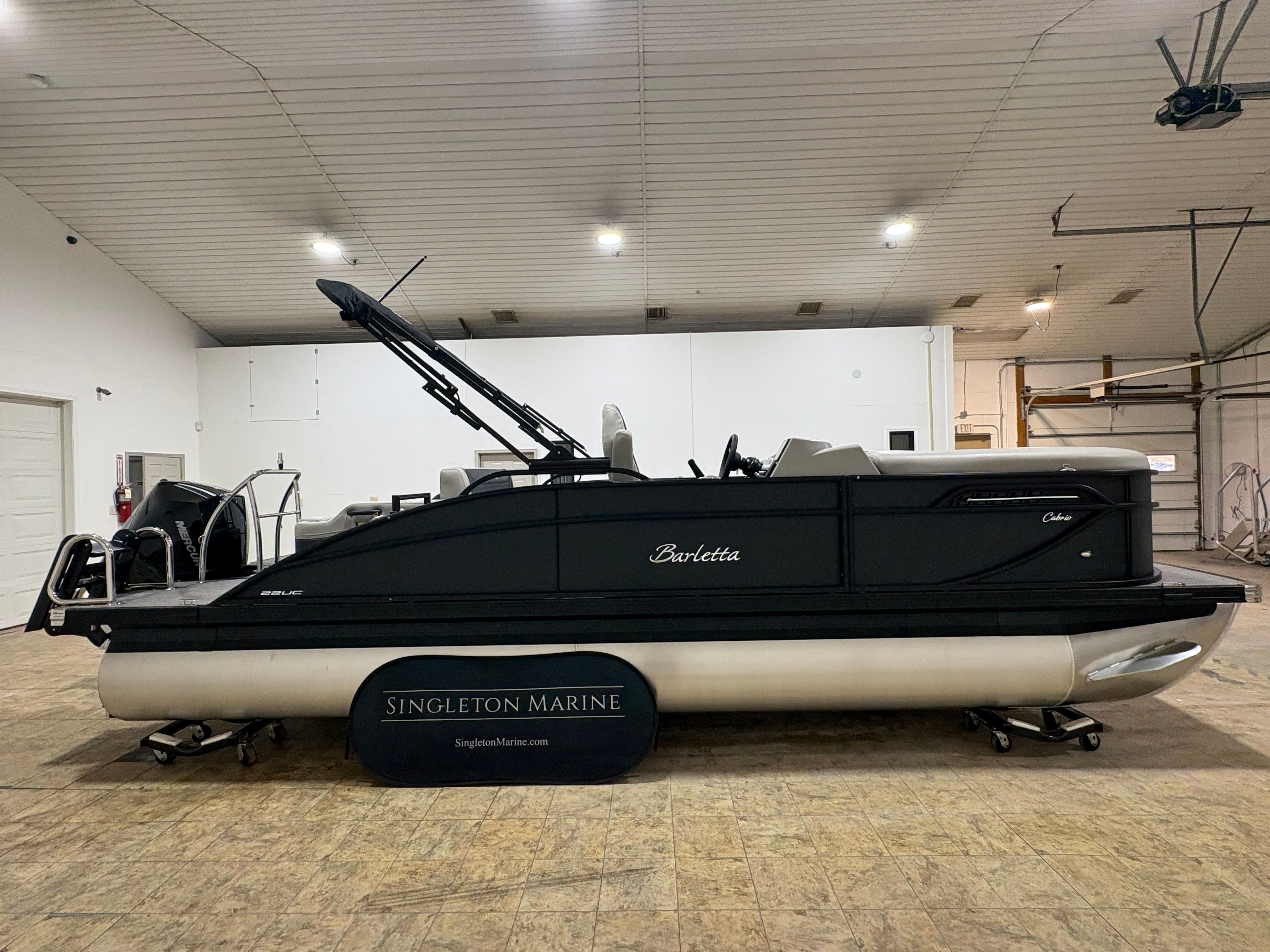 In summary, the 2026 Barletta Cabrio C22UC is a top-tier pontoon boat for sale that combines style, performance, and versatility. With its powerful Mercury 200L FourStroke engine, striking Matte Black Railskin with Blackout Package, luxurious Marquesan Gray with Onyx furniture, Amore Gray flooring, and practical triple toon package with midship storage, this Barletta boat for sale is ready to elevate your boating experience. The interior RGB lighting package and stainless steel flag pole with American flag add the finishing touches to a truly exceptional vessel. Do not miss your chance to own this new pontoon boat and create lasting memories on the water. Contact the dealer today to learn more and schedule your personal tour of the Barletta Cabrio C22UC.