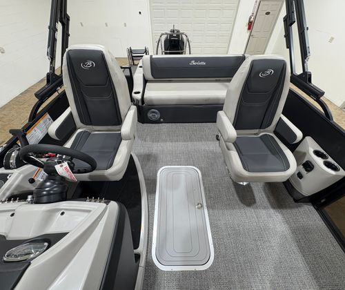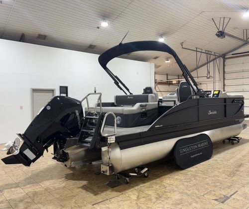 The 2026 Barletta Cabrio C22UC is a 23-foot pontoon that embodies the spirit of relaxation and adventure. Crafted with attention to detail and built for those who appreciate quality, this new pontoon boat offers ample space for family and friends. Its sleek Matte Black Railskin, complemented by the Blackout Package Cabrio, gives it a bold and sophisticated presence on the water. The Marquesan Gray with Onyx furniture and Amore Gray flooring create a refined and inviting atmosphere, making every outing feel like a special occasion.