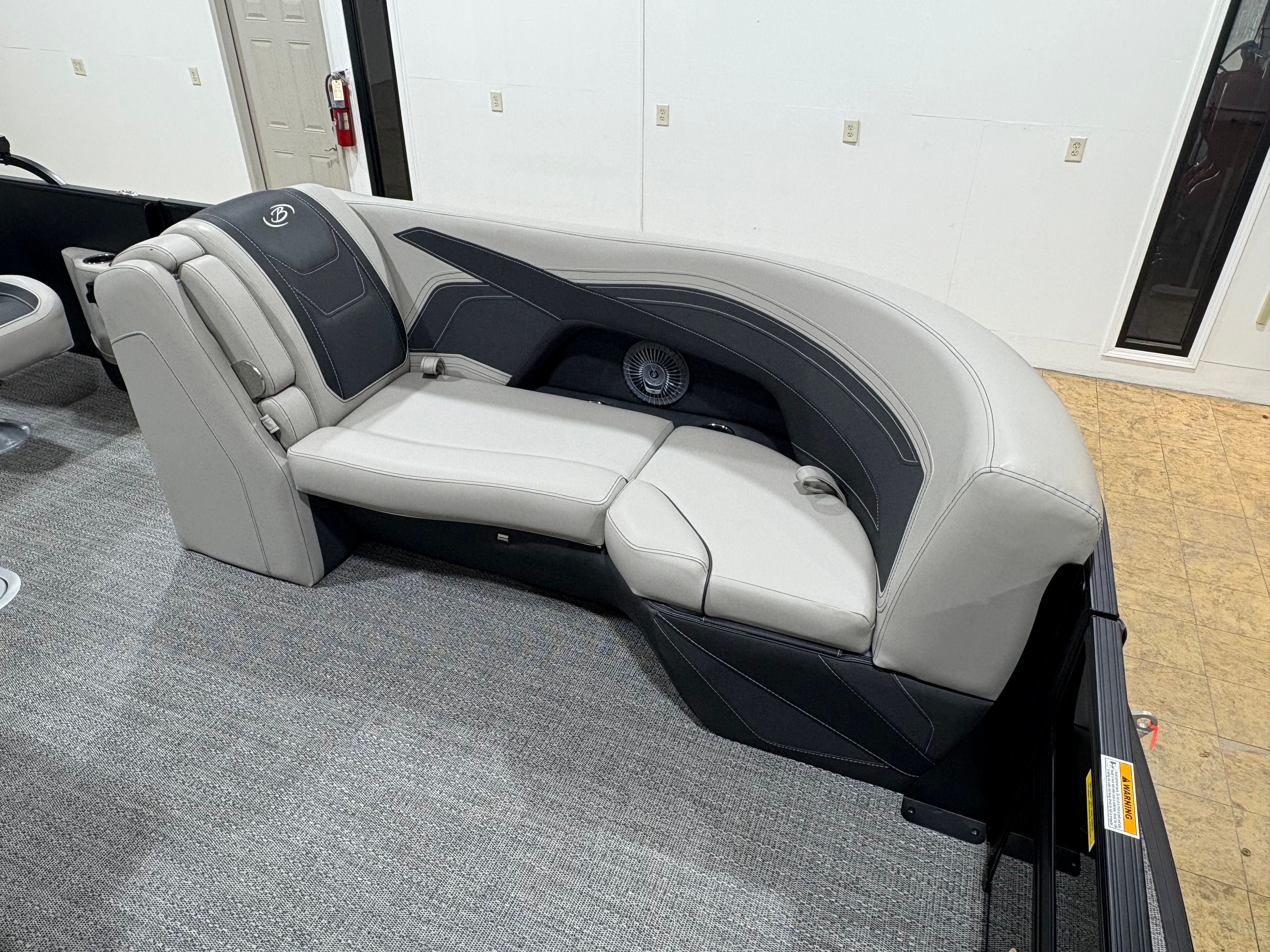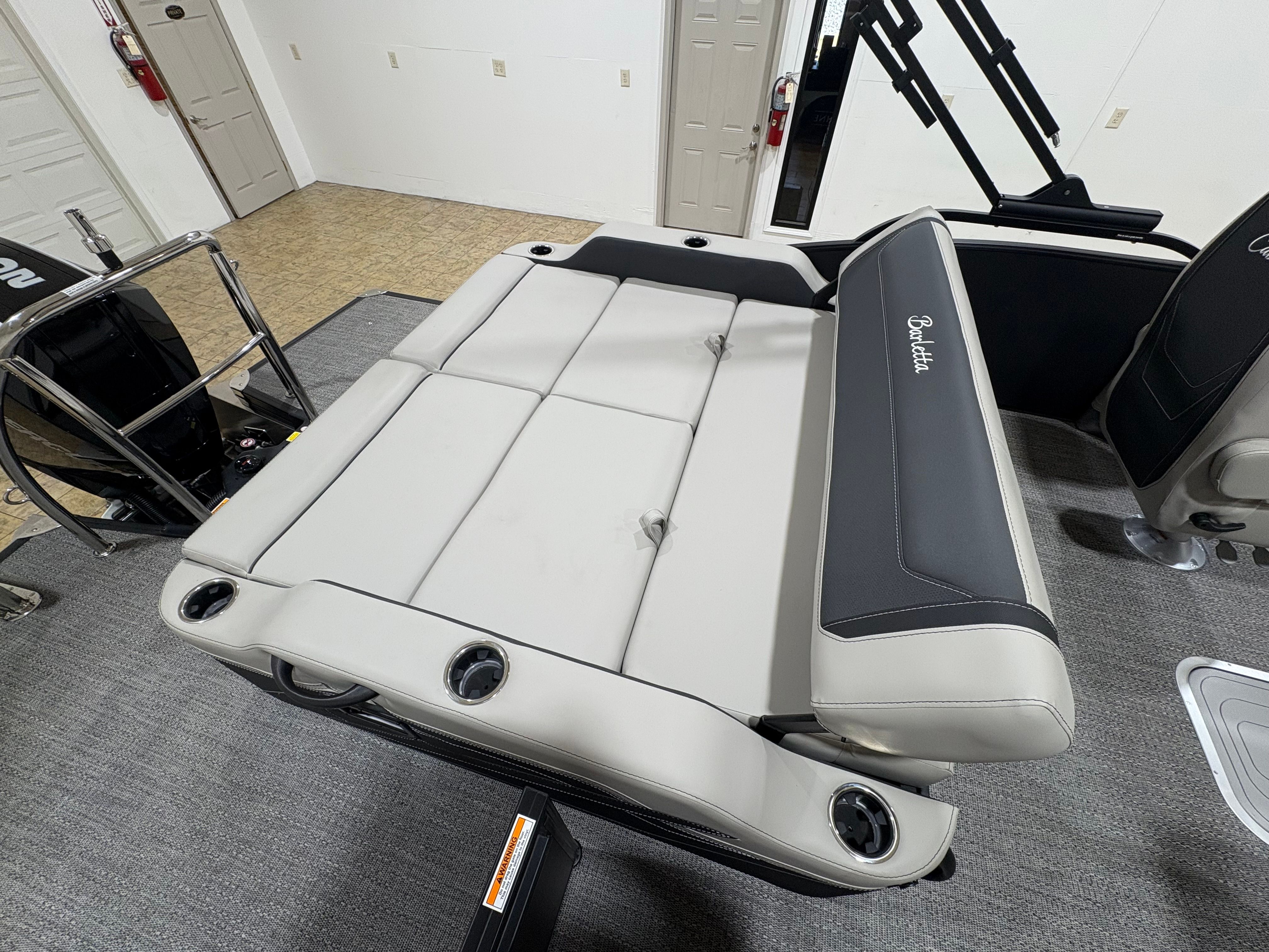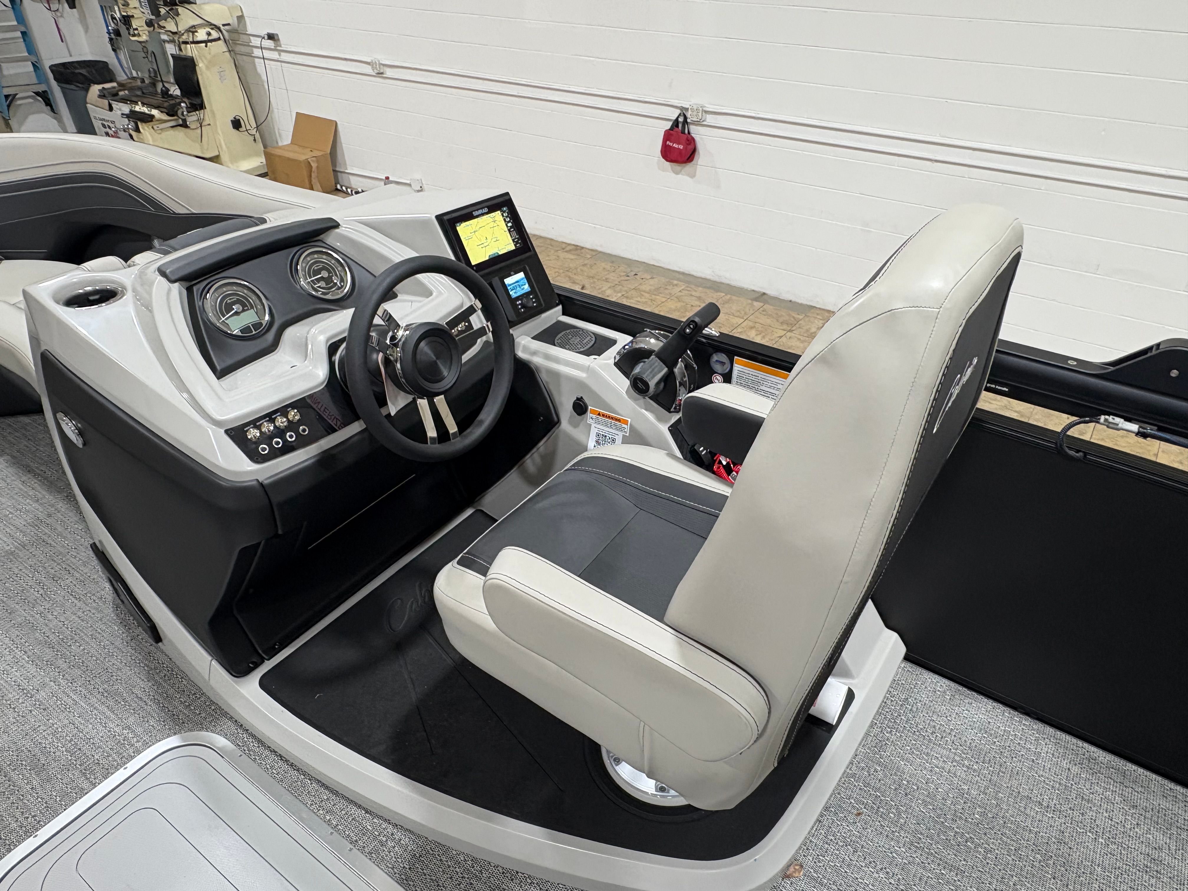 This pontoon boat is designed with practicality in mind. The midship storage compartment provides ample room for water toys, fishing gear, or picnic supplies, keeping your deck clutter-free and organized. The ease of docking and maneuvering, thanks to the power assist steering and responsive Mercury engine, makes every trip stress-free, whether you are a seasoned boater or new to the water. The durable flooring and high-quality upholstery are easy to clean, ensuring your boat stays looking its best season after season. Fuel efficiency is another highlight, allowing you to spend more time enjoying the water and less time at the pump.