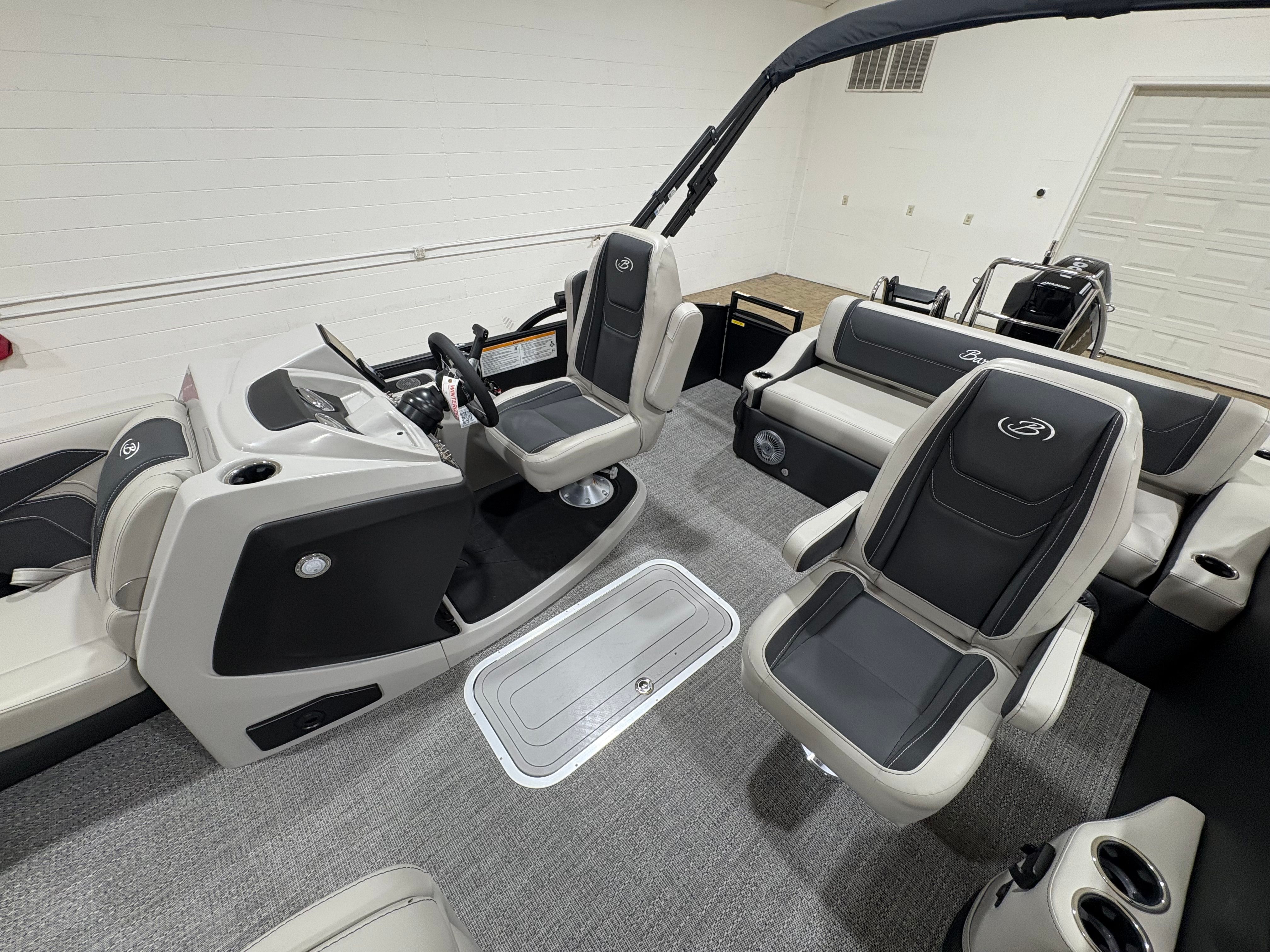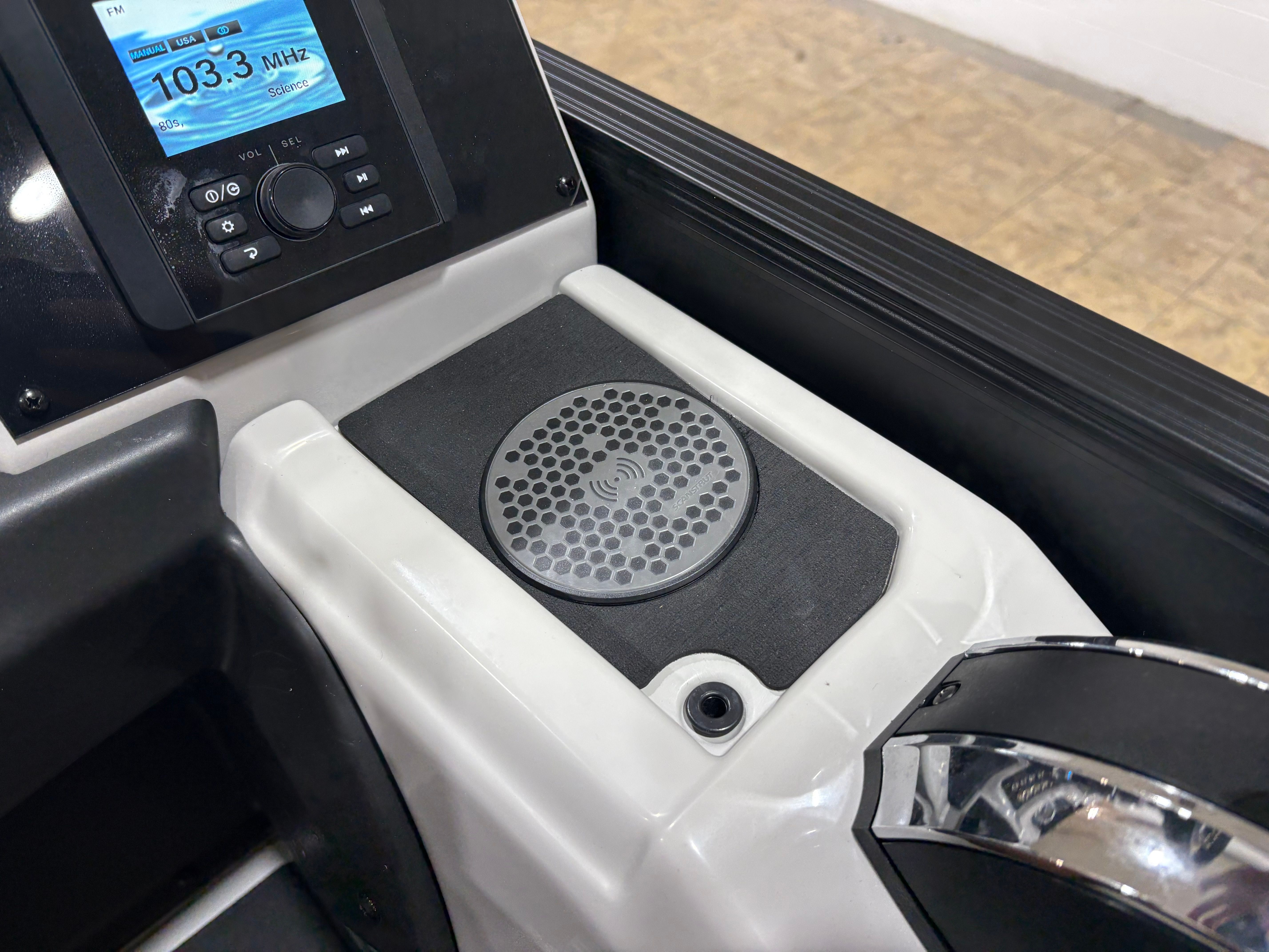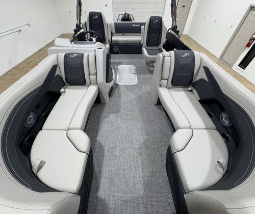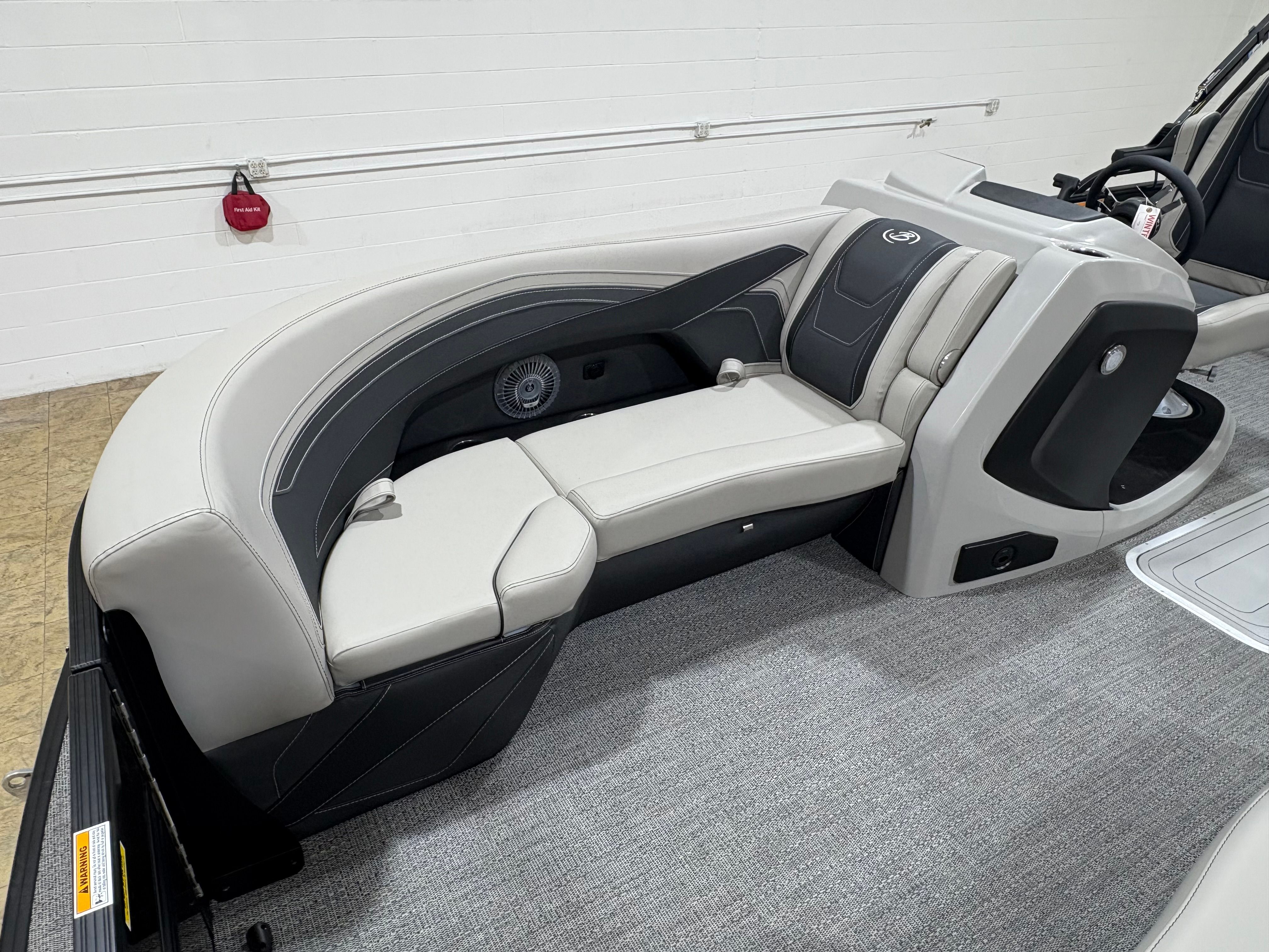 This pontoon boat is designed with practicality in mind. The midship storage compartment provides ample room for water toys, fishing gear, or picnic supplies, keeping your deck clutter-free and organized. The ease of docking and maneuvering, thanks to the power assist steering and responsive Mercury engine, makes every trip stress-free, whether you are a seasoned boater or new to the water. The durable flooring and high-quality upholstery are easy to clean, ensuring your boat stays looking its best season after season. Fuel efficiency is another highlight, allowing you to spend more time enjoying the water and less time at the pump.