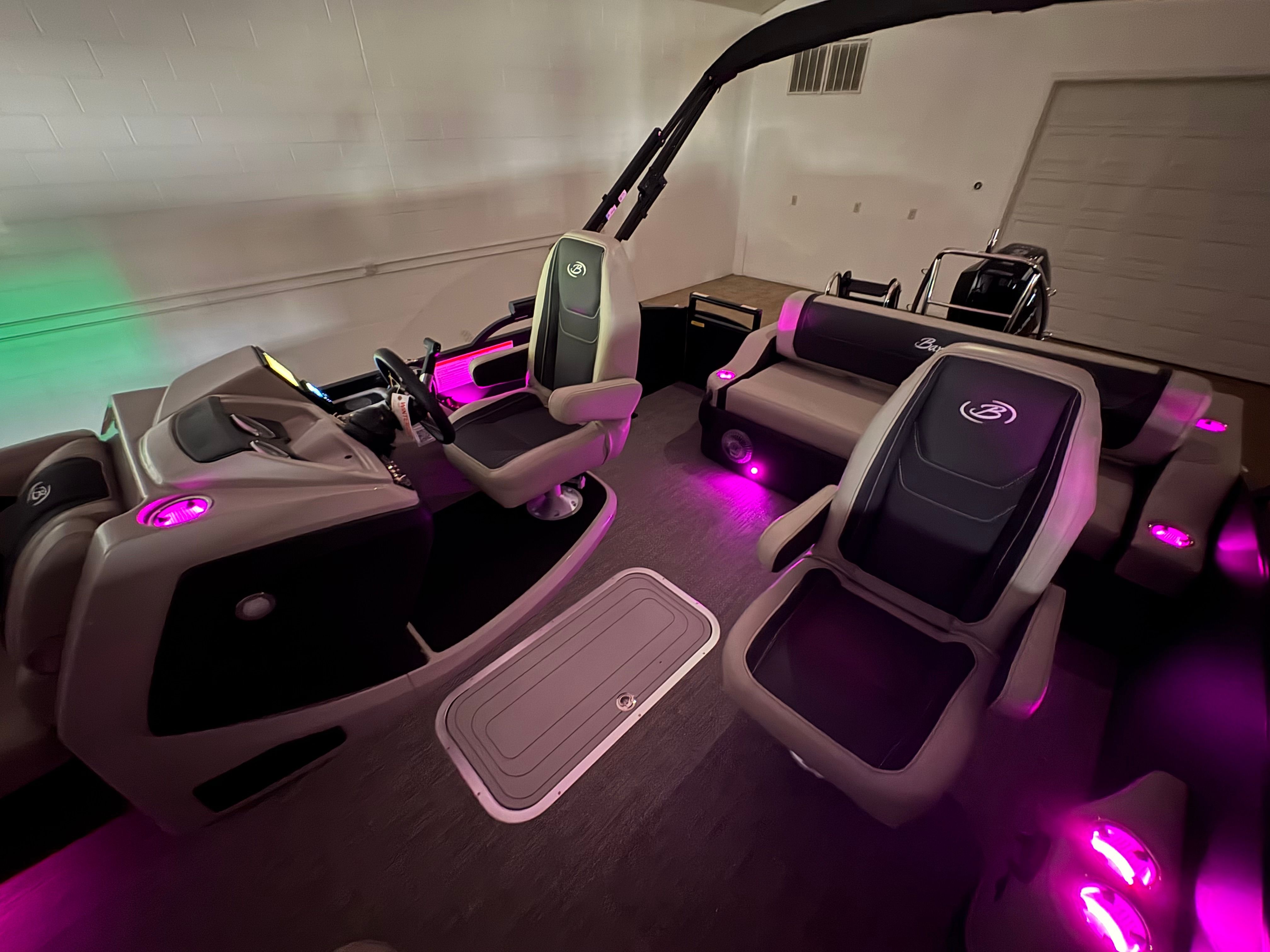 The Barletta Cabrio C22UC shines in a variety of settings. Imagine leisurely family outings where everyone has space to relax, fish, or swim. Picture hosting friends for a sunset cruise, with the interior RGB lighting setting the perfect ambiance. For those who love adventure, the powerful Mercury engine and triple toon stability make it easy to explore new lakes and rivers. Whether you are planning a quiet morning of fishing, a lively afternoon of water sports, or a luxurious weekend getaway, this pontoon adapts to your every need.