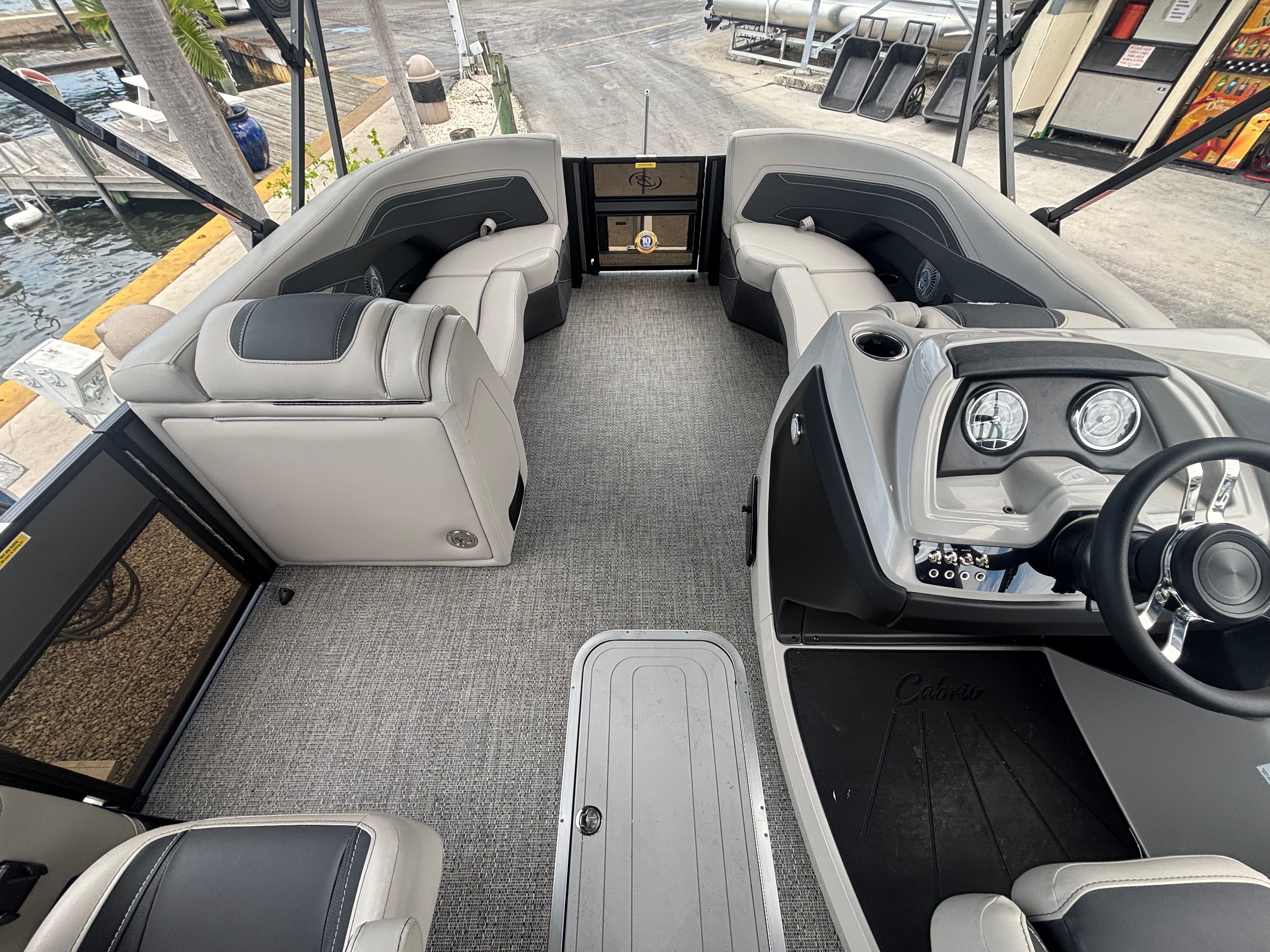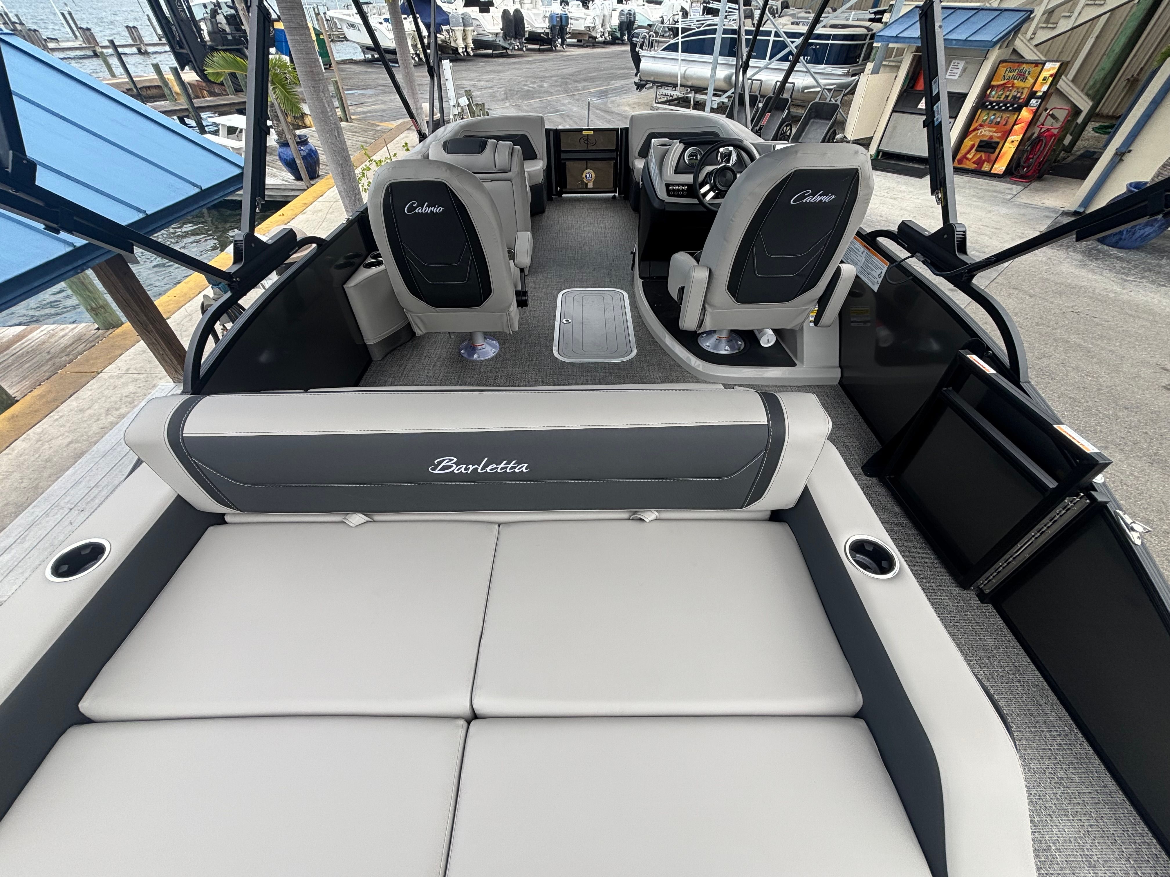 Owning the Barletta Cabrio C22UC pontoon boat means embracing a lifestyle of fun, relaxation, and social connection. The spacious deck layout is perfect for hosting gatherings, sharing meals, or simply lounging in the sun. The plush Marquesan Gray furniture with Onyx accents offers exceptional comfort, making long days on the water a pleasure for everyone on board. The customizable interior lighting transforms the ambiance, allowing you to create the perfect setting for any occasion.With its powerful Mercury engine and advanced navigation system, you can explore new destinations with confidence and ease. The combination of style, performance, and innovative features ensures that every trip is memorable, whether you’re enjoying a quiet morning cruise or an action-packed afternoon with friends and family.